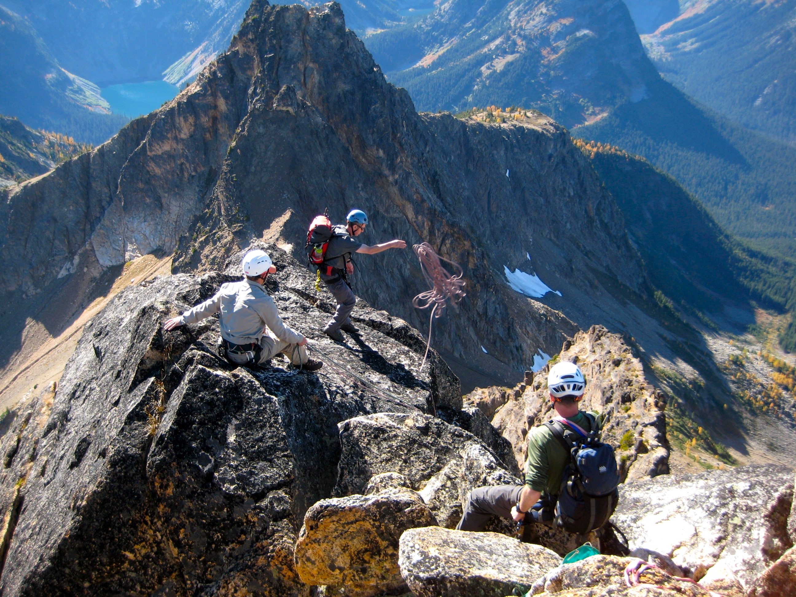 Norm Tossing Rappel Rope Off Summit