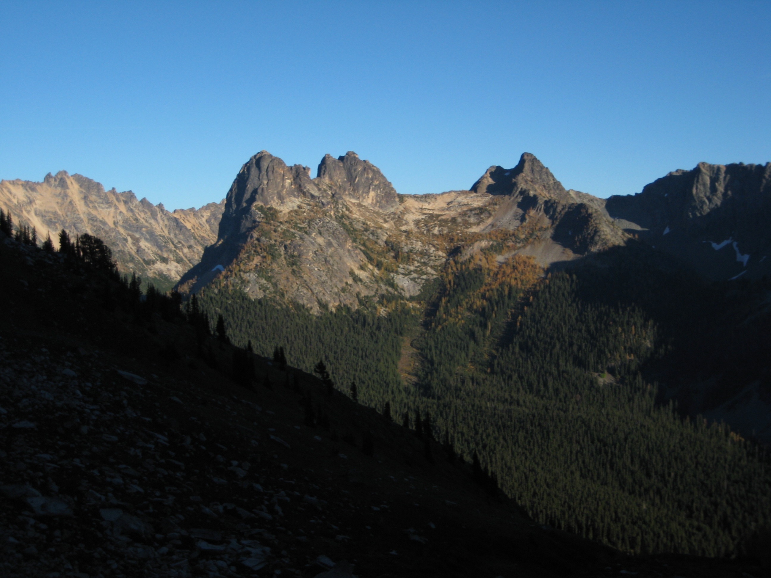For the second part of our Rainy Pass / Washington Pass double-header weekend, Eileen and I teamed up with Mike T to climb Cutthroat Peak. Mike and I seem hard-pressed to find wanna-do peaks in common, so we were pleased to hook up for such a worthy objective.