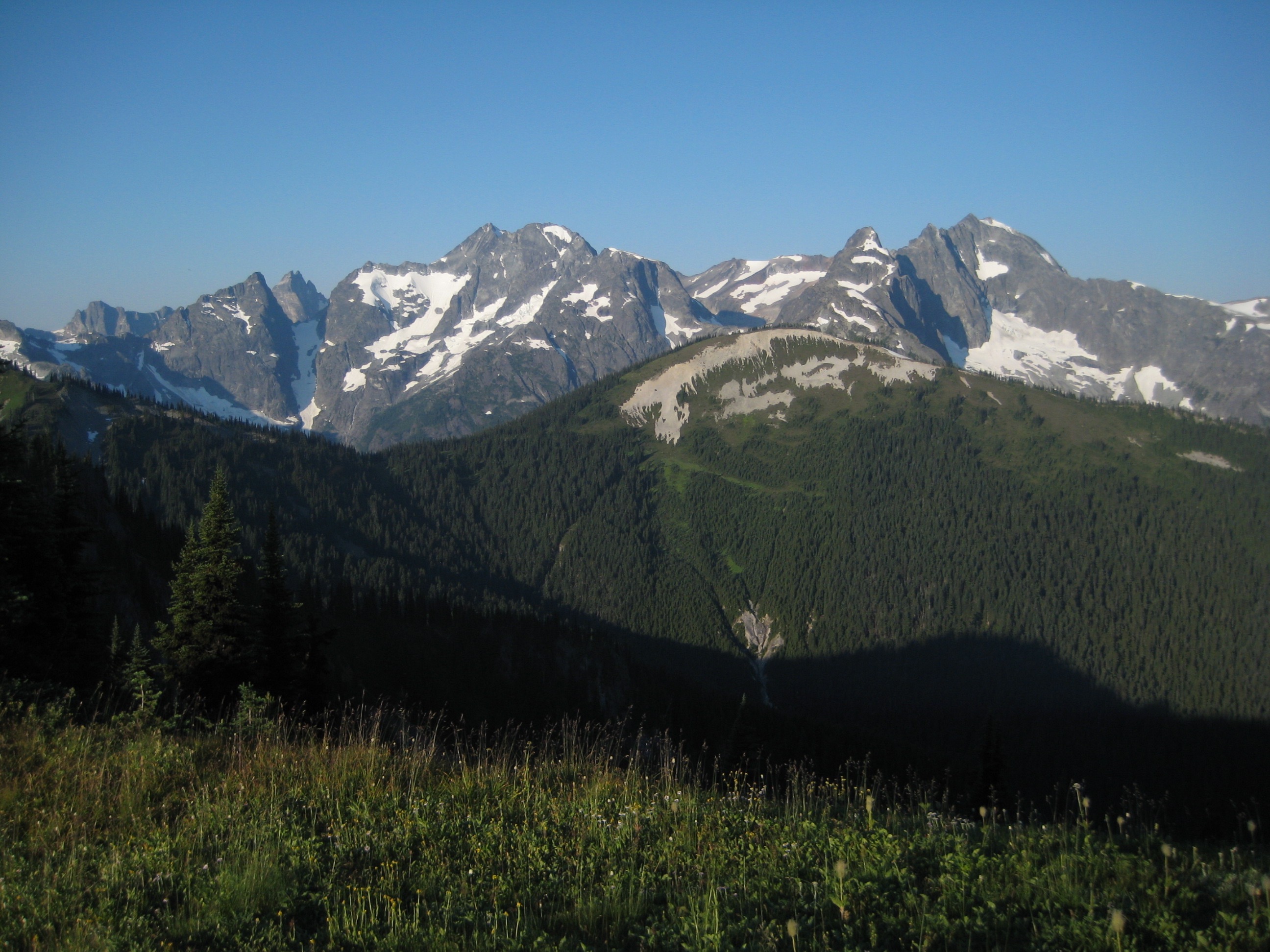 Hozomeen Mtn, Jack Mtn, Mt. Prophet, and the American Chilliwack Mountains all stood out strikingly on the horizon. Undoubtedly, this must be some of the finest ridgetop strolling in Washington.