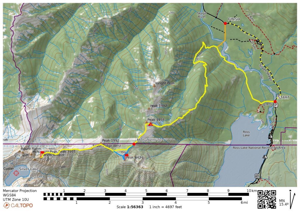 Ending Point: Nepopekum Trailhead on Silver–Skagit Road (Elev. 1750 feet)