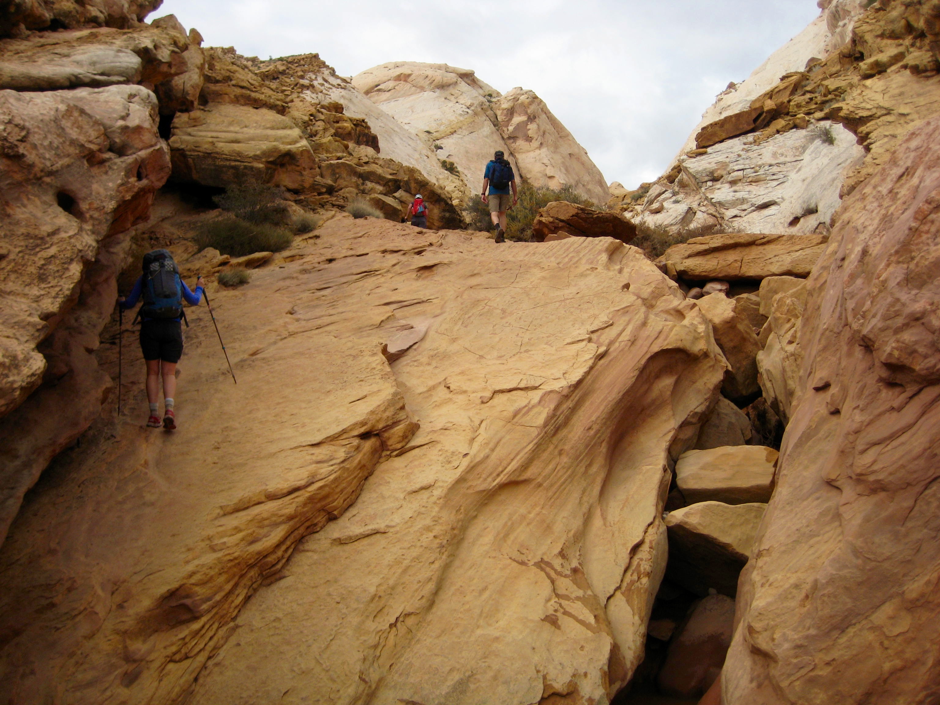 At a confluence of the two canyons, we veered right and worked our way up Ding Canyon. It began with some easy scrambling and slot walking.