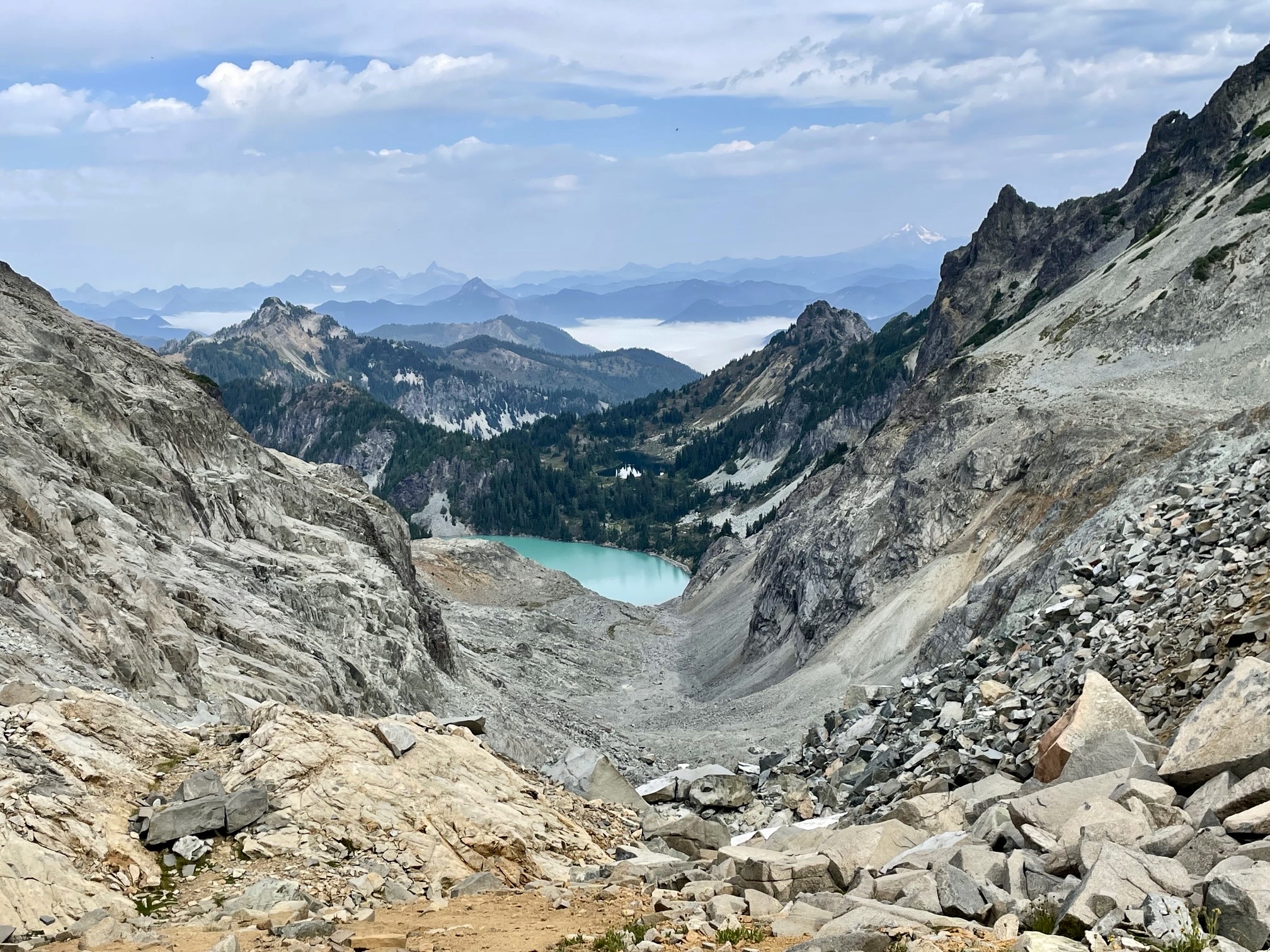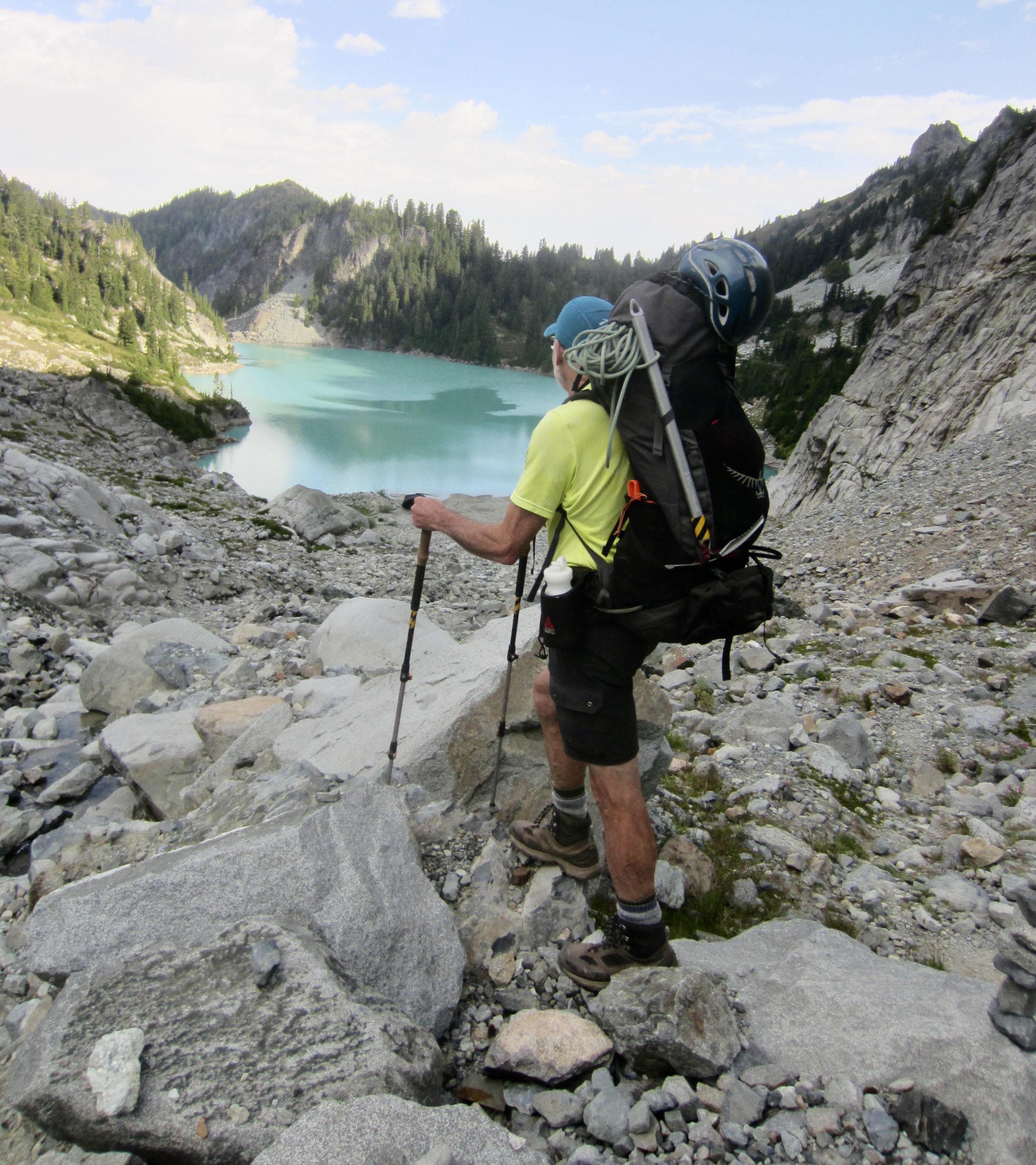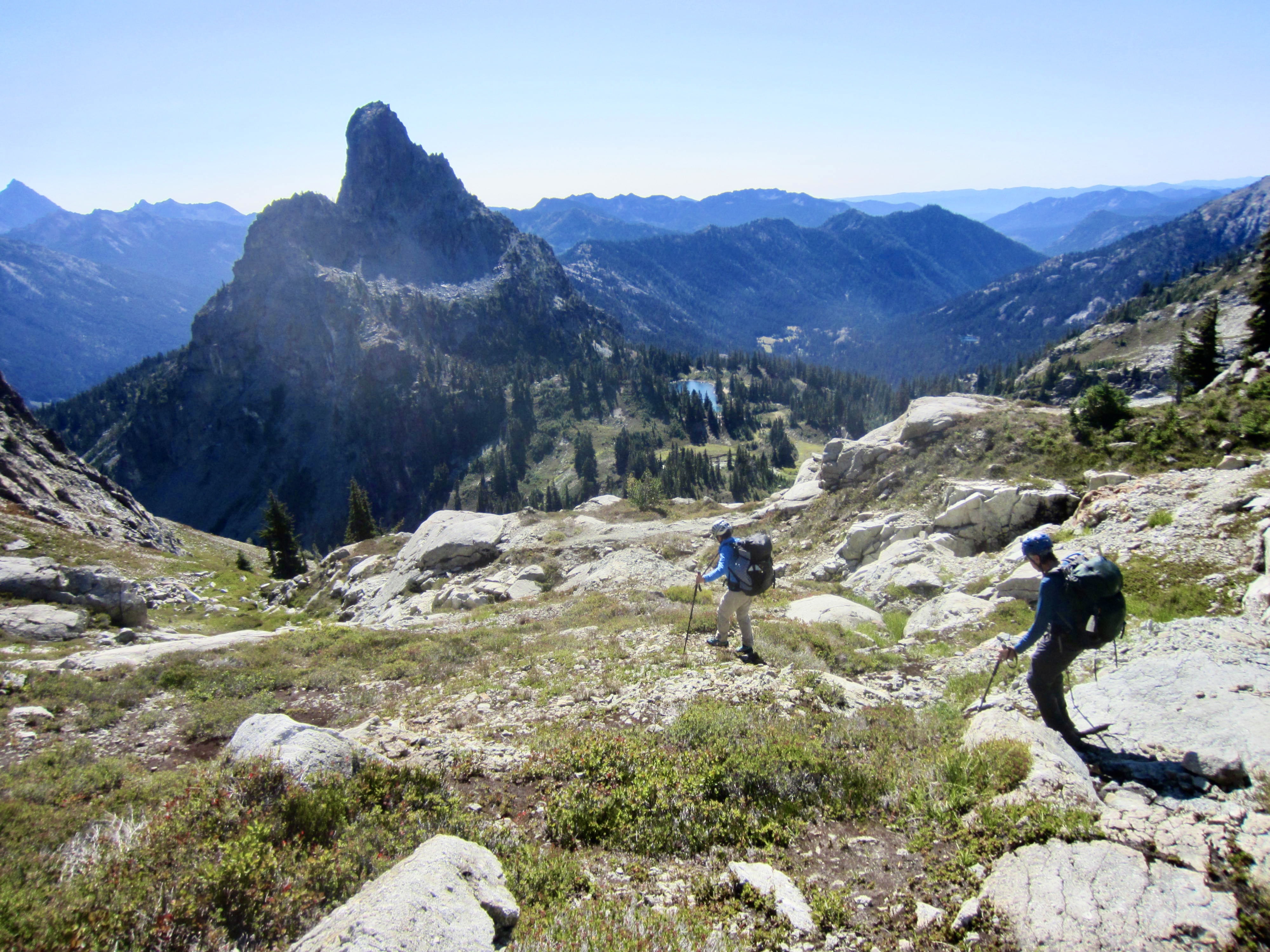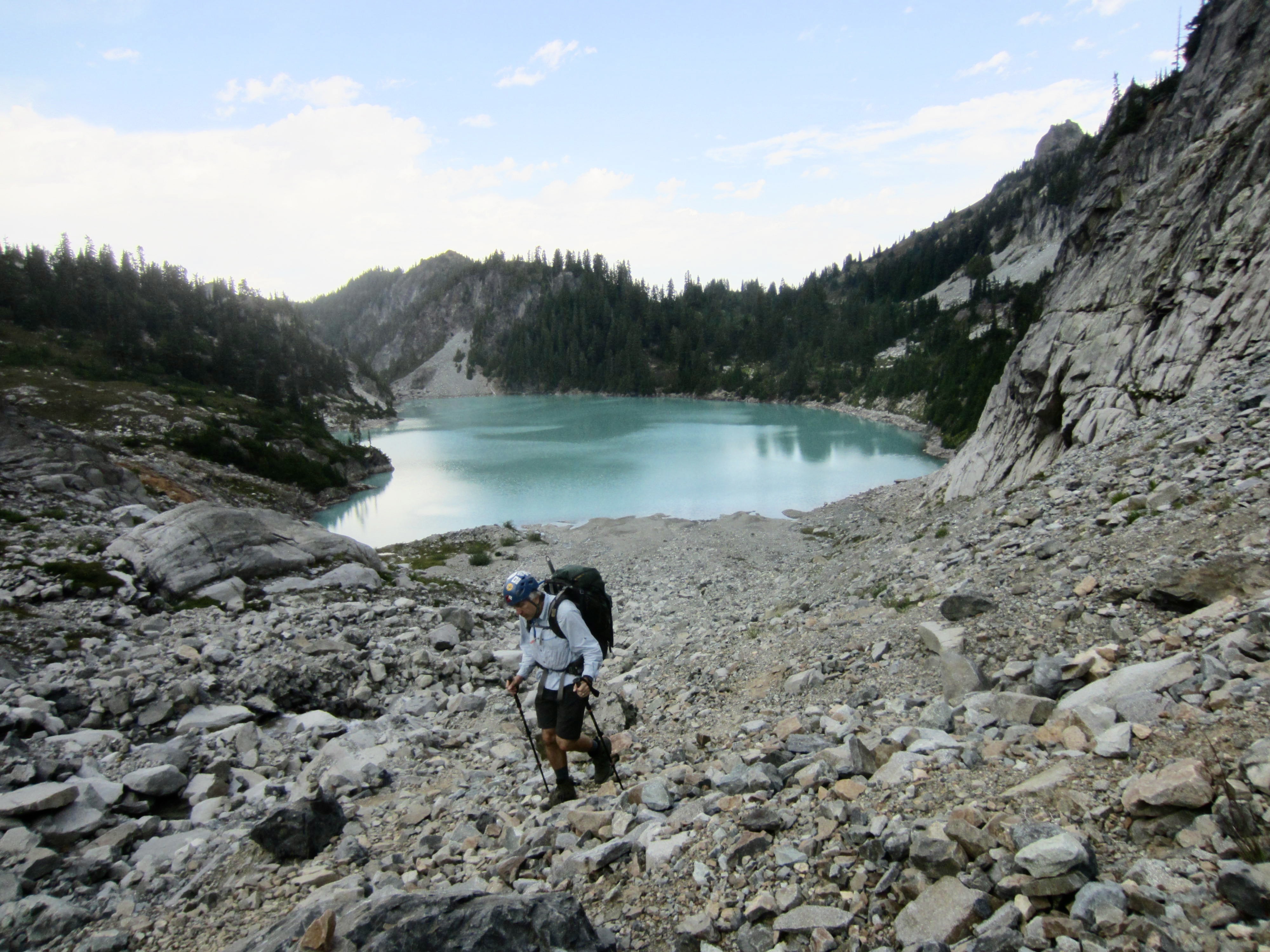 Way Points: Hyas Lake & Deception Pass & Marmot Lake & No-Name Lake & Jade Lake & Dip Top Gap & Pea Soup Lake & Daniel Glacier Cirque & Bowl 6200 & East Daniel Ridge notch & Upper Hyas Creek crossing & Peggy’s Pond & Cathedral Pass & Squaw Lake & Cle Elum River footbridge (trail hike & off-trail hike & rock scramble)