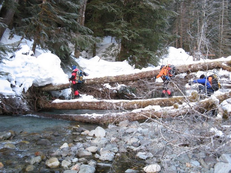 Way Points: Coal Creek culvert & Beaver Creek culvert & Big Four Picnic Area (road walk); South Fork Stillaguamish River crossing & Dry Creek Basin (snow hike & bushwhack)