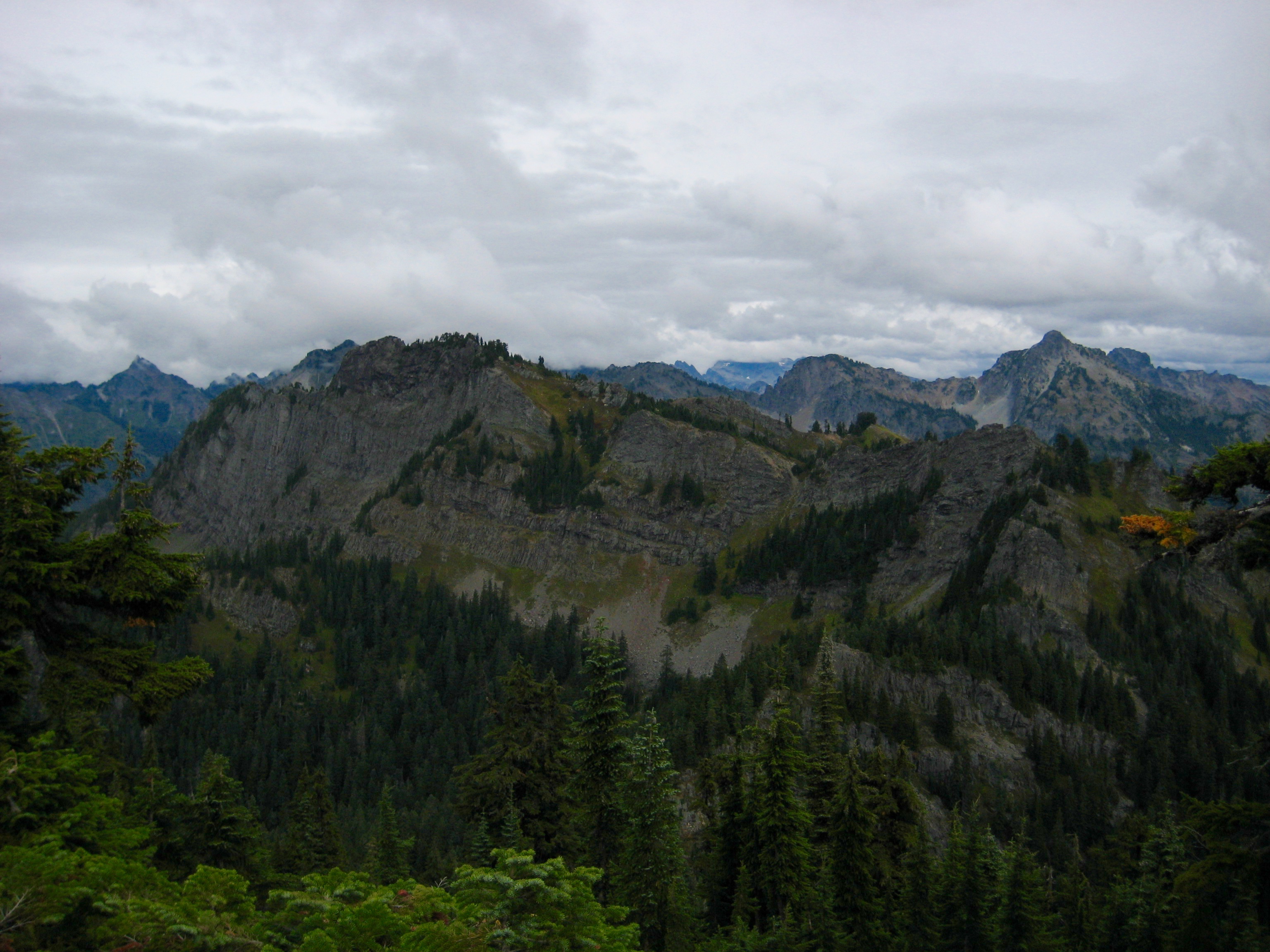 On a cloudy Saturday, Carolyn and I did a fun and interesting loop over the summit of Dungeon Peak, which anchors the southernmost end of Rampart Ridge in the Keechelus Mountains. Dungeon Peak is not well-known, but it is highly visible from the freeway at Snoqualmie Pass.