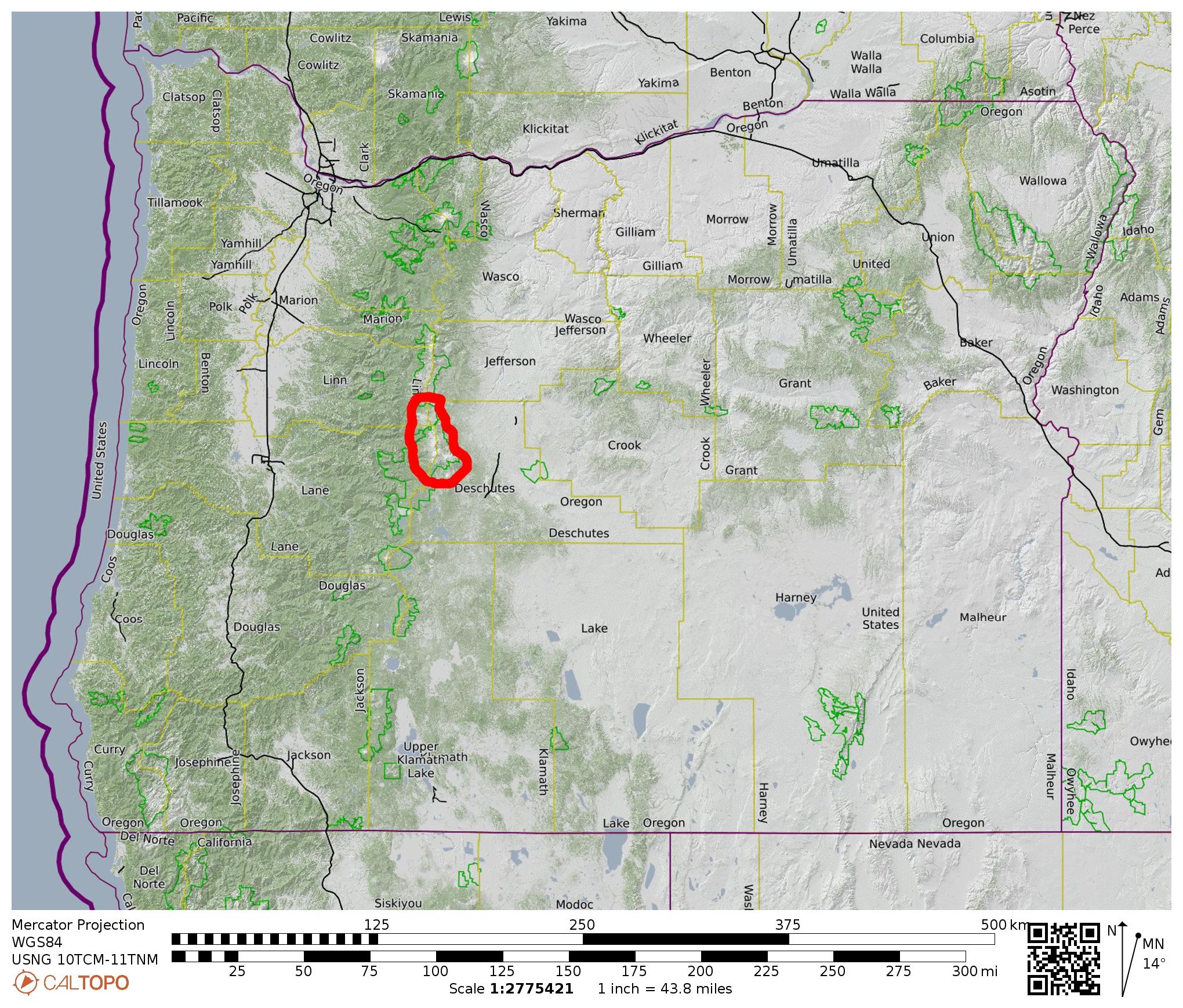 Way Points: Dutchman Flat & Middle Fork Tumalo Creek & Falls Crossing & North Fork Tumalo Creek & Happy Valley Hut & Happy Valley & Rock Creek & Lone Wolf Junction & Bottle Creek & Lone Lake & Wolf Lake & Lone Wolf Hut & Three Creek & Three Creek Meadow & Little Three Creek & Jeff View Shelter (ski tour)