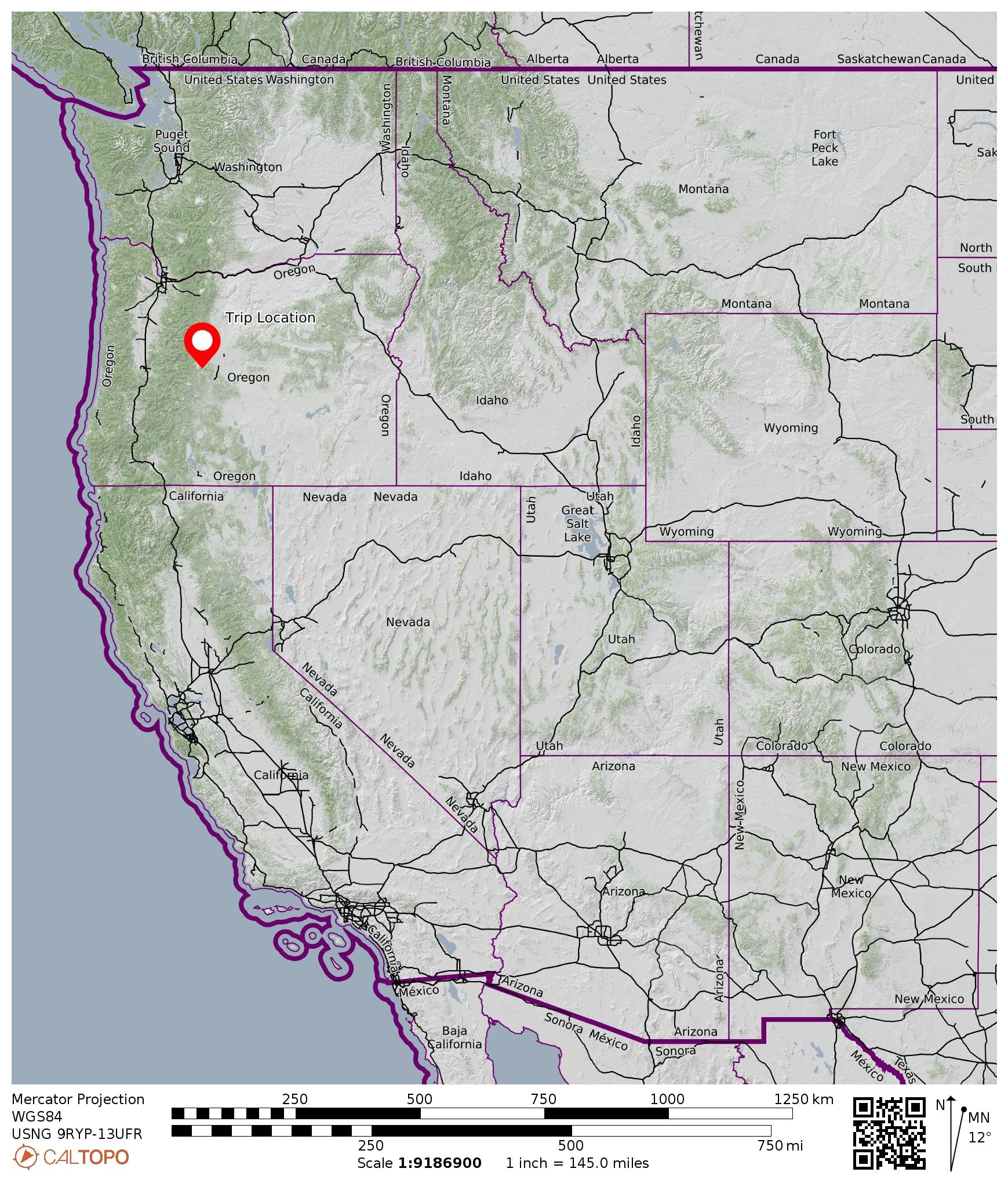 Doug, Eileen, and I teamed up for a mid-winter backcountry hut-to-hut ski traverse in the Deschutes Mountains of central Oregon. During three splendid days, our traverse covered 20 miles of varied terrain in a wide arc around the eastern boundary of Three Sisters Wilderness. We were entirely self-guided but followed the route and enjoyed the facilities of Three Sisters Backcountry, Inc. (TSBC), a local ski adventure company. By good fortune, our schedule coincided with a vigorous storm cycle; we started our trip with 12 inches of fresh powder snow and finished with an additional 6 inches.