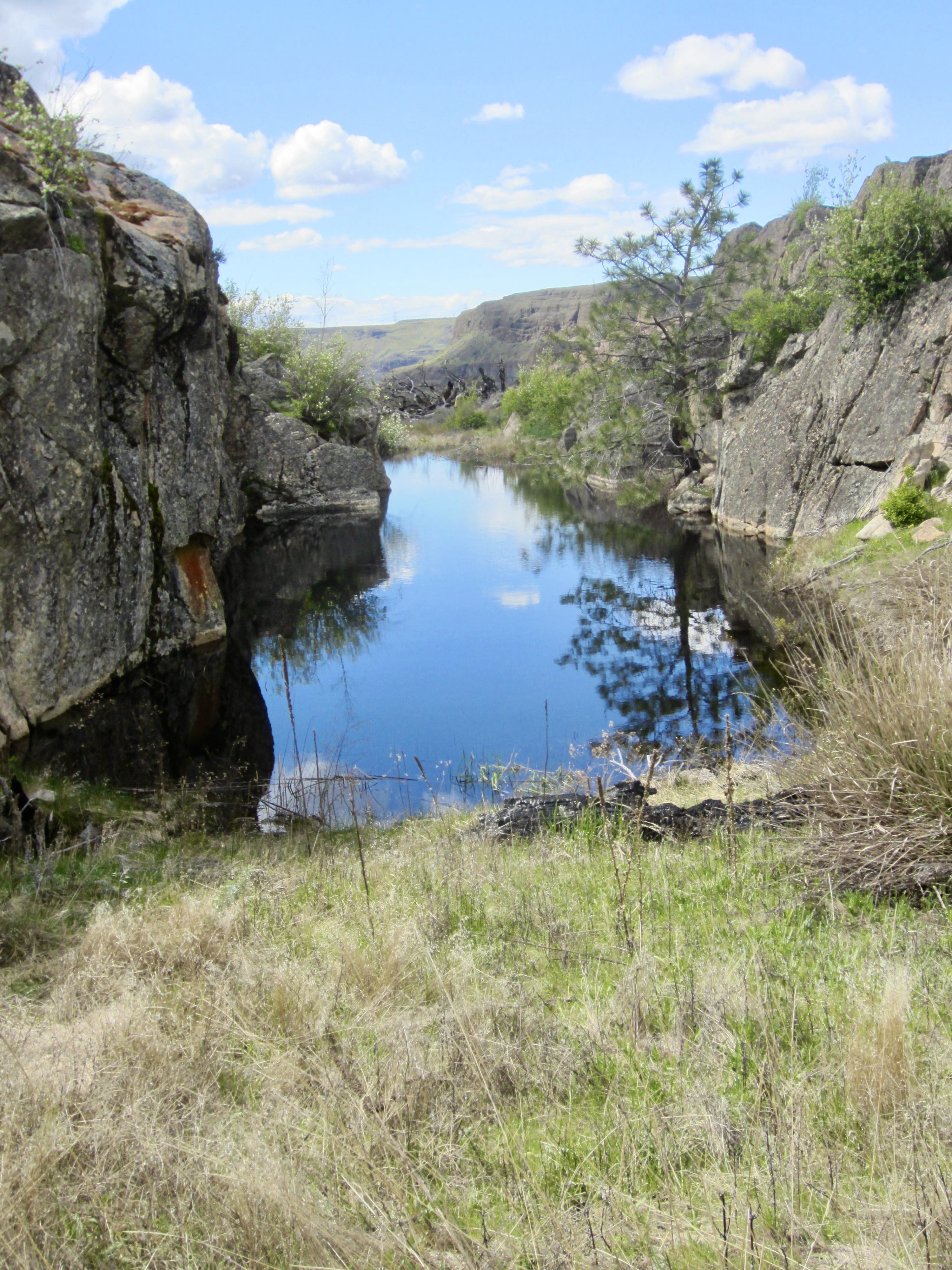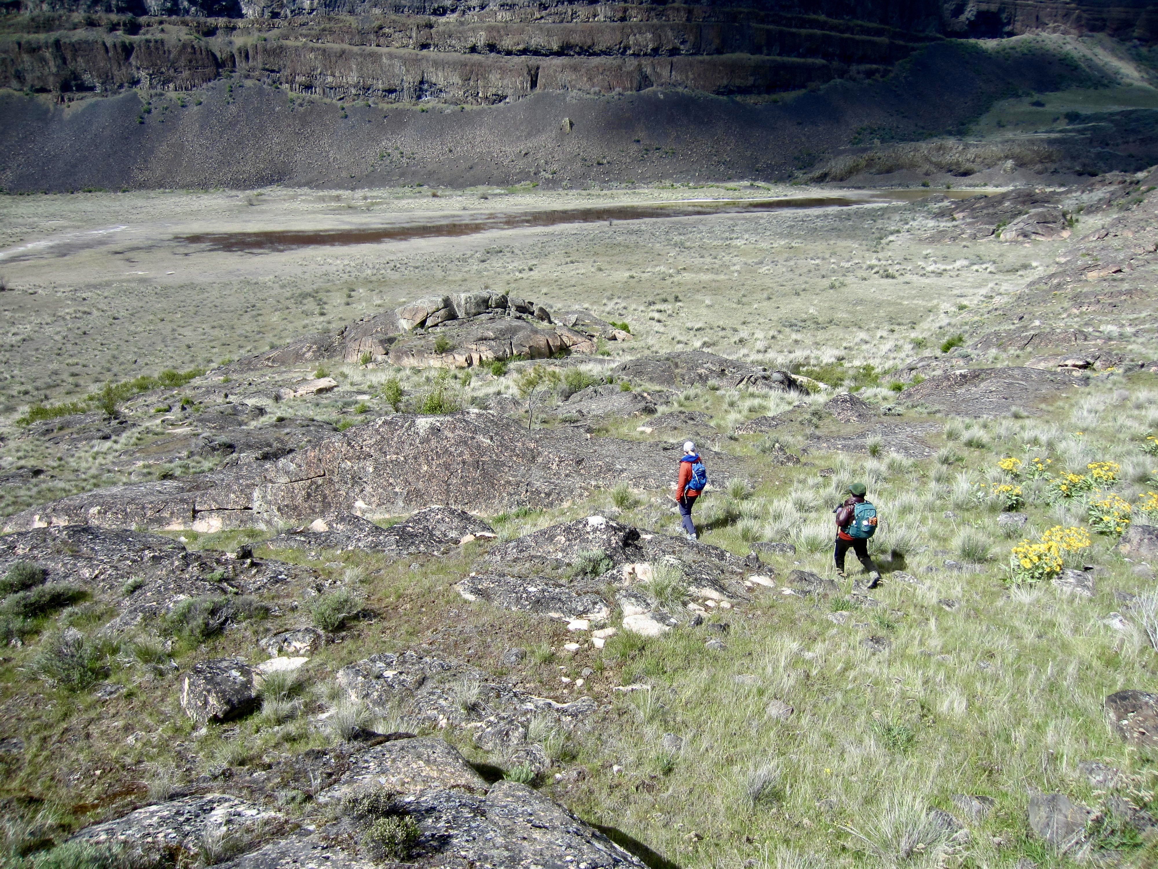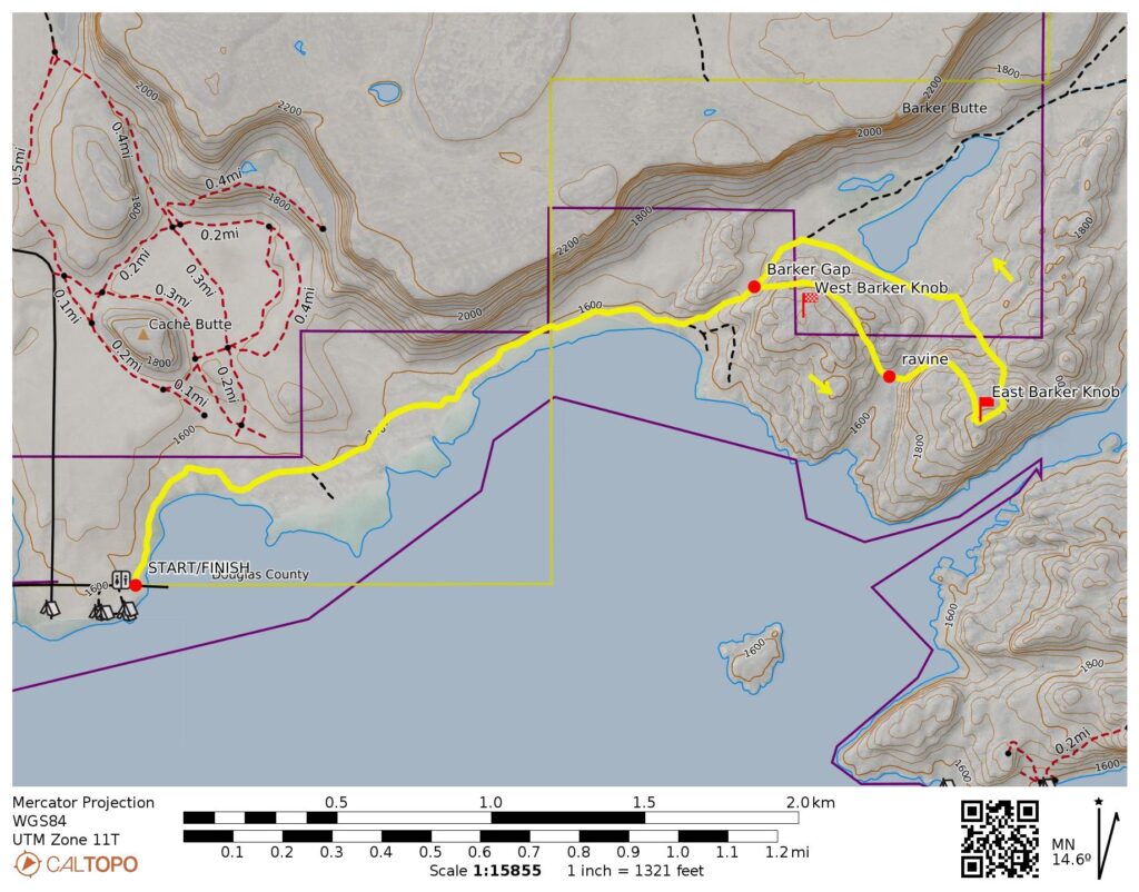 To the northeast, Banks Lake extended up toward Grand Coulee Dam. To the southeast was Point 2098, which John Roper dubbed “Mt. Aegium,” presumably as a reference to this area’s resemblance to the Aegean Sea and its numerous islands. To the southwest, our car shimmered in sunlight at the Barker Canyon boat launch.