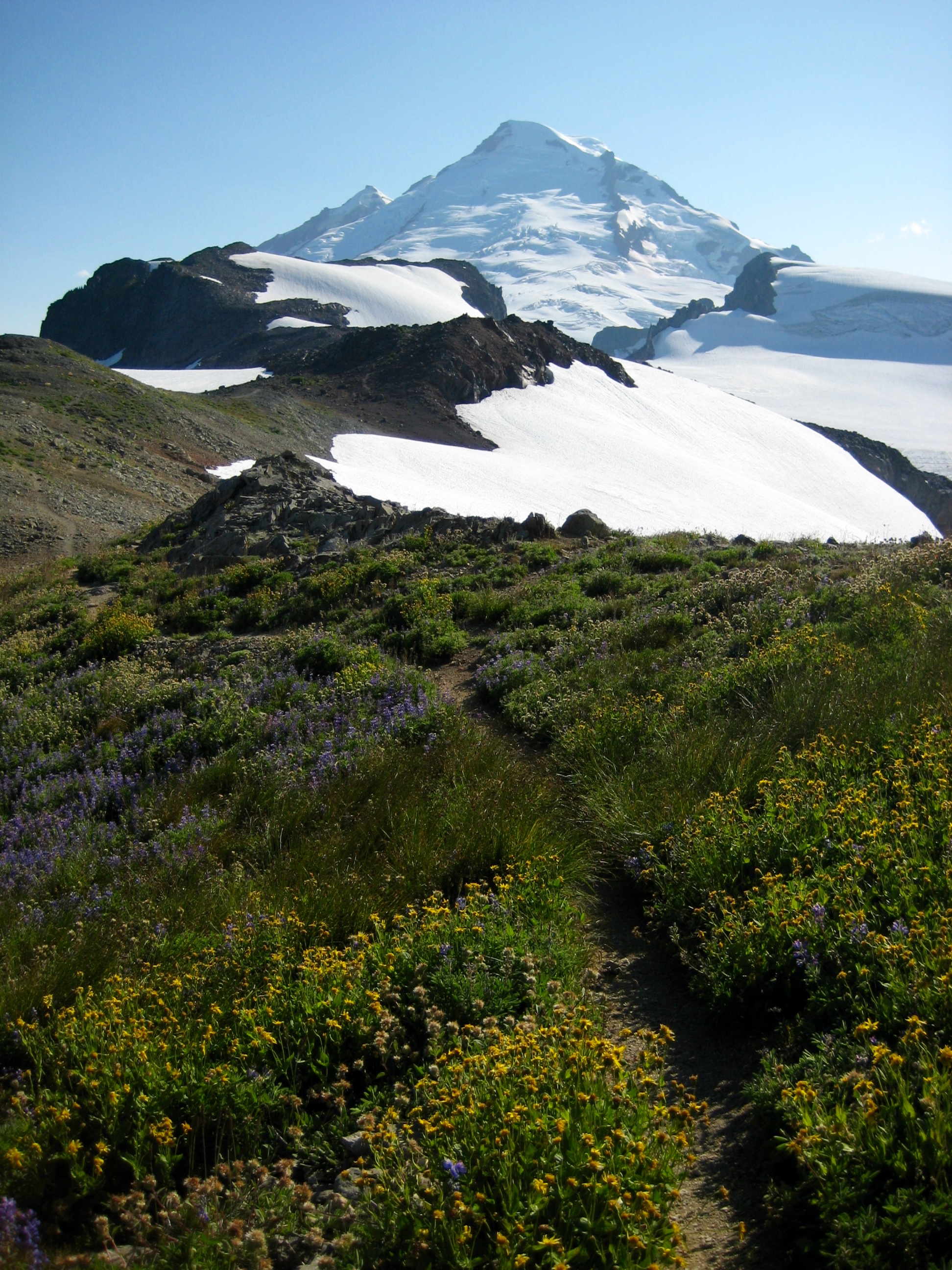This being a Monday, we were surprised at the large number of people—both day hikers and backpackers—coming up the trail. Apparently, Mt. Baker’s magnetic attraction is not limited to weekends.