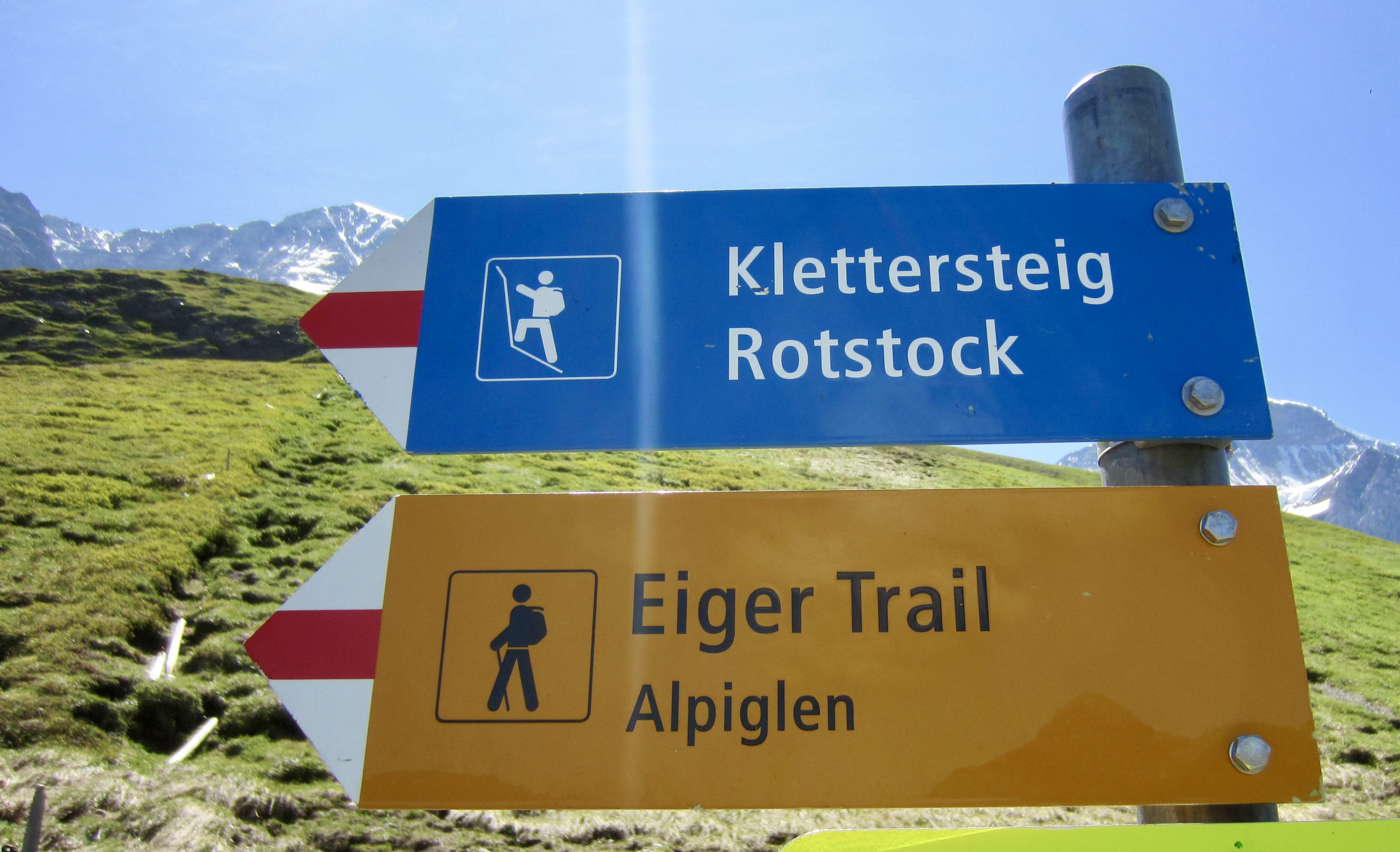 Continuing straight ahead at the three-way junction takes you over Wart Ridge and down to Alpiglen in another 3.2 miles / 5.1 kilometers. Turning sharply to the left takes you on down to Kleine Scheidegg in another 1.4 miles / 2.3 kilometers.