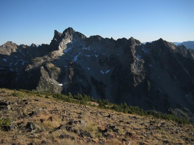 For our annual Mid-Summer Climbing Trip this year, Eric, Jon, Todd, and I departed somewhat from our pattern of western Cascade and Olympic destinations. We headed into the northern Chelan Mountains for a change of scenery. Seeing as how this was our 13th consecutive year, we probably should have known that Number 13 would present some unfortunate events and special histrionics along the way. We did not. Now we do.