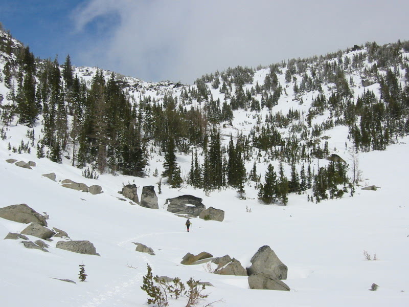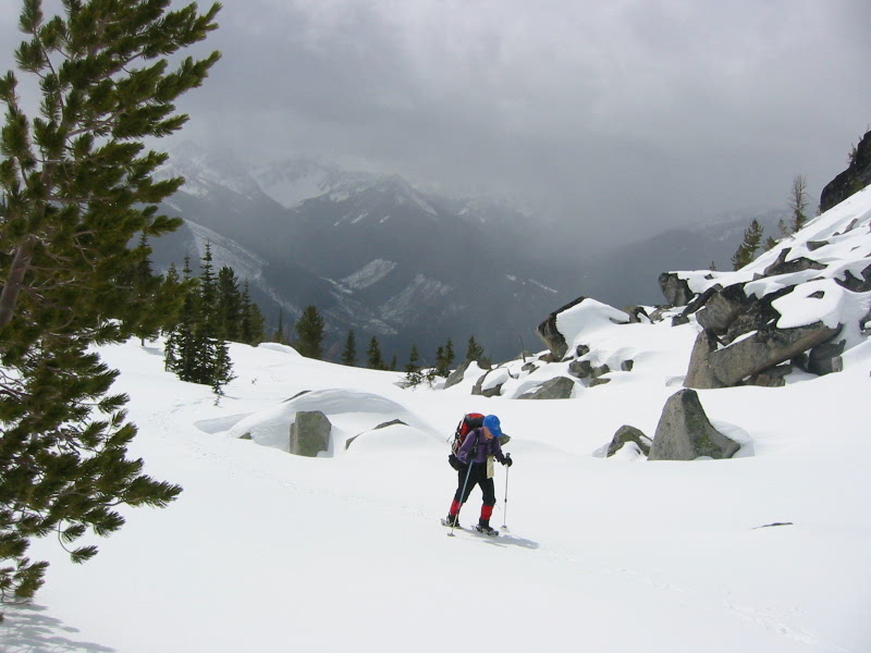 >>> Big Lou Mountain snowshoe climb via Chatter Creek–Lake Ida – April 17, 2004