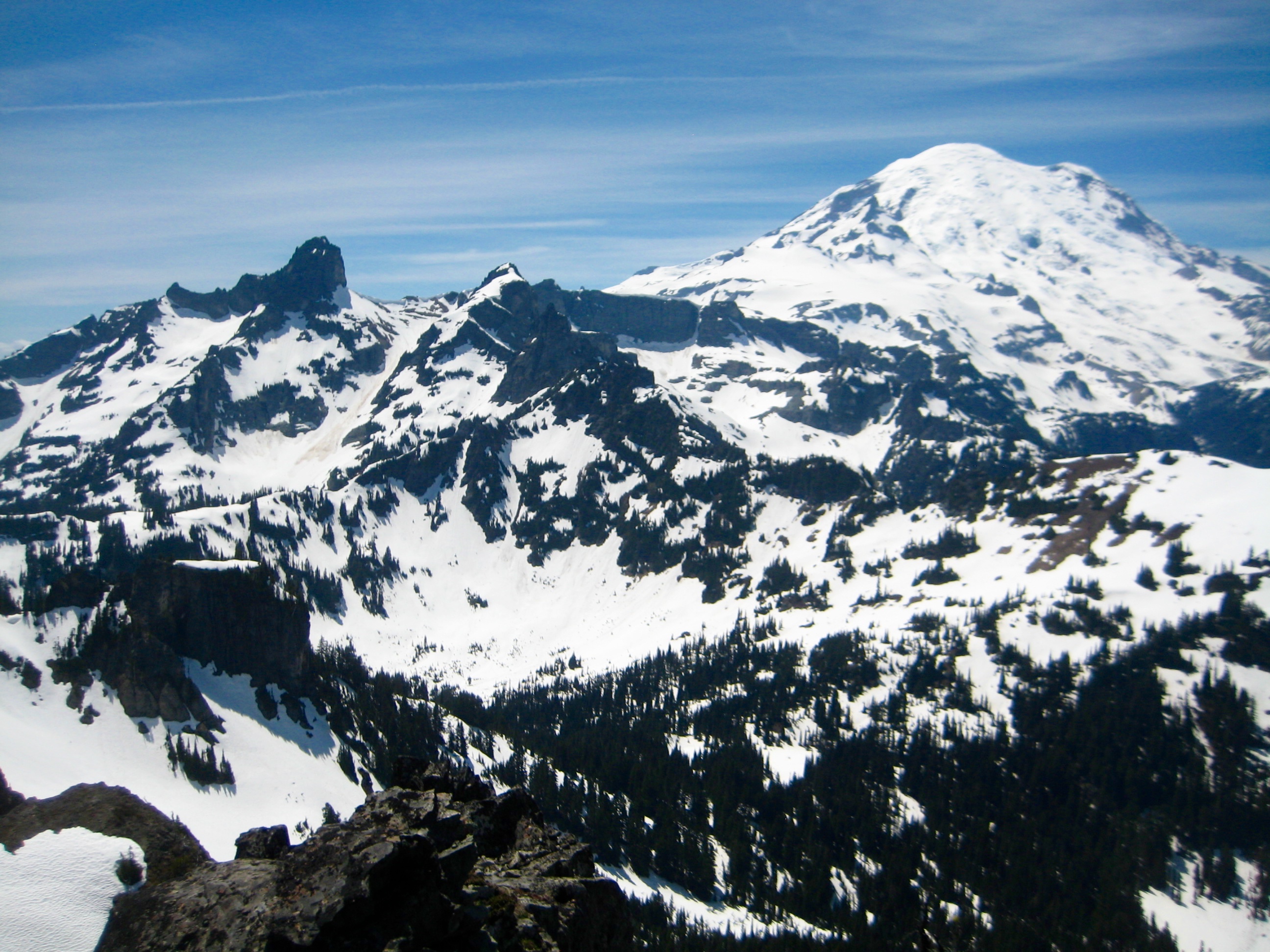 Mt. Rainier, Little Tahoma Peak, Cowlitz Chimneys, Goat Rocks, and Mt. Adams dominated our views.