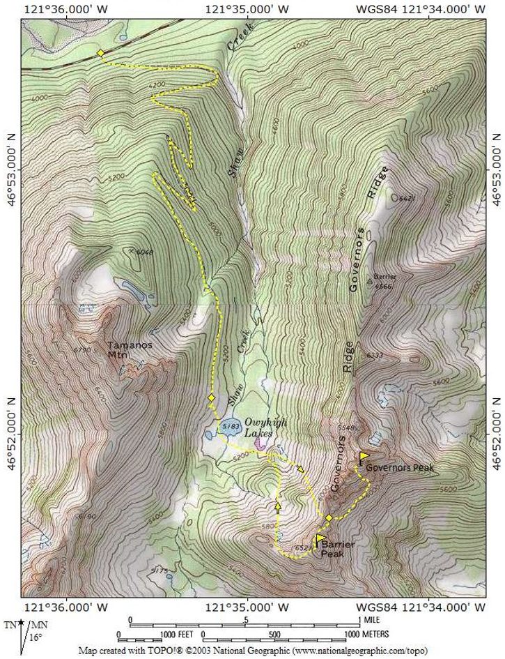 Jon and Adam joined me for an ascent of Governors Peak and Barrier Peak near the northeastern corner of Mt. Rainier National Park. These neighboring summits make a nice “two-fer day” in a particularly scenic portion of the park.