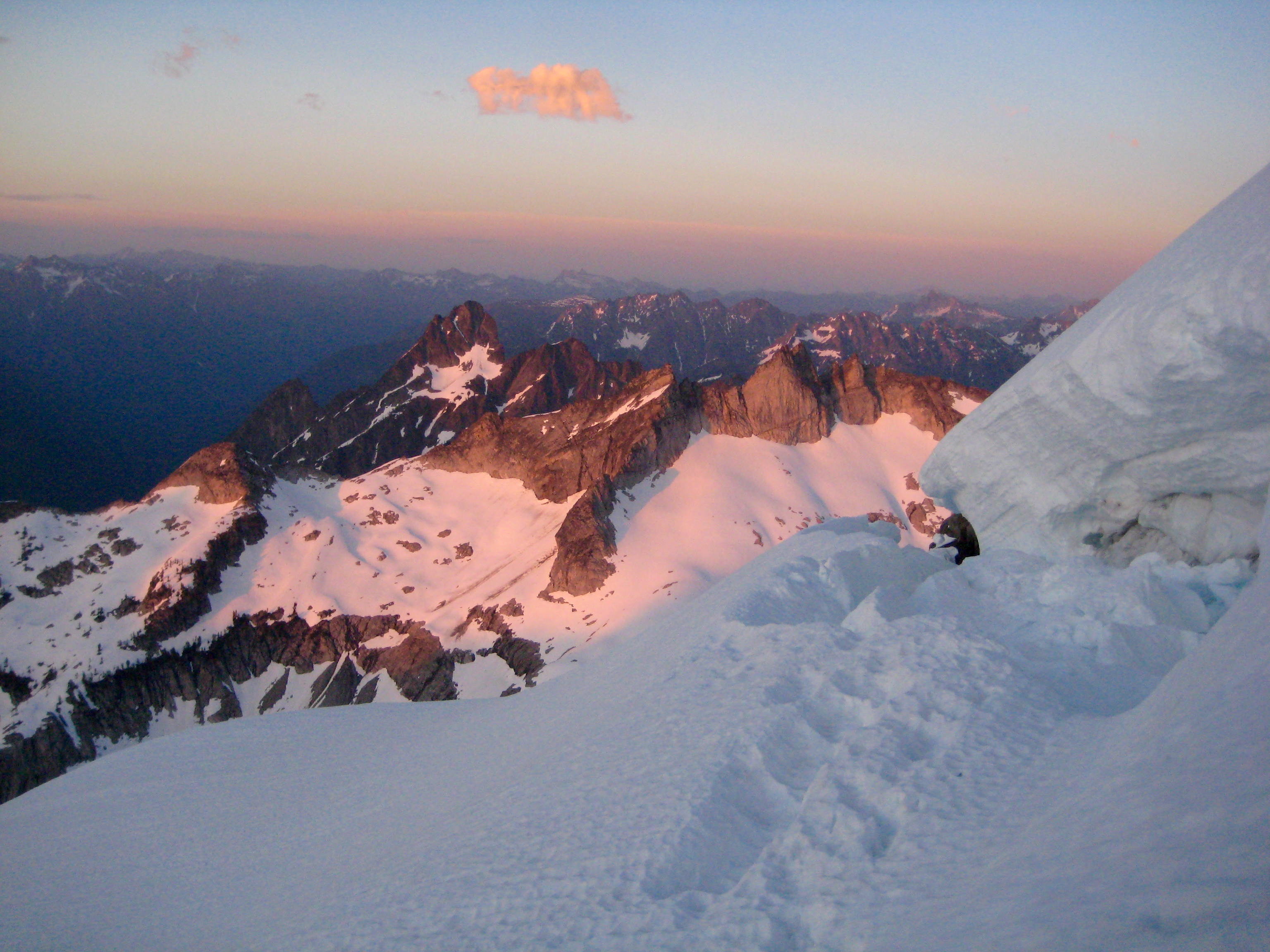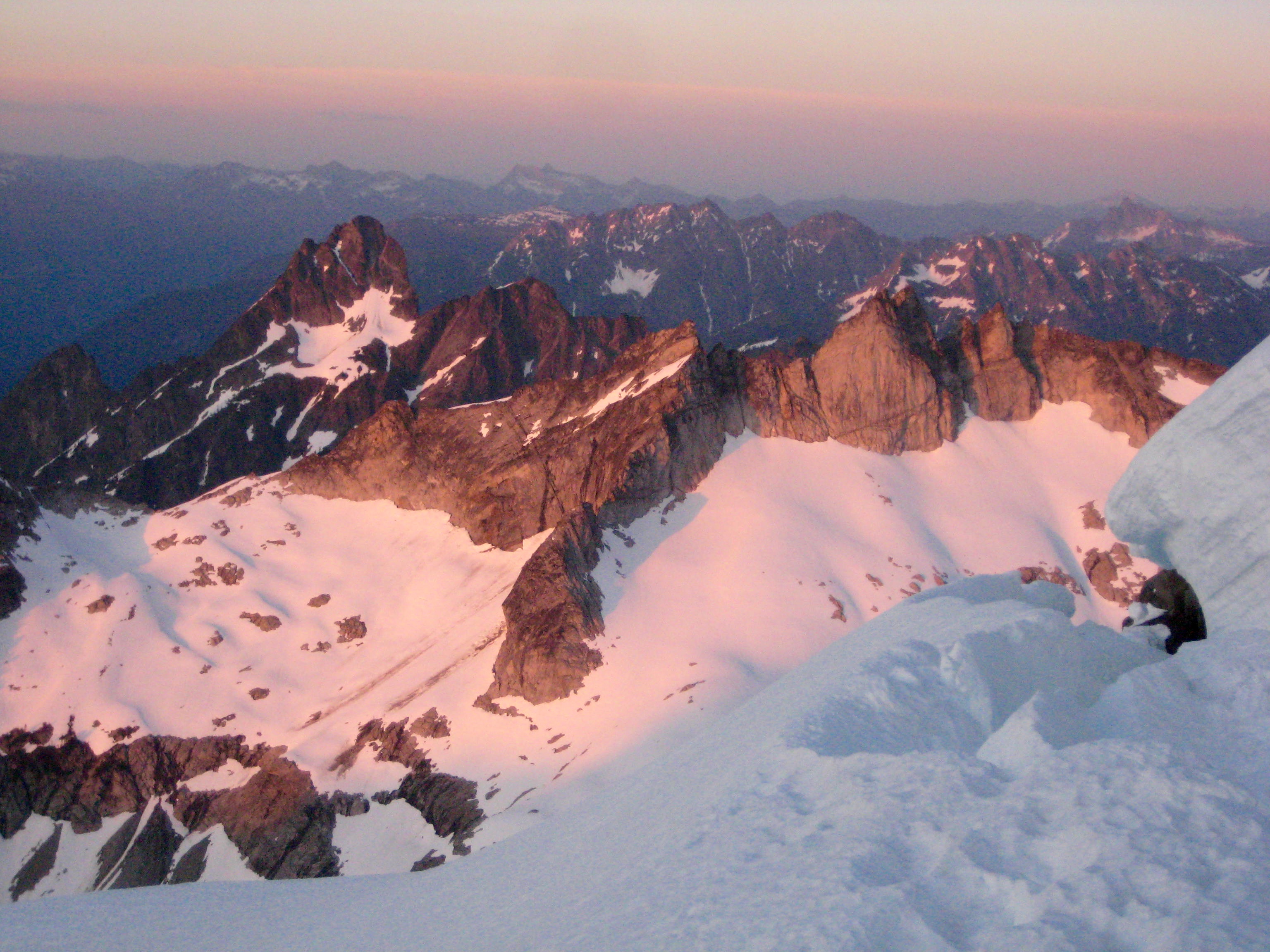 Summit: Sinister Peak (snow climb & rock scramble via Southwest Snowfield—Southwest Gully—Upper West Ridge; descent via Upper West Ridge—Lower West Ridge)