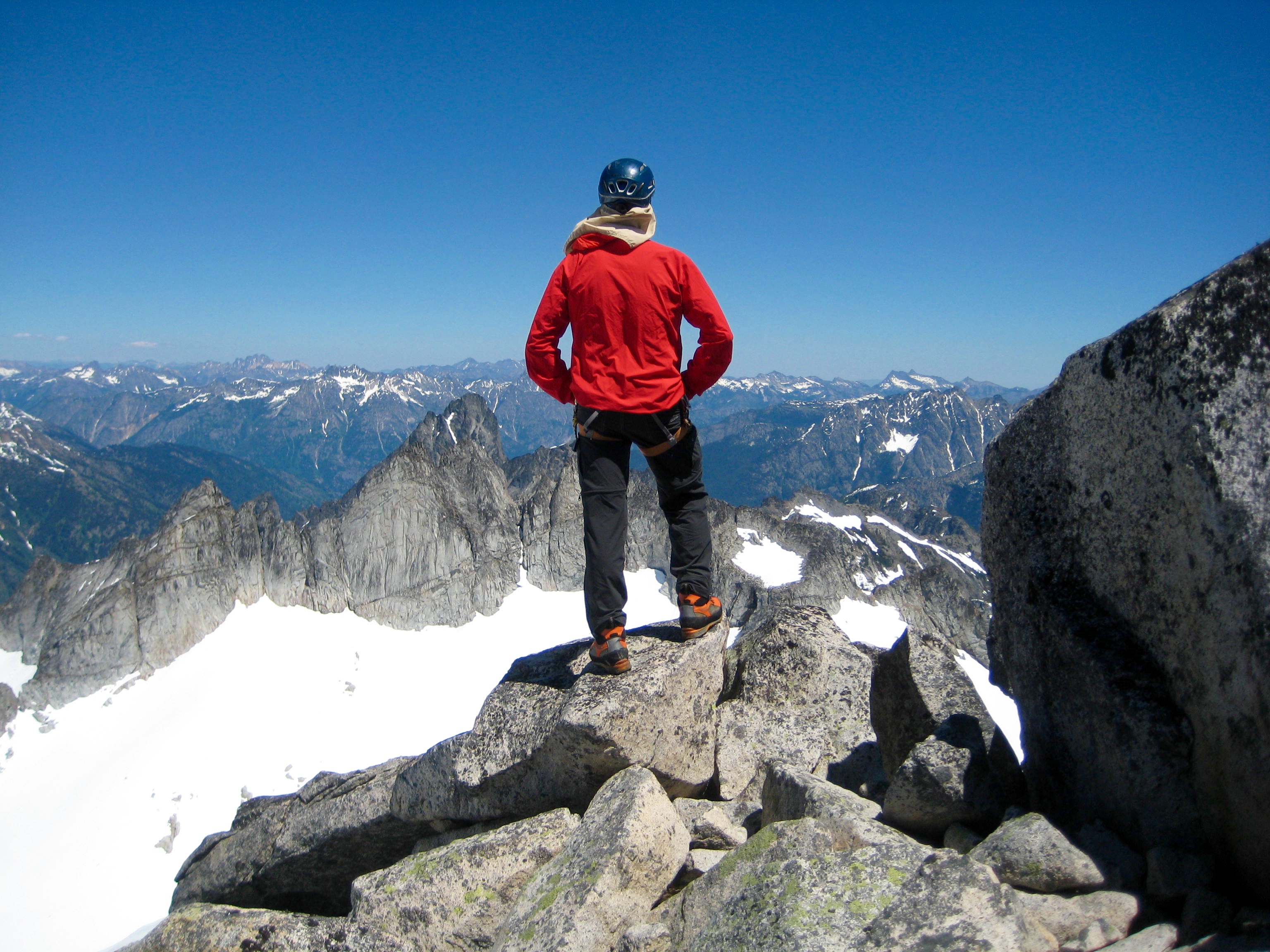 The summit of Gunsight Peak is a tiny horn of rock roughly the size of a barstool. We had to take turns tagging the horn.