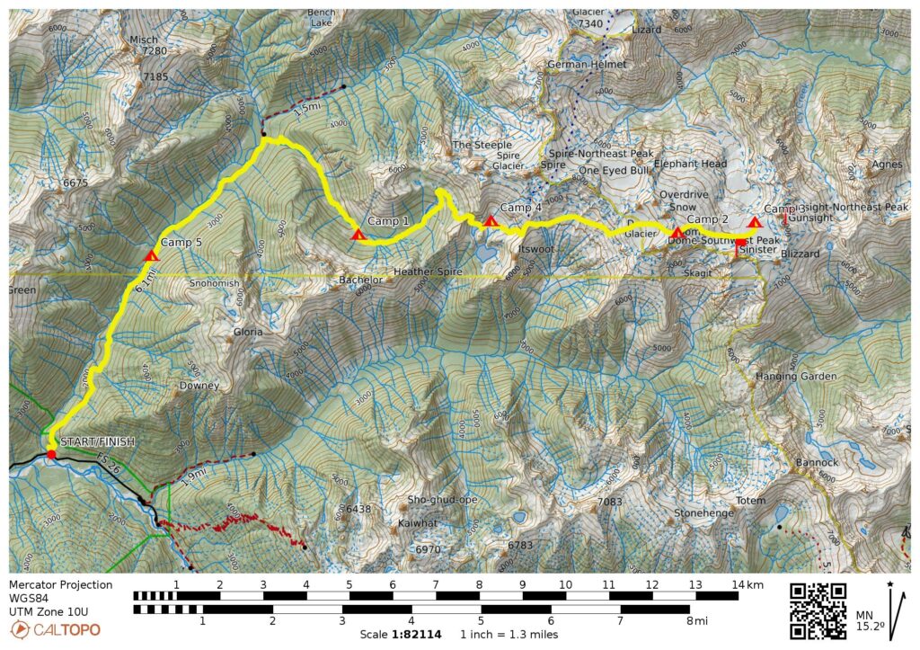 Starting & Ending Point: Downey Creek Trailhead on Suiattle River Road (Elev. 1400 feet)