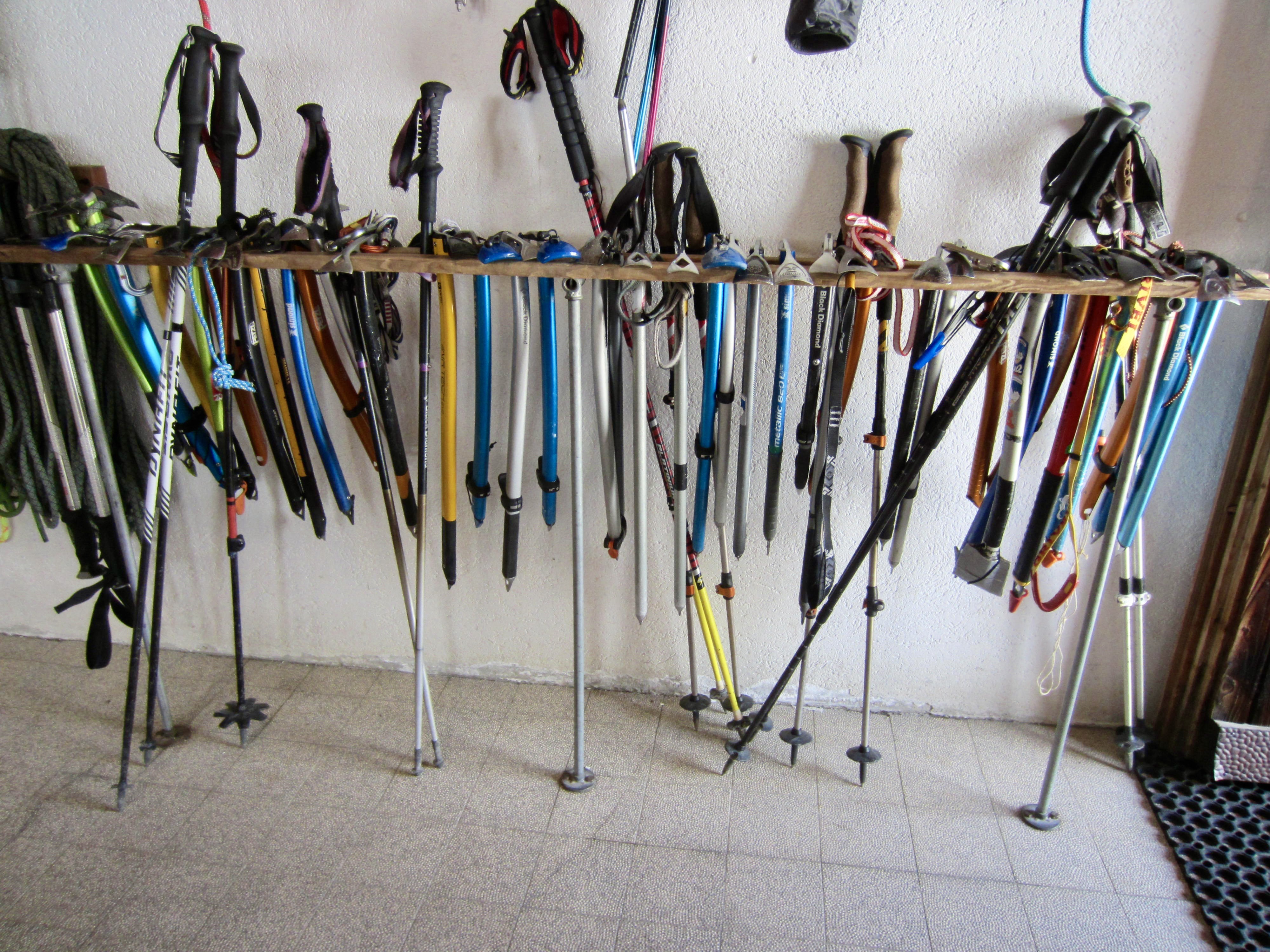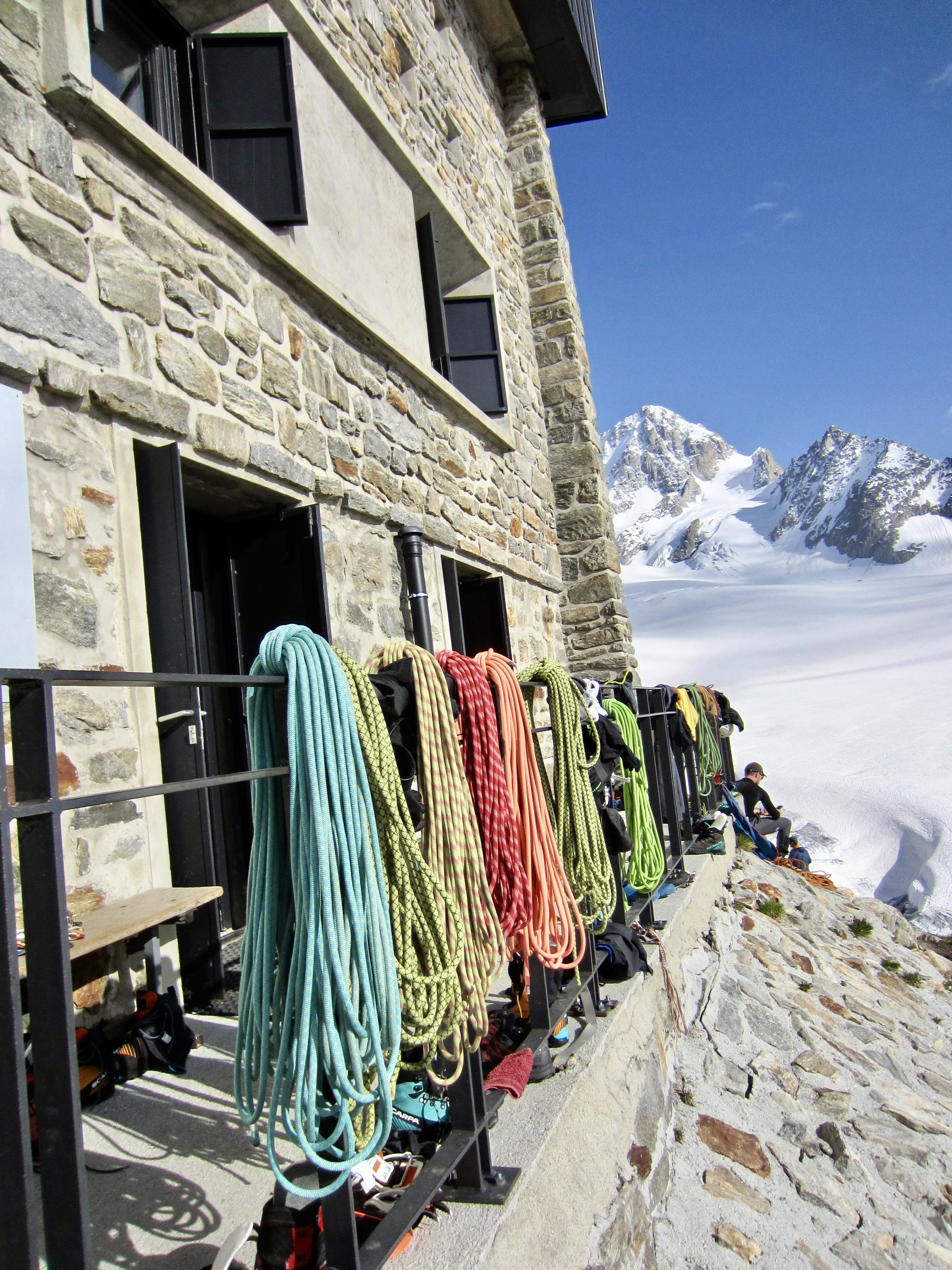 Because Orny Hut is accessible via a day-hike from the town of Champex, it was very busy on this Friday afternoon. Unlike Albert Premier Hut, though, the main attraction here is not alpine climbing; instead, it is crag climbing on the nearby rock walls. Cams and rock shoes were prevalent, but ice axes were still needed for some approaches.