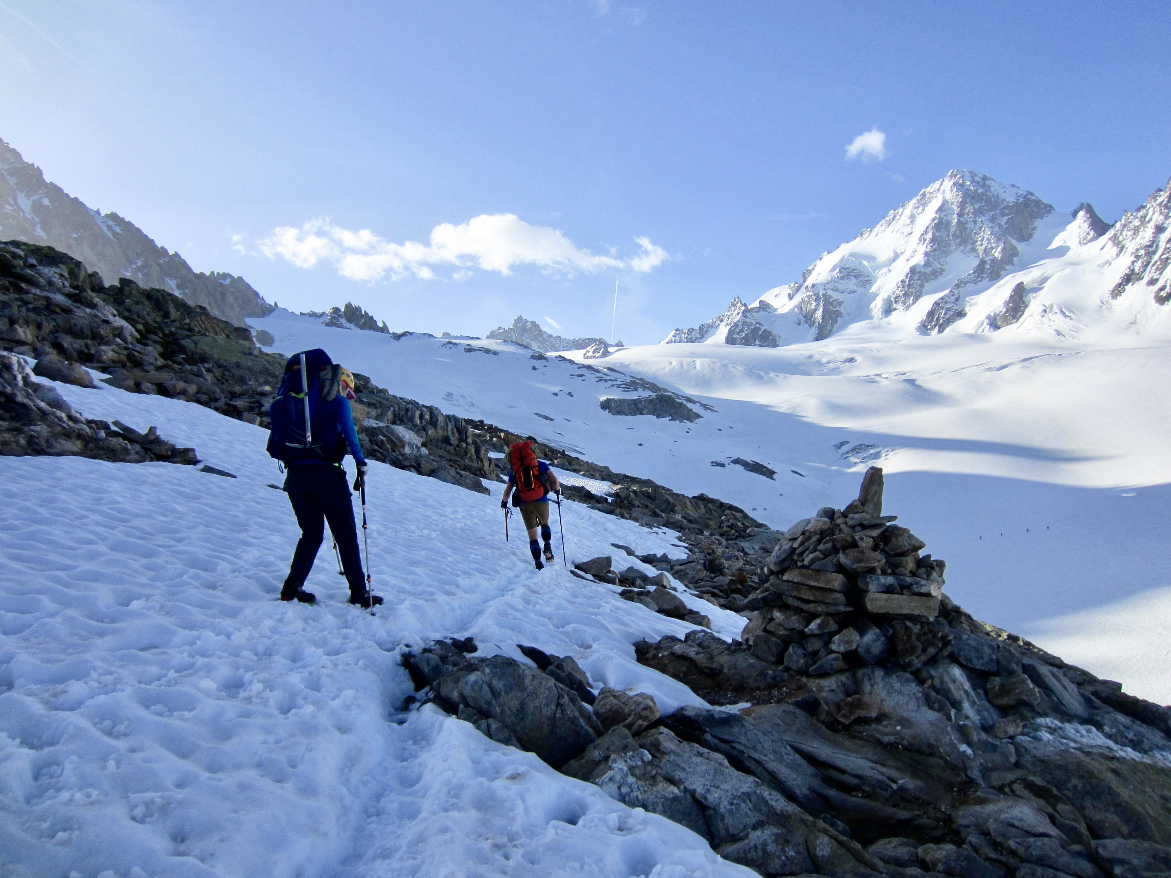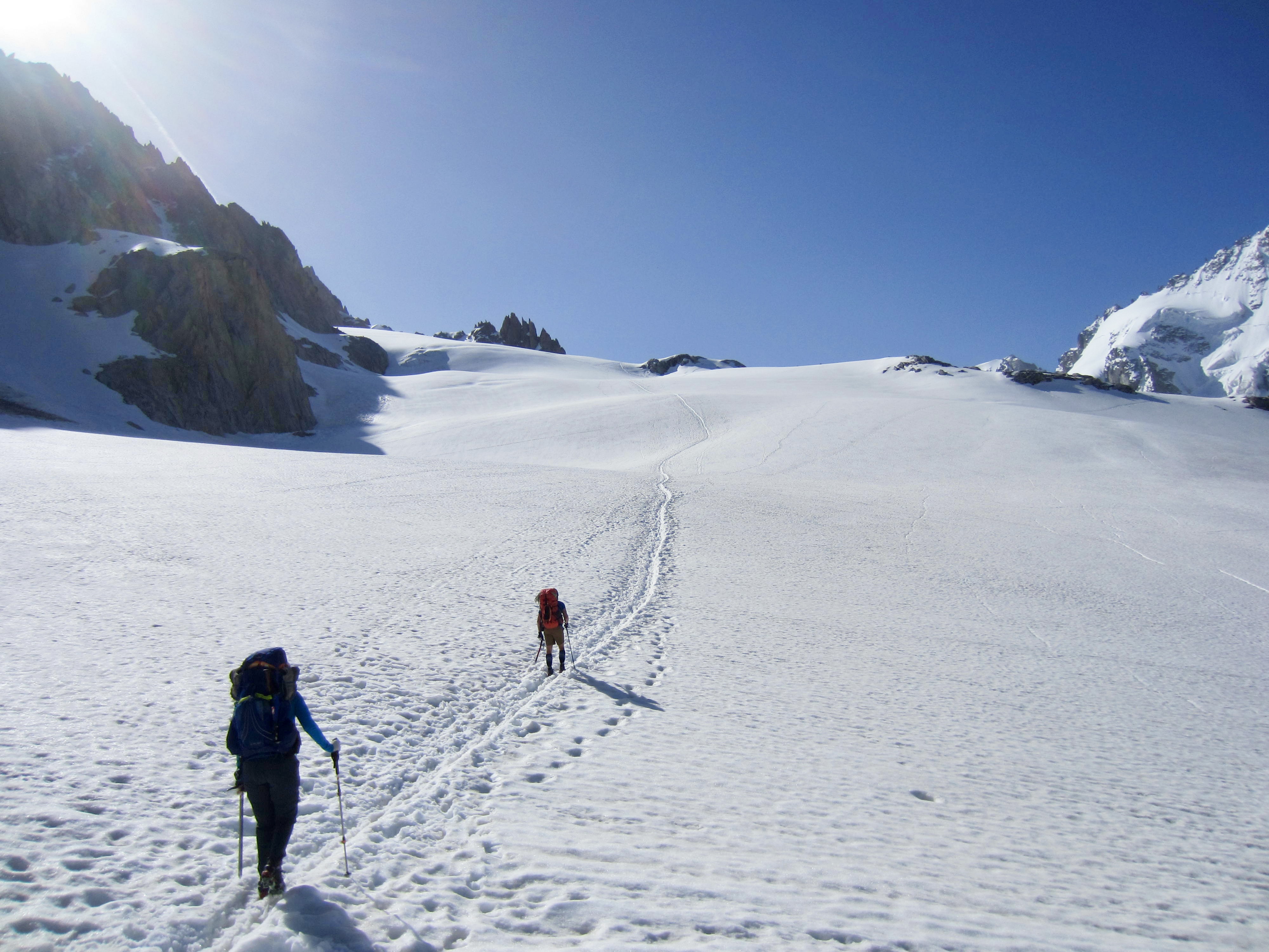 On the other hand, the prevalence of mountain huts and access trails along the Haute Route greatly reduces the amount of gear to be carried and mitigates the level of commitment needed. Both of the Cascadian traverses require trekkers to be fully self-contained, and neither of them offers a good bail-out route. In most locations, the only feasible “bail-out” options are to keep going forward or go back to the start!