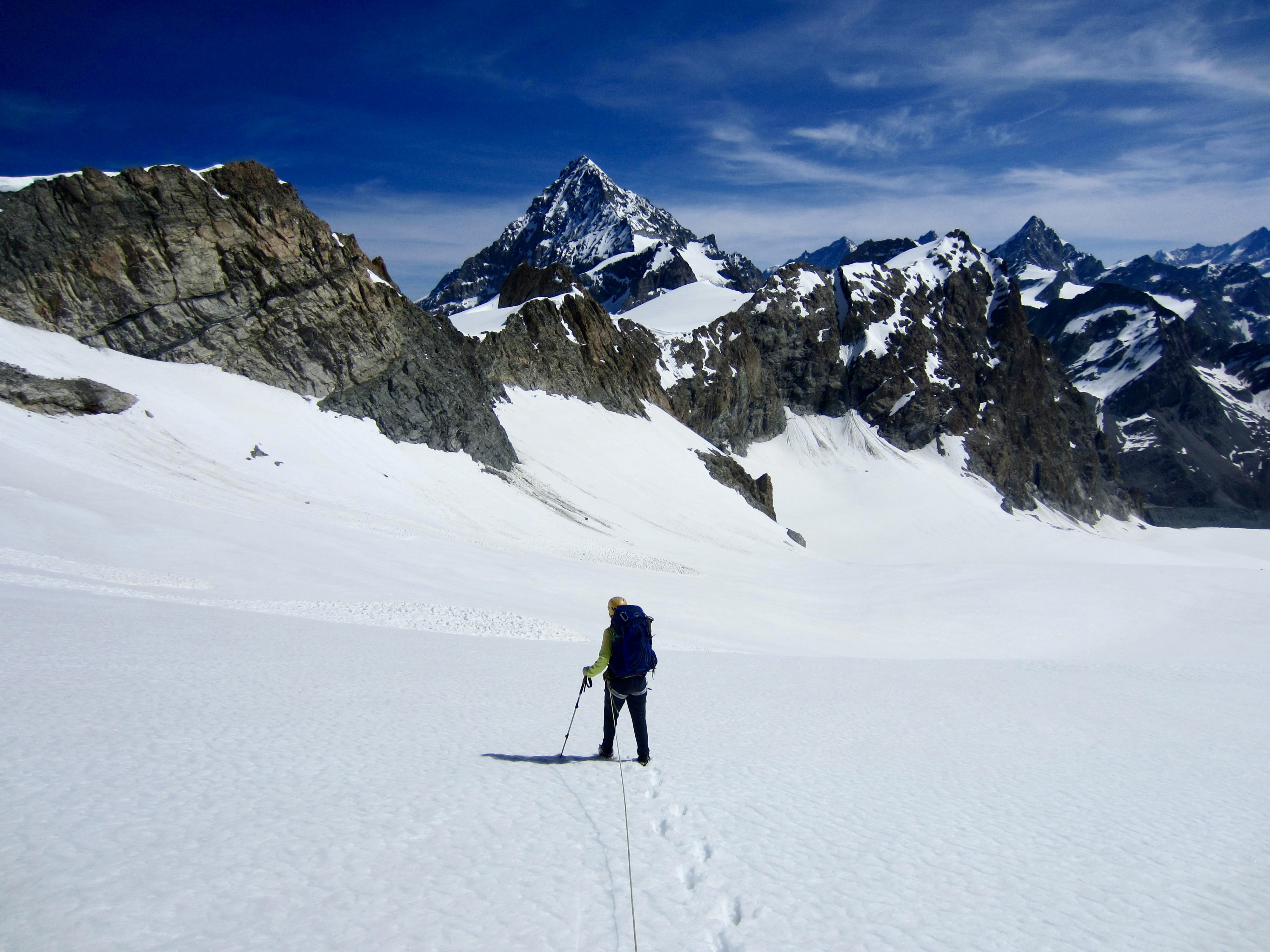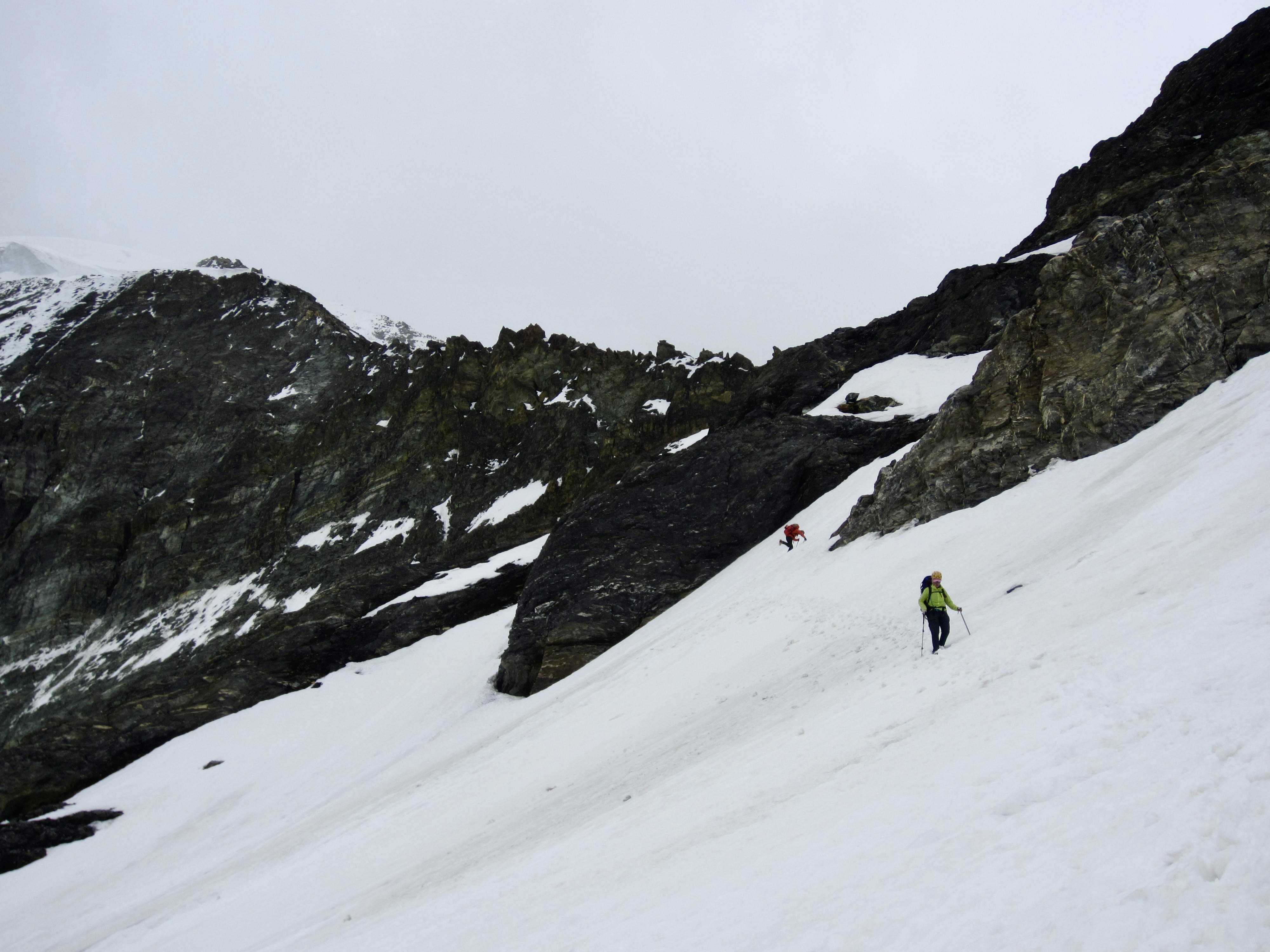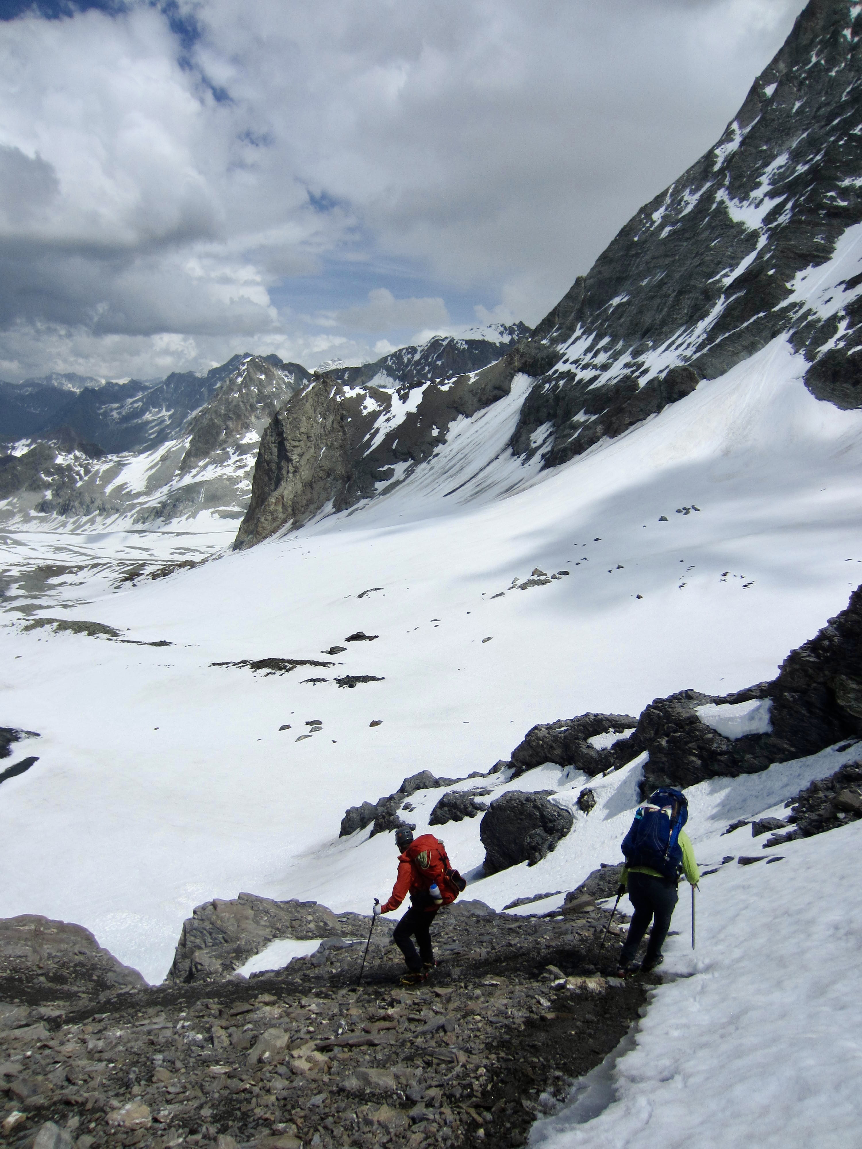 From our new vantage, we could scope out a route across the Arolla Glacier (called the Mont Collon Glacier on some maps) and up to Eveque Col. It appeared to be very straightforward—and it was.