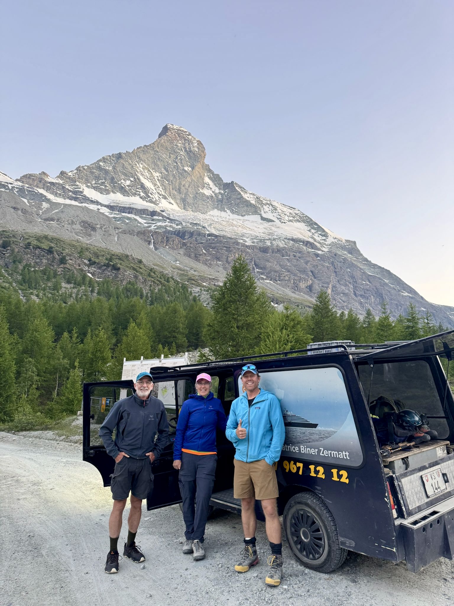 An hour later, we were bouncing down a rough road in a Schaller Taxi driven by a gregarious man who was intrigued by where we had been and what we had done. We tried to describe our journey over the past week, but I don’t think he fully understood. As the local climber at Bertol Hut had told us yesterday, “Nobody here does what you guys are doing.” And what a grand adventure it was!