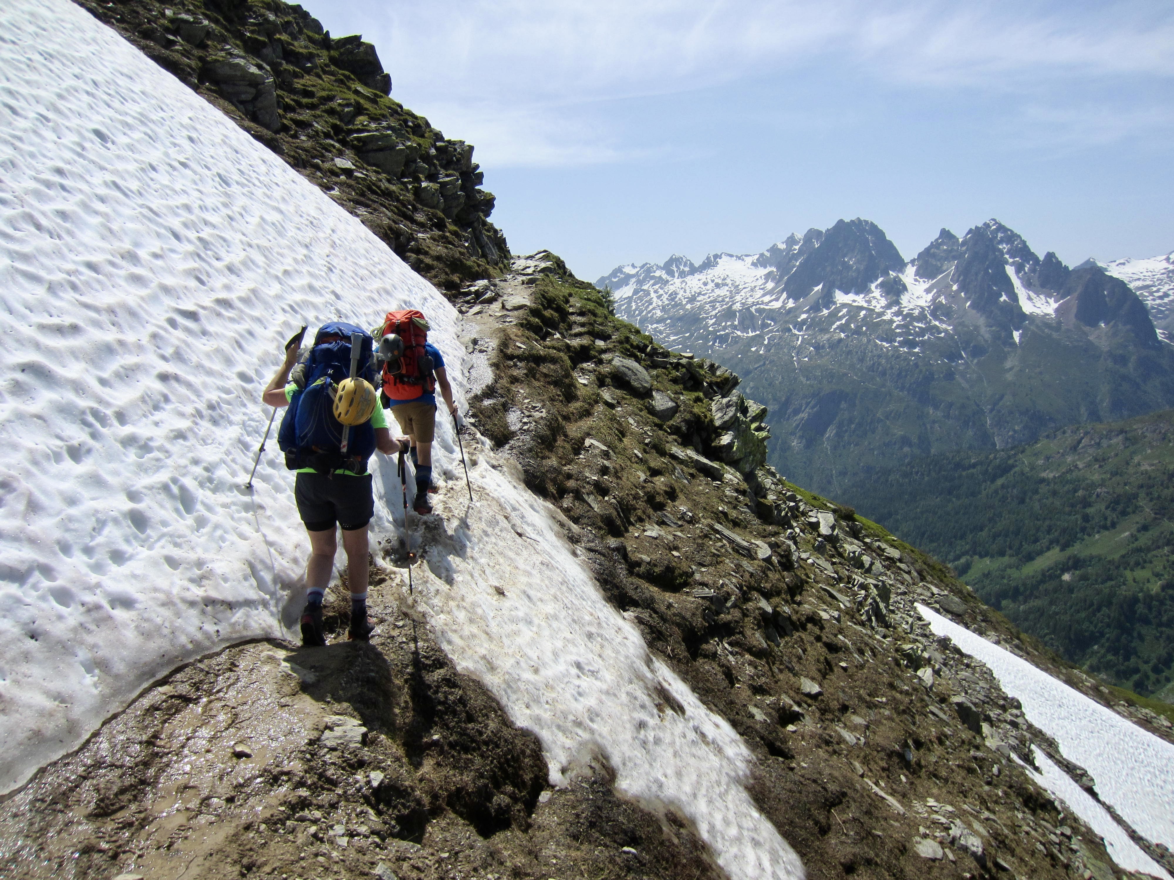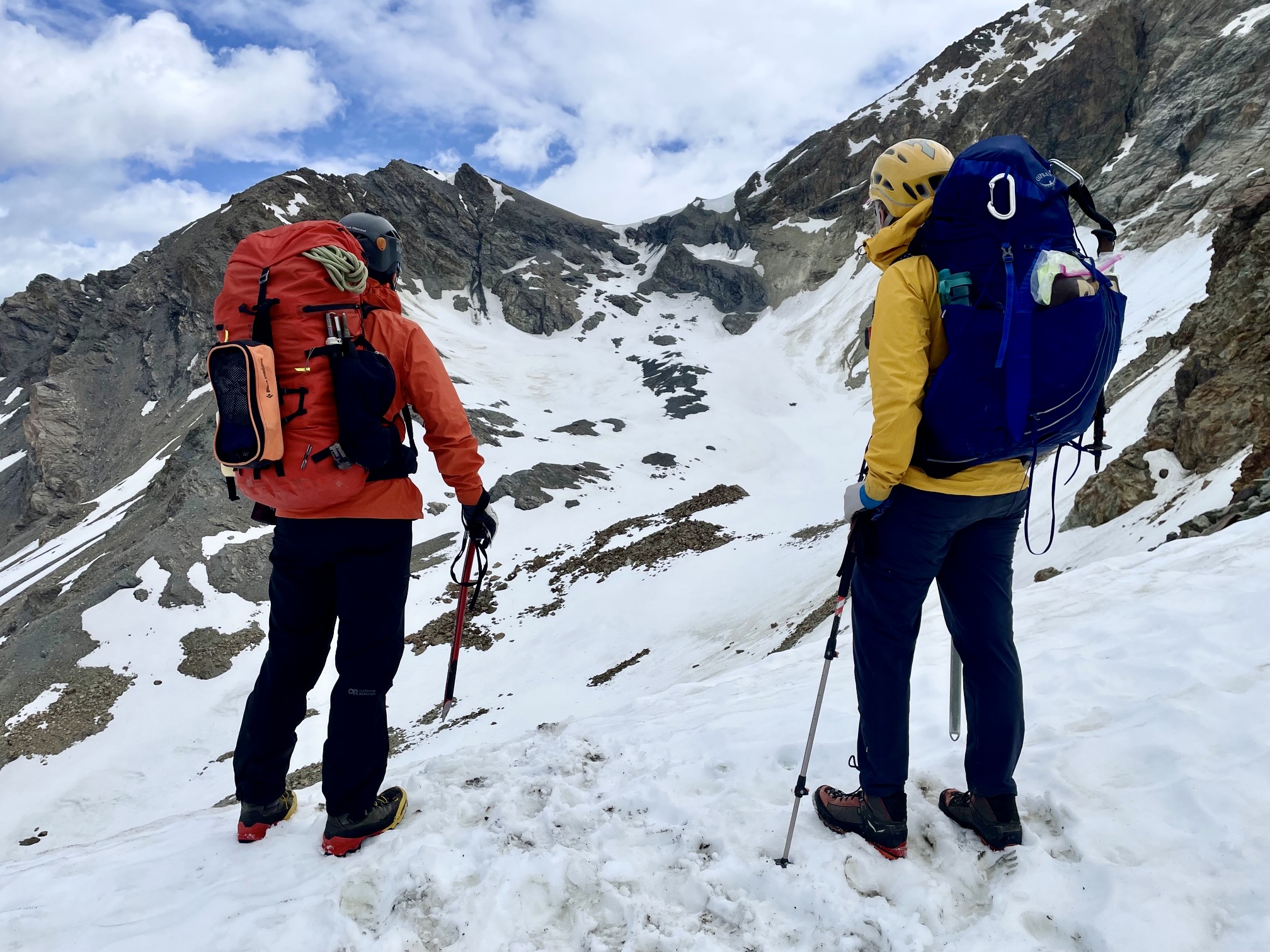 Packs: Given our early-season schedule and associated need to haul more food and clothing than typically required for a summertime hut-to-hut trip, our Haute Route traverse had the character of a hybrid trip. As such, we each carried a relatively large rucksack, with capacities ranging from 38 to 55 liters.