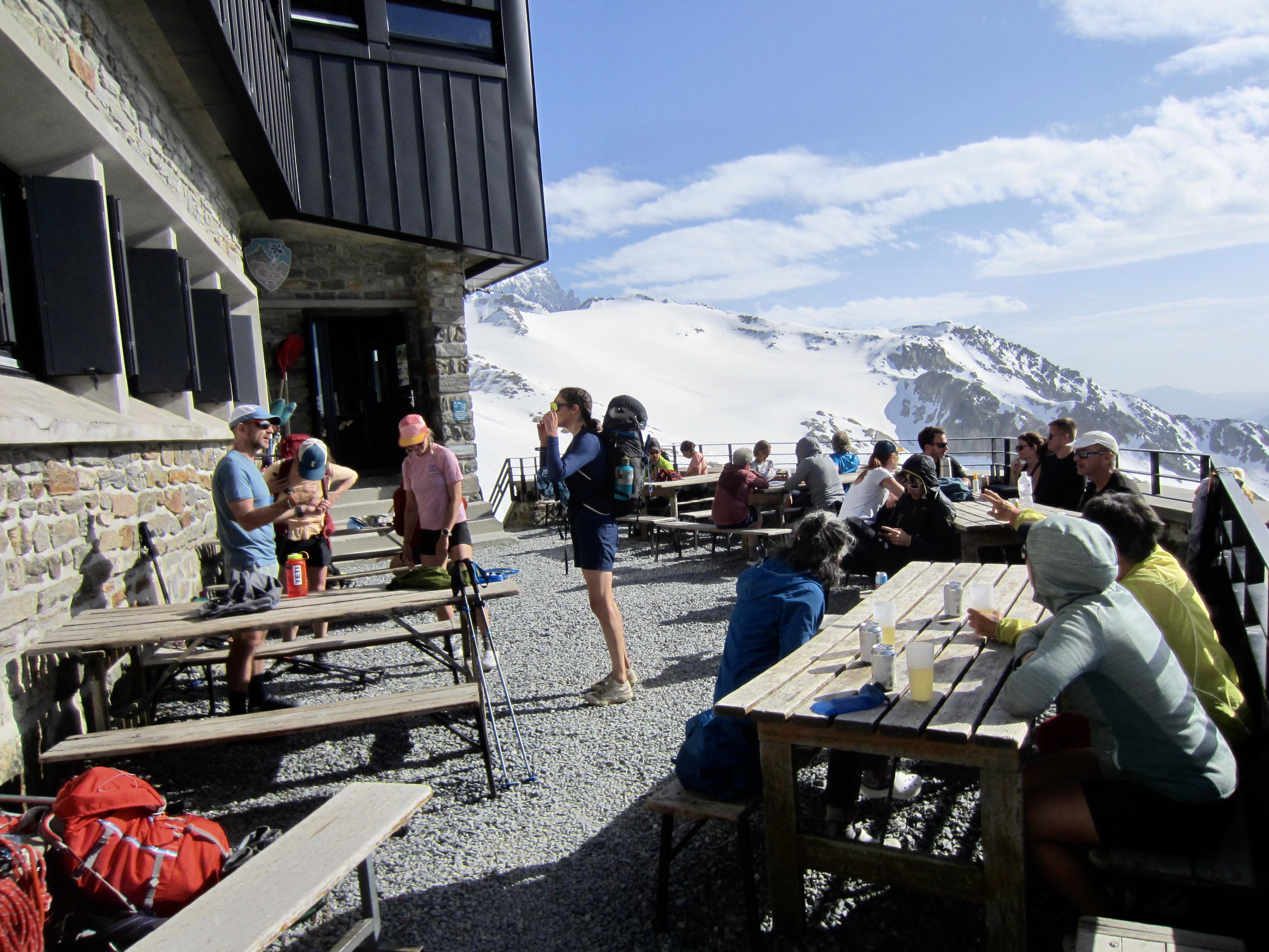 Being so close to Chamonix and other towns, the hut was bustling with softshell-clad climbers—mostly mountain guides and clients. We selected our bunks and then enjoyed a family-style dinner in the dining room.