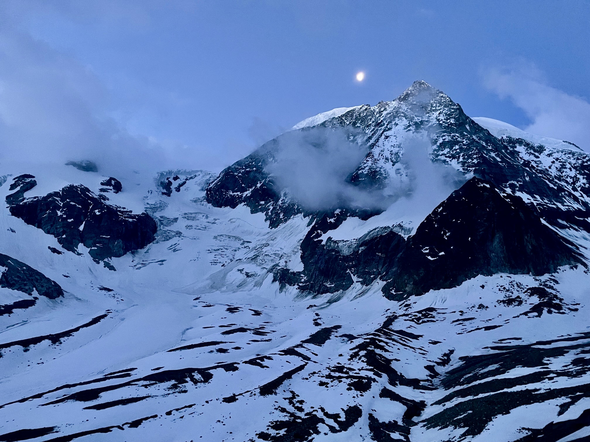 An unexpected consequence of our early-season schedule was the complete absence of other people during the middle part of our traverse. In contrast to the playground atmosphere that permeated our first two huts, we saw no other humans between Mauvoisin Dam on Day 3 and Bertol Plain on Day 6. This lended a more adventurous and familiar flavor to our traverse—it felt much more like our previous Cascadian traverses. However, it was surprising to be alone in the highly populated Alps. Was this normal? At Bertol Hut, on the last night of our trek, a local climber explained it in simple terms for us: “Nobody here does what you guys are doing.”