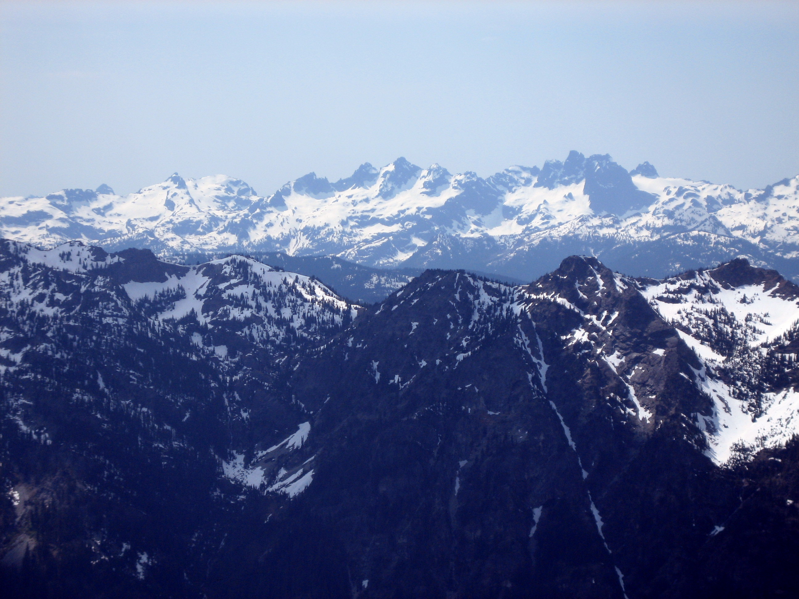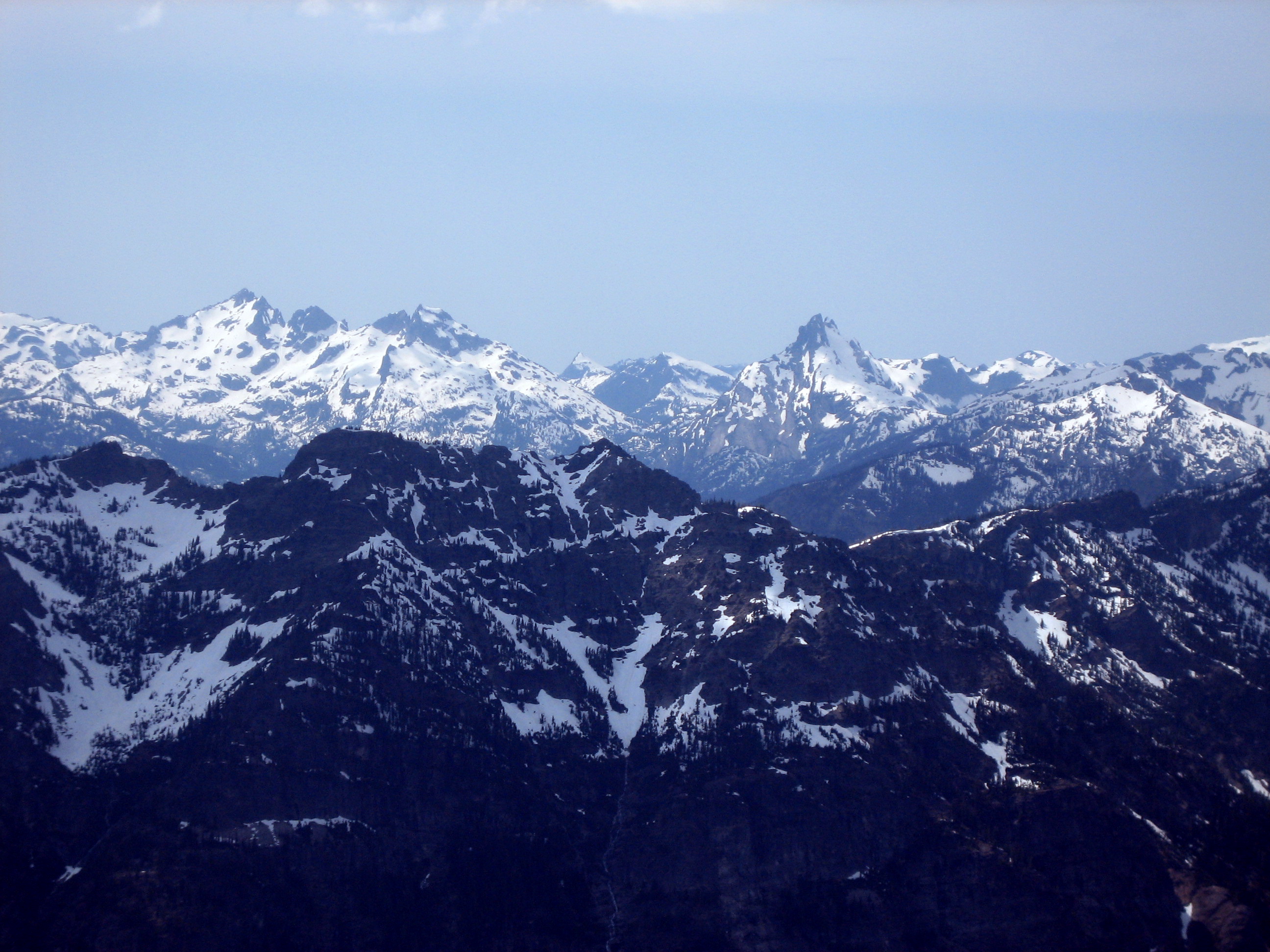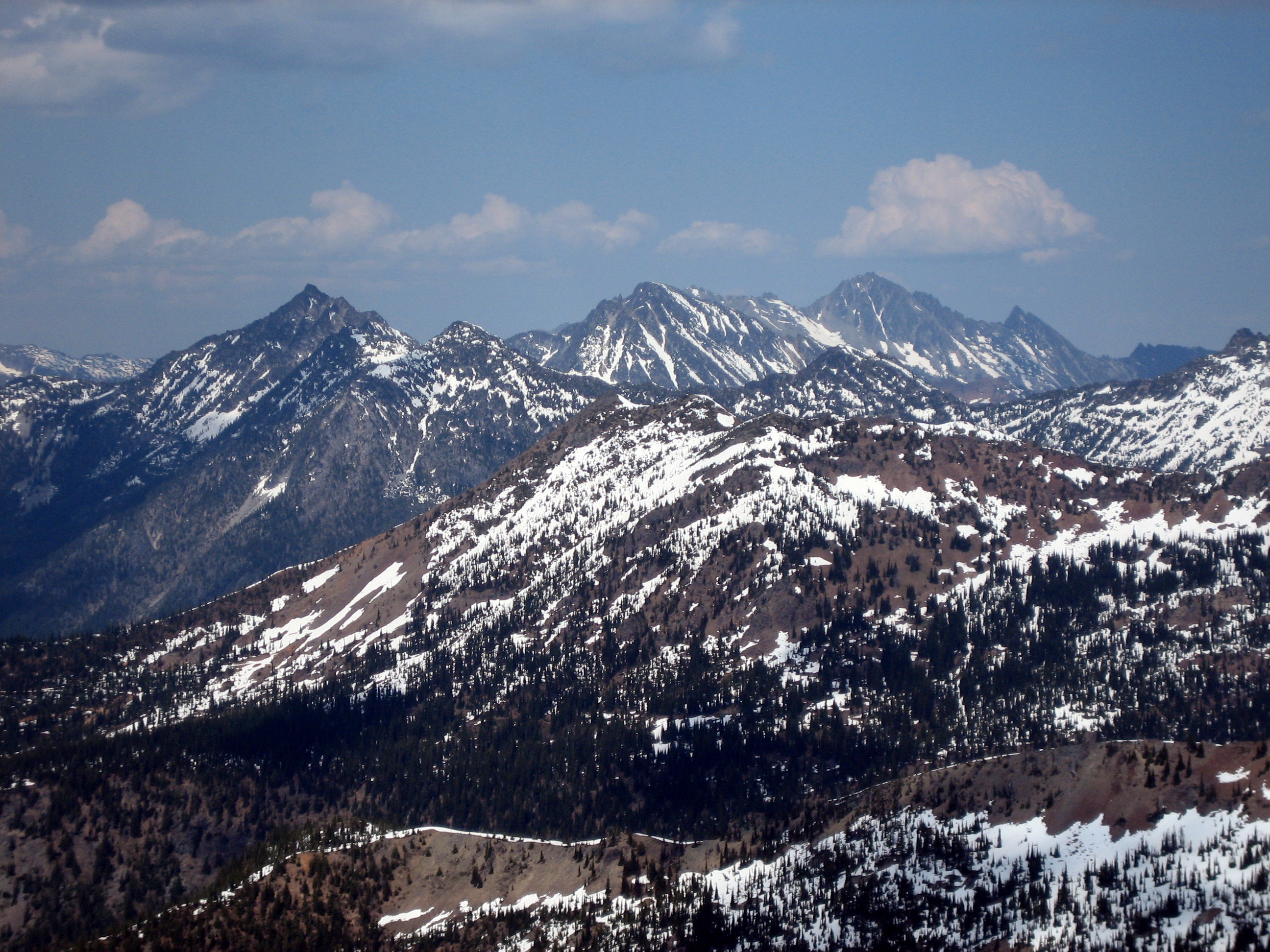 We reached the broad summit in mid afternoon (4.7 hours up). This sprawling, prominent peak offers fine views of Mt. Stuart, the Teanaway Mountains, and the Snoqualmie Mountains.