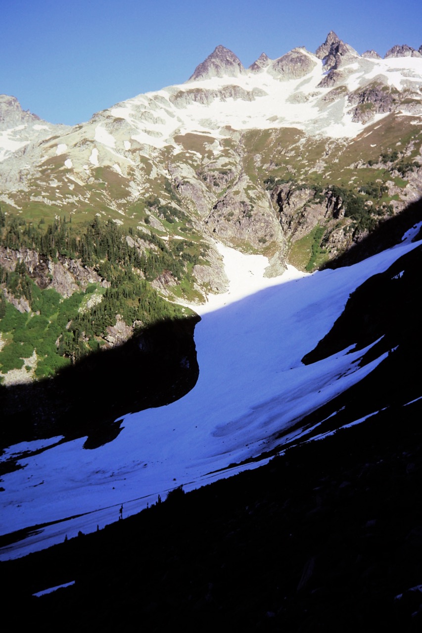 Traverse Way Points: Phelps Creek Bridge & Chiwawa River & Buck Creek & Buck Creek Pass & High Pass & High Creek & Upper Napeequa Valley & Napeequa Cirque & Neyah Saddle & Thunder Basin & Chalangin Basin & Thunder Creek & White River (trail hike & off-trail hike & snow climb & bushwhack)