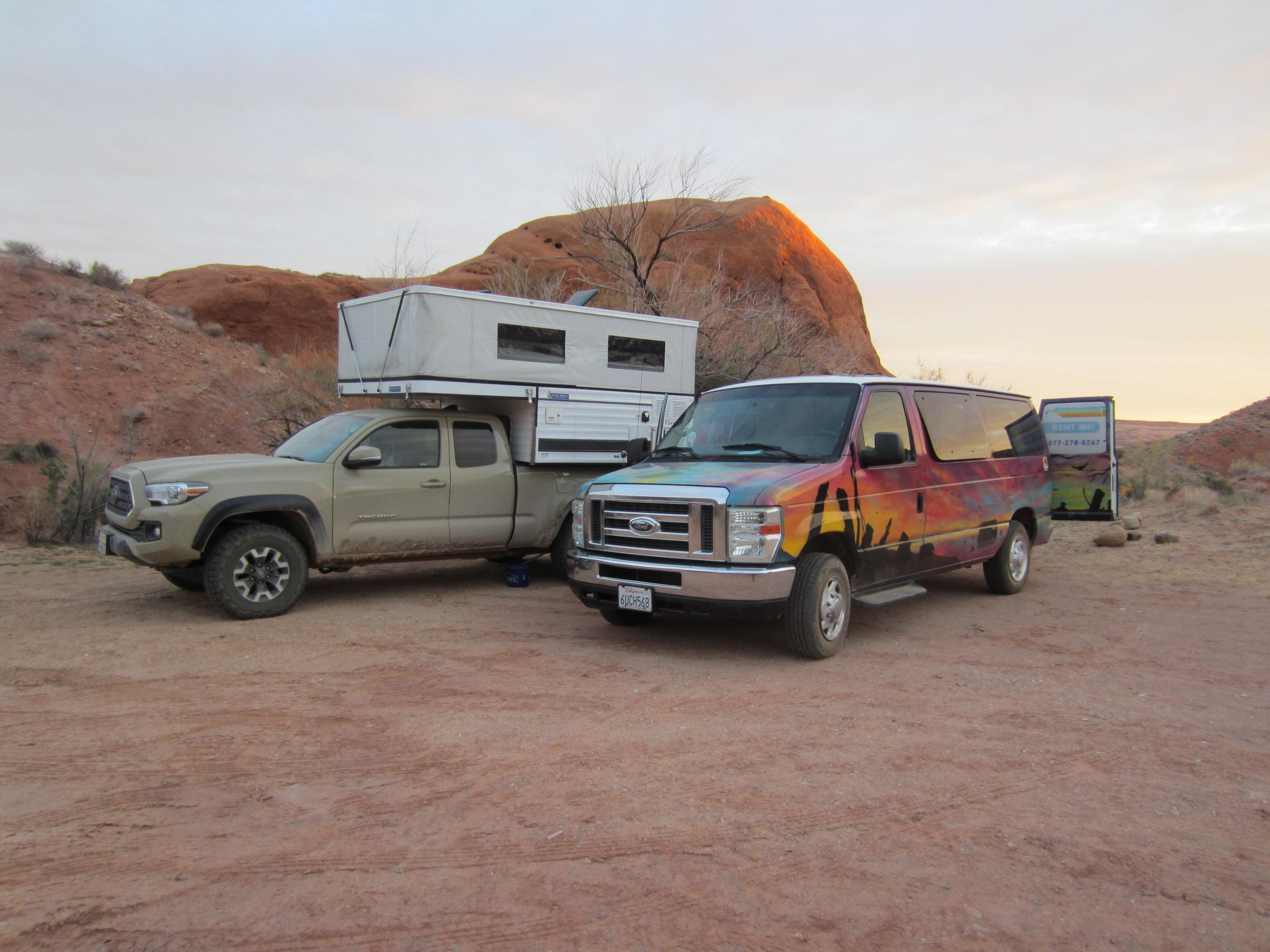 For modern-day explorers, Hole-in-the-Rock can be reached either by driving out the long and rough Hole-in-the-Rock Road #200 from Escalante or by boating in on Lake Powell. Eileen, Steve, Deb, and I chose to drive out as part of our two-week car-camping trip through the Desert Southwest. Starting from our boondock campsite in Sooner Wash on a sunny morning, we all squeezed into Steve and Deb’s four-wheel-drive truck and headed east. Eileen and I left our two-wheel-drive Escape Campervan behind to guard the camp.