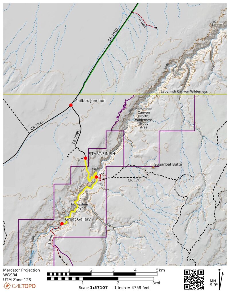 Horseshoe Canyon Exploration Route Map (CalTopo)
