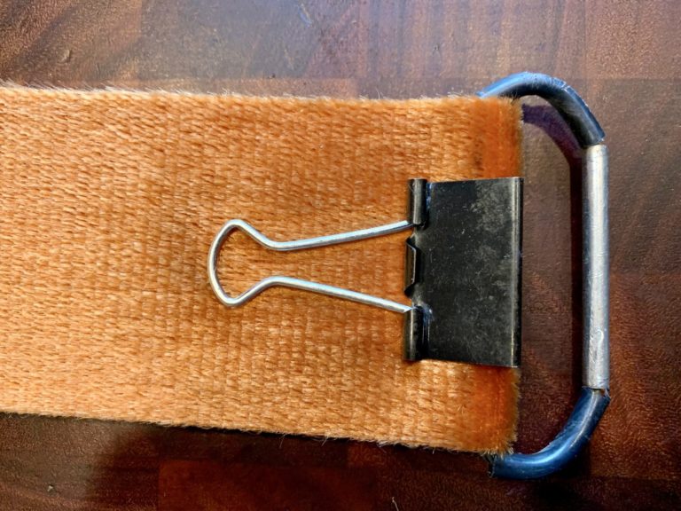 My simple fix for this problem is to attach a medium-size binder clip to the top of each skin. The clips apply just enough force to keep the tip loops in place. They remain in place constantly, whether the skins are attached to my skis, stored in their bag, or hung up to dry. And if I ever need to adjust the length of the skins, it’s an easy matter to remove and then replace the clips.