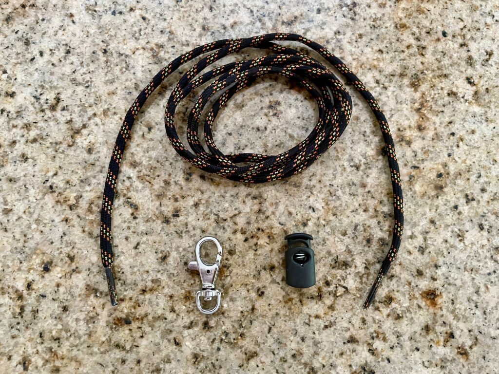 - A length of nylon cord, approximately 5 to 6 feet long. A standard 66-inch or 72-inch nylon bootlace works very well for this purpose.