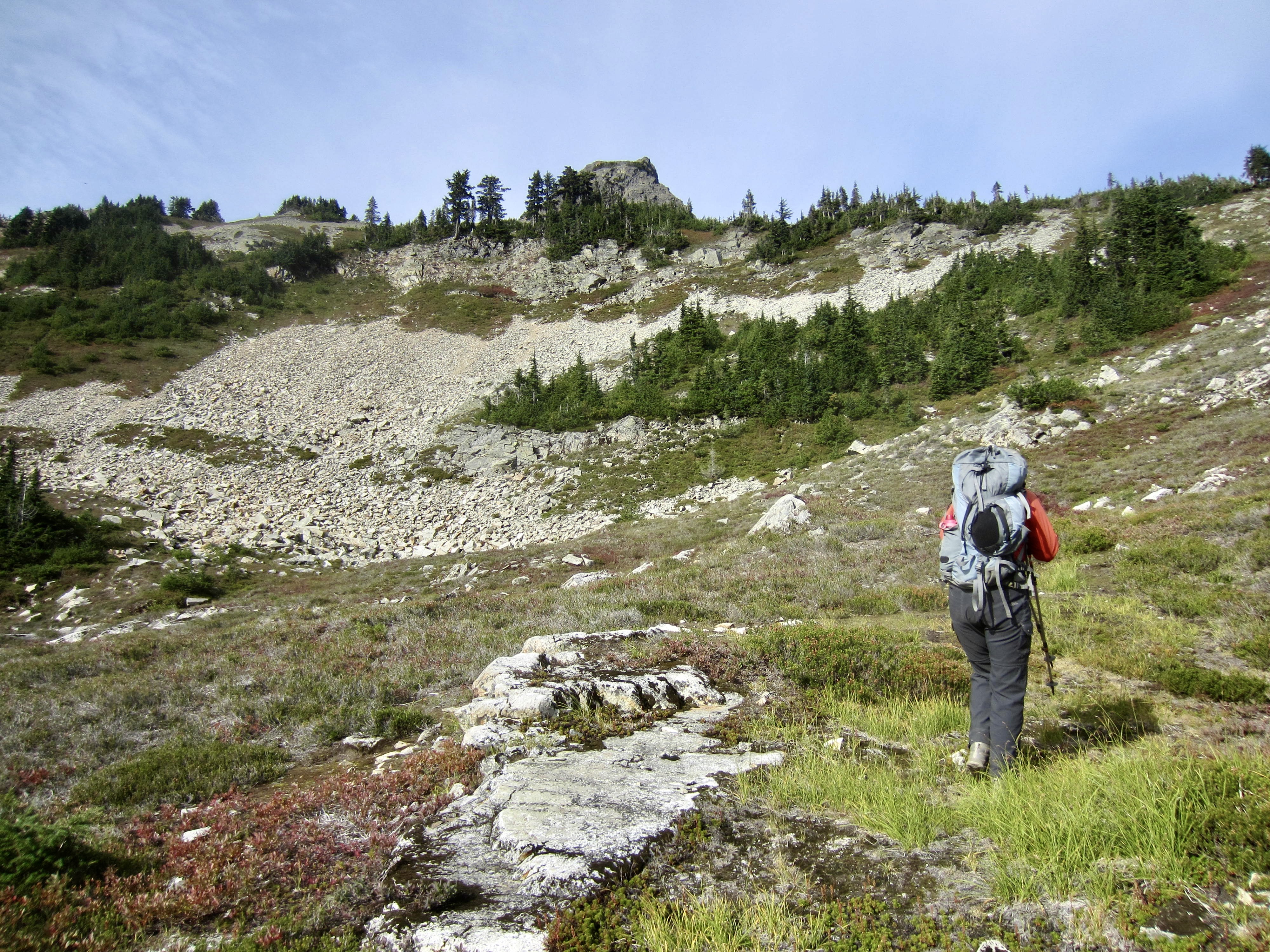 Eileen Approaching East Ridge Of Huckleberry Mtn