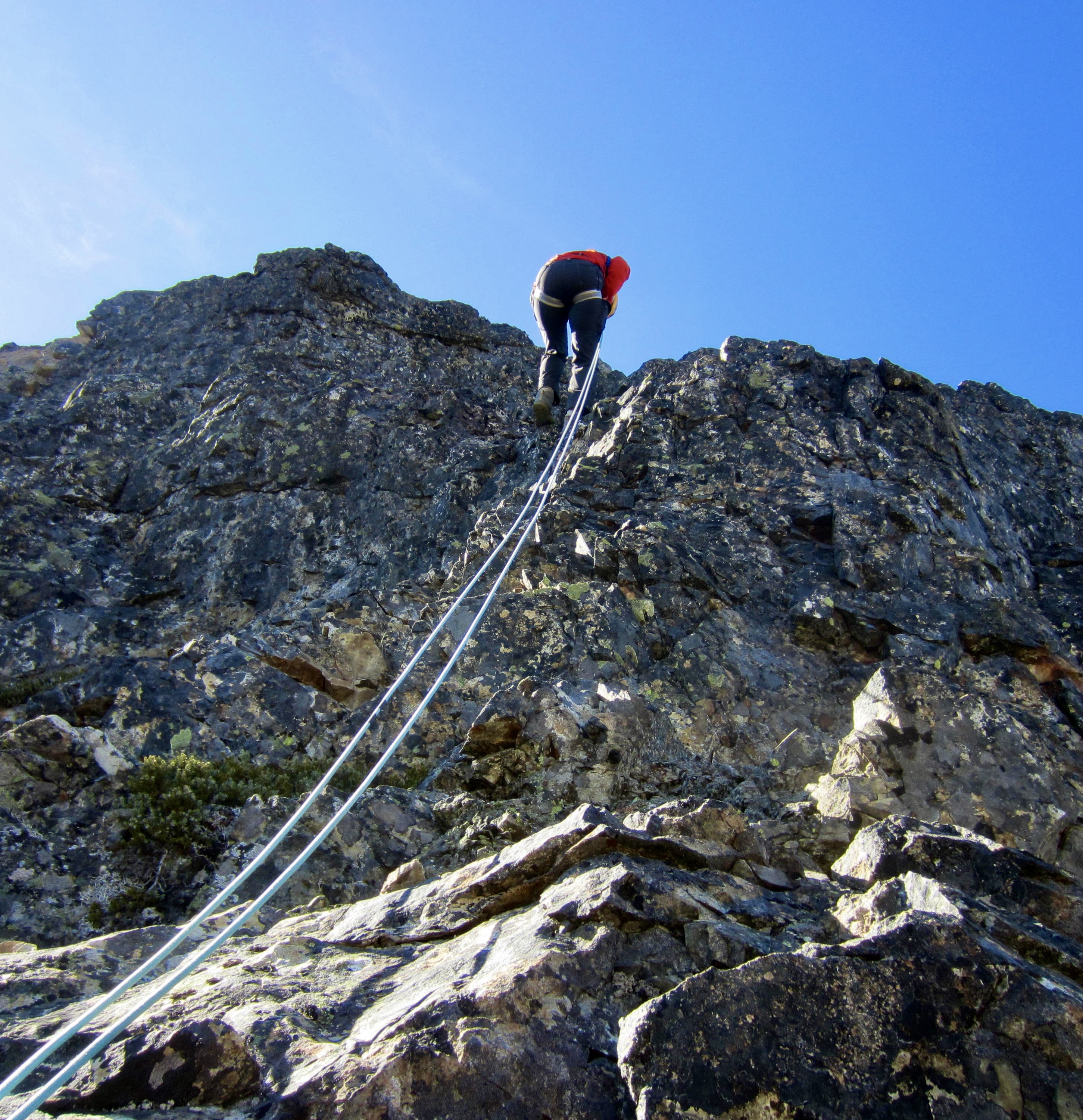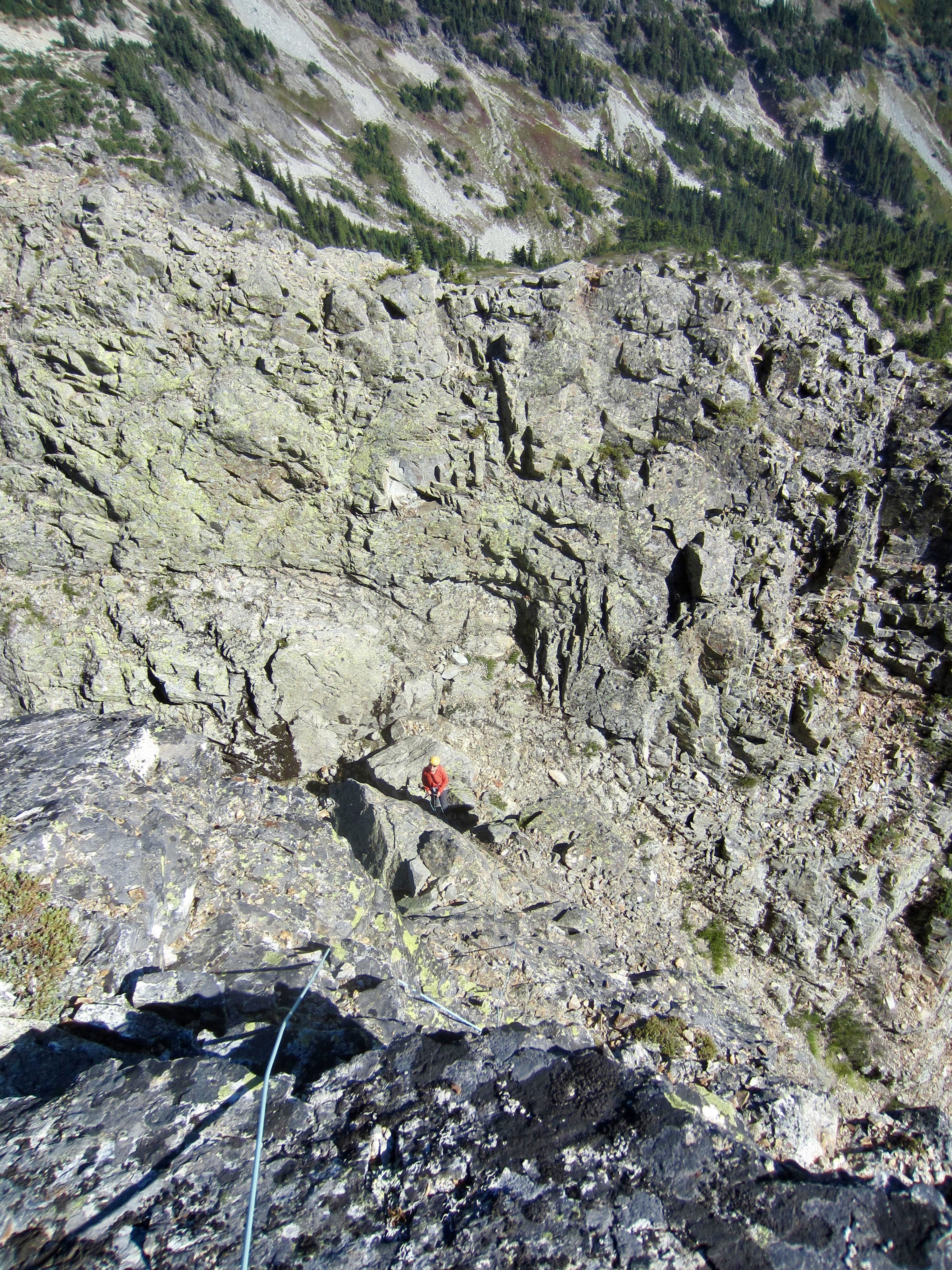 Eileen Rappelling Down Huckleberry Mtn Summit Block