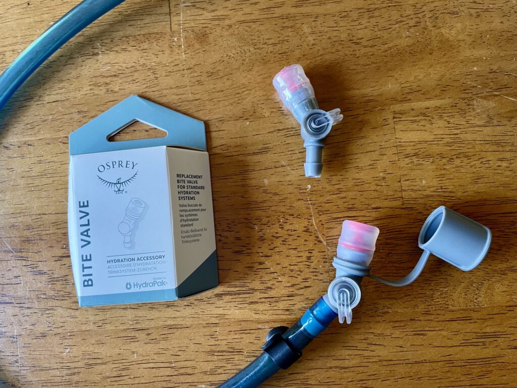 Initially, I was also very happy to say that the bite valve does not leak. After a full year of use, however, I have noticed a small but nearly constant bit of dripping at the nozzle when the shut-off valve is open. Furthermore, the shut-off valve itself gradually became very sticky and difficult to open or close. Although I’ve been happy with the rest of the bladder system, this dripping was unacceptable. Fortunately, I was able to find an effective and inexpensive (about $10) solution: I replaced the faulty Platypus valve with an Osprey Hydraulics bite valve, which fits nicely into the Platypus hose. After numerous hikes and rides with the new fix, I’ve had no leakage problems.