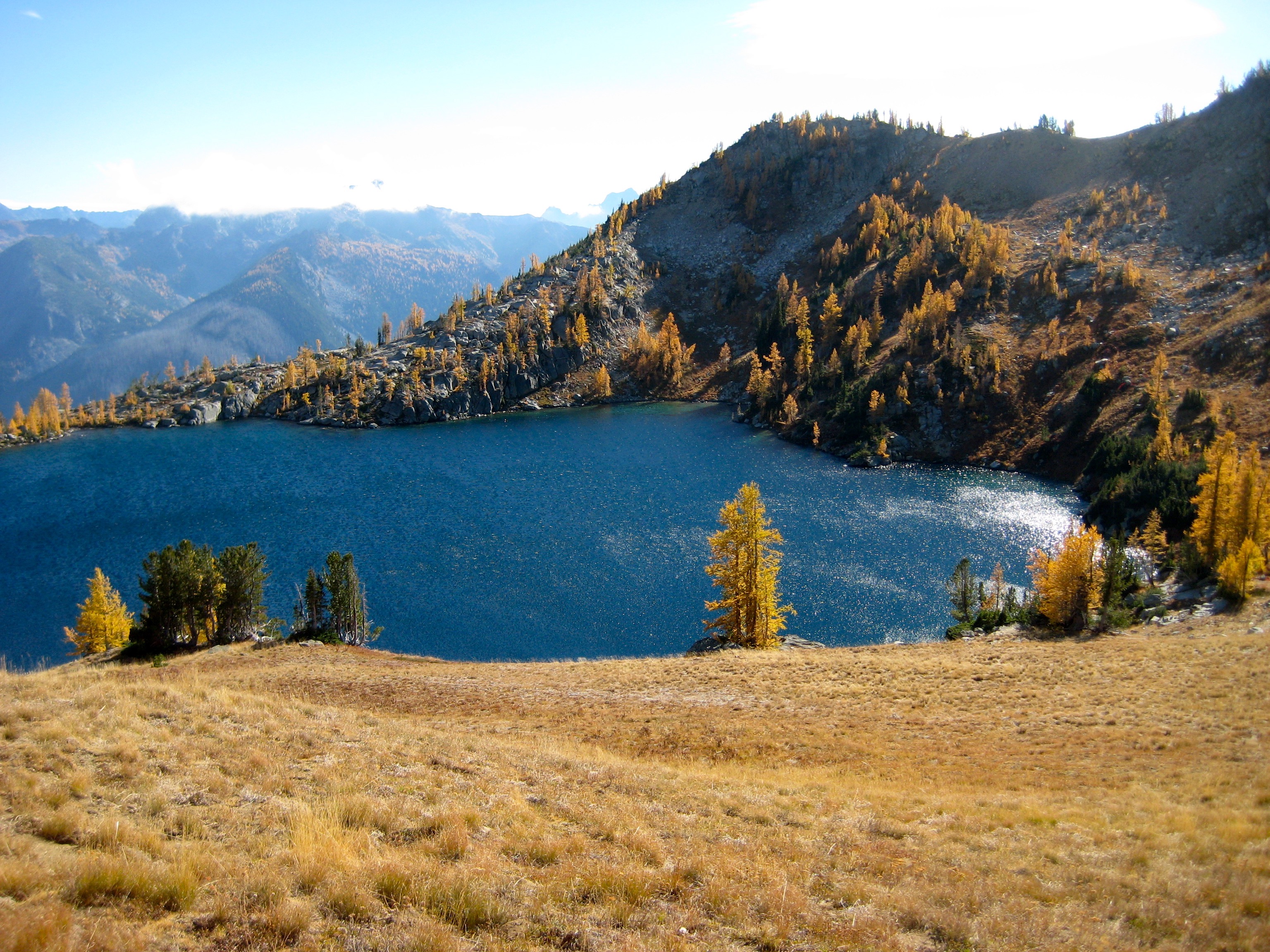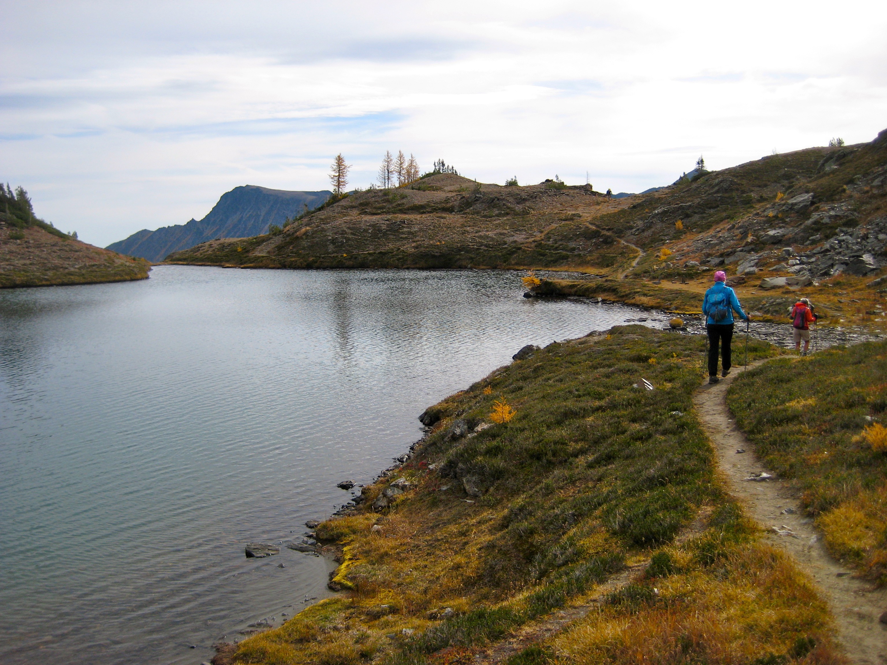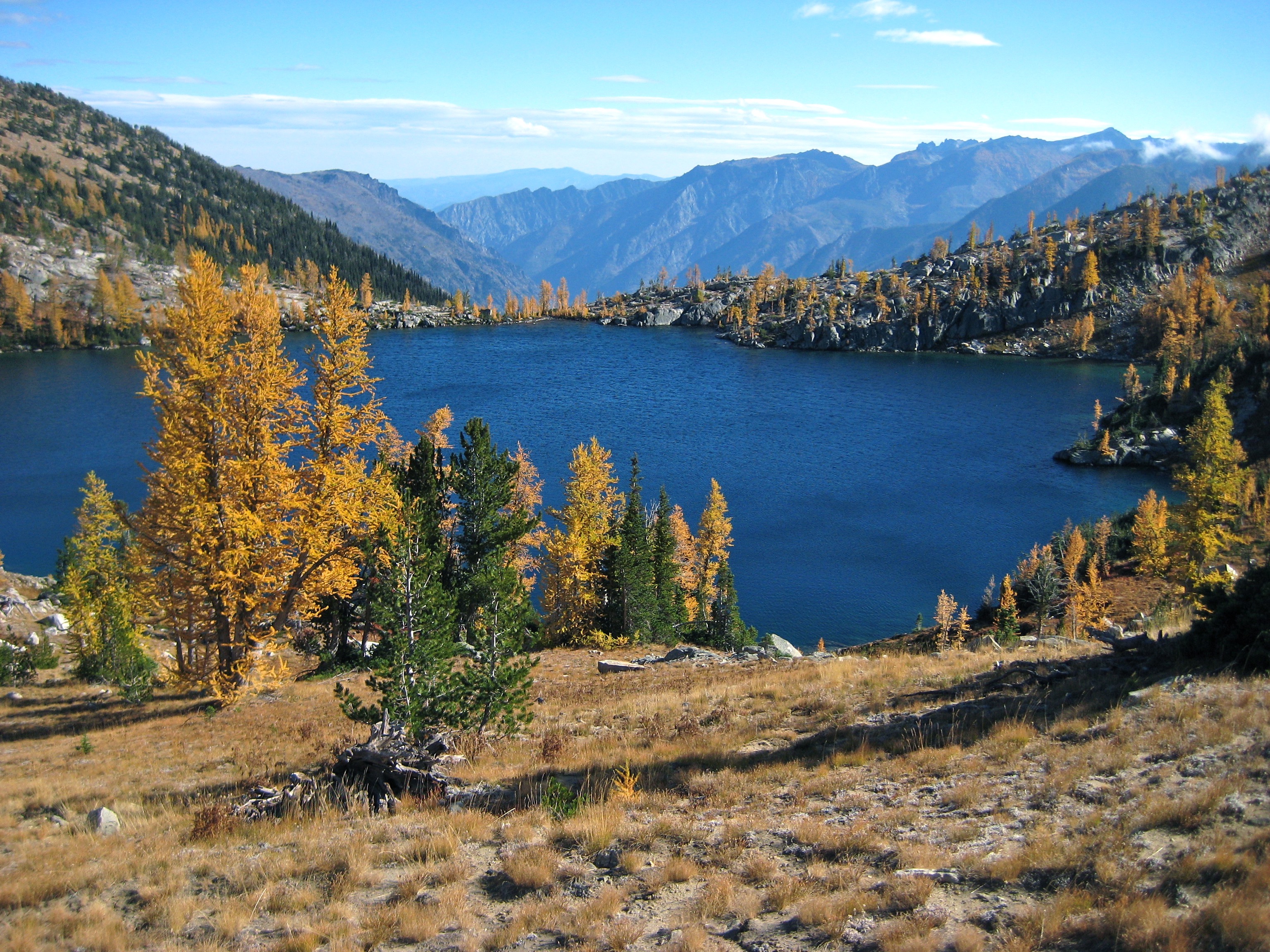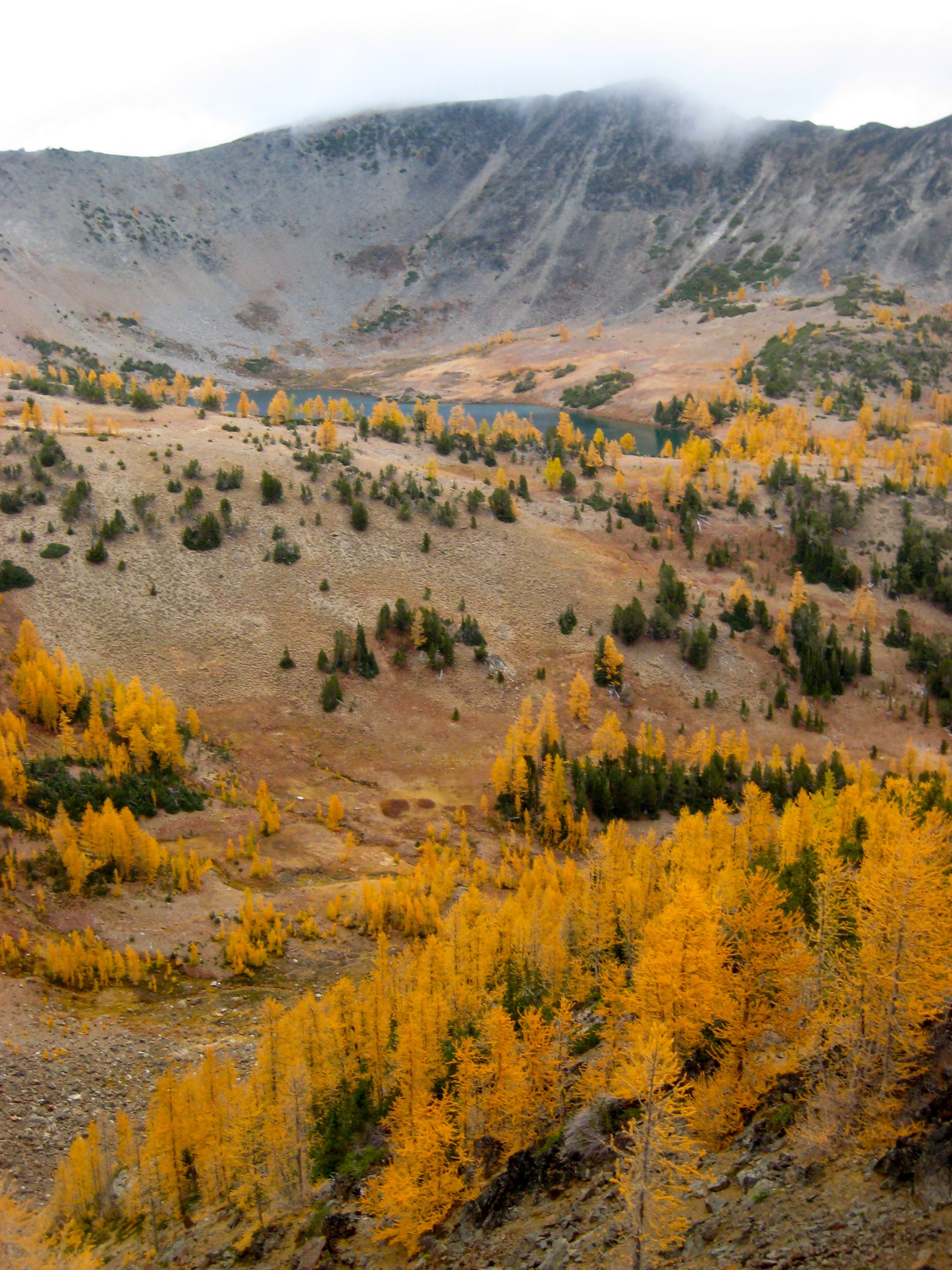 The night had been crystal clear, and we found a thin layer of frost coating our camp in the morning.  Our last several hours of the trip was spent hiking down the nose of Icicle Ridge amid yellow and red foliage.  The dozens of day-hikers we encountered on the lower trail signaled the end of our marvelous journey from larch country to lederhosen country.