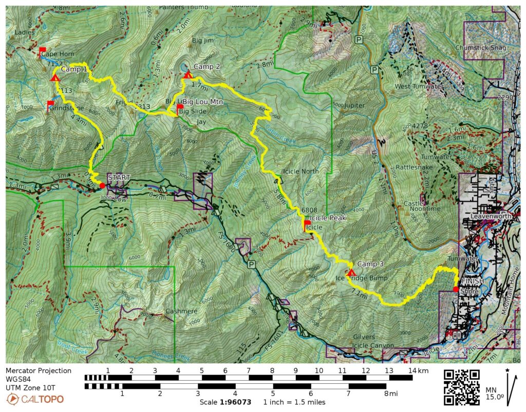 Icicle Ridge Traverse 2015 Route Overview Map