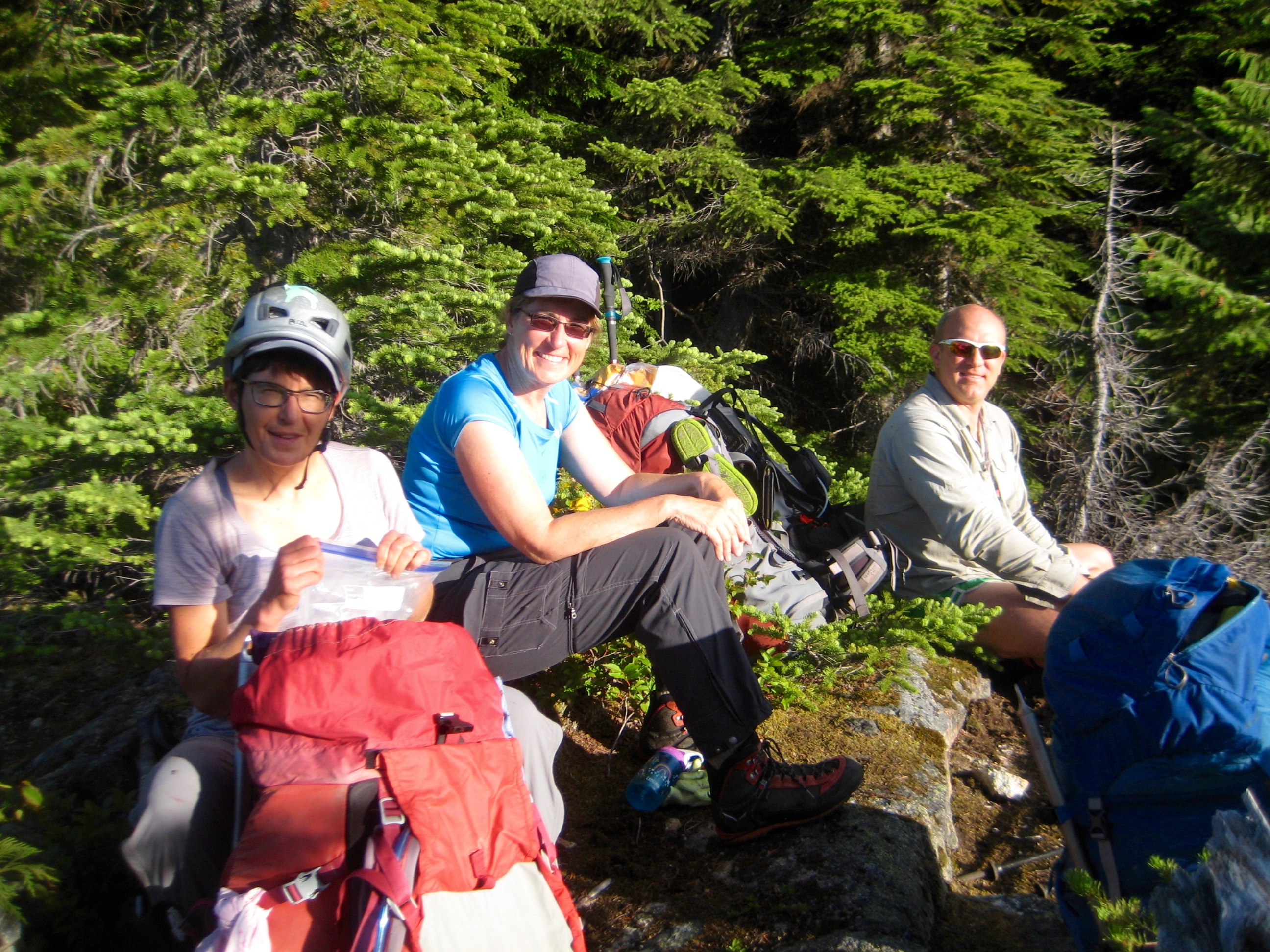 We returned to camp (2.4 hours + 1100 feet RT), where Kevin was awake and well-rested. After everyone packed up, we said goodbye to Lisa; her plan had been to complete only the Inspiration Traverse, so she headed southward to the Eldorado Creek climber’s path and her waiting car at the Cascade River Road.