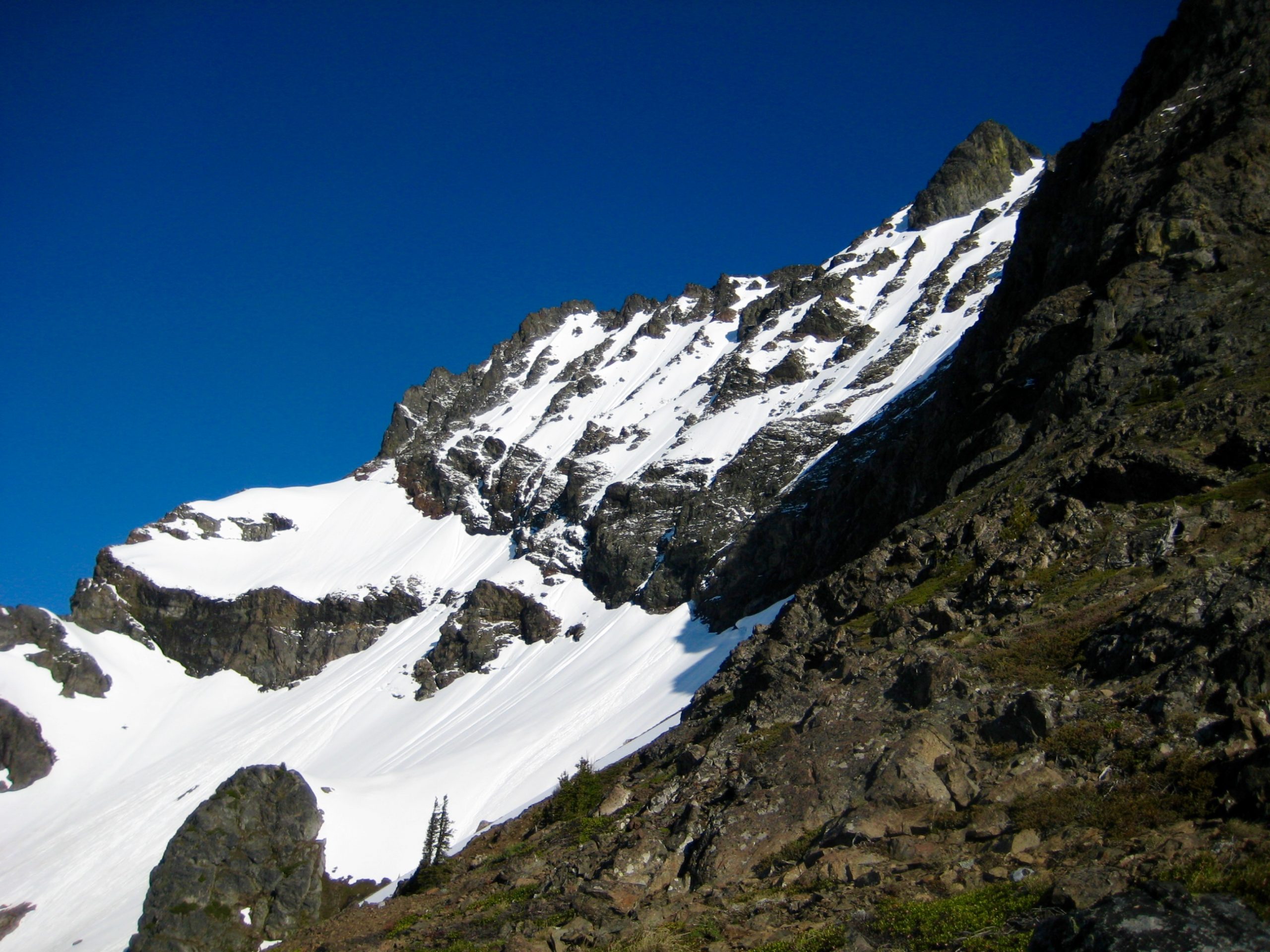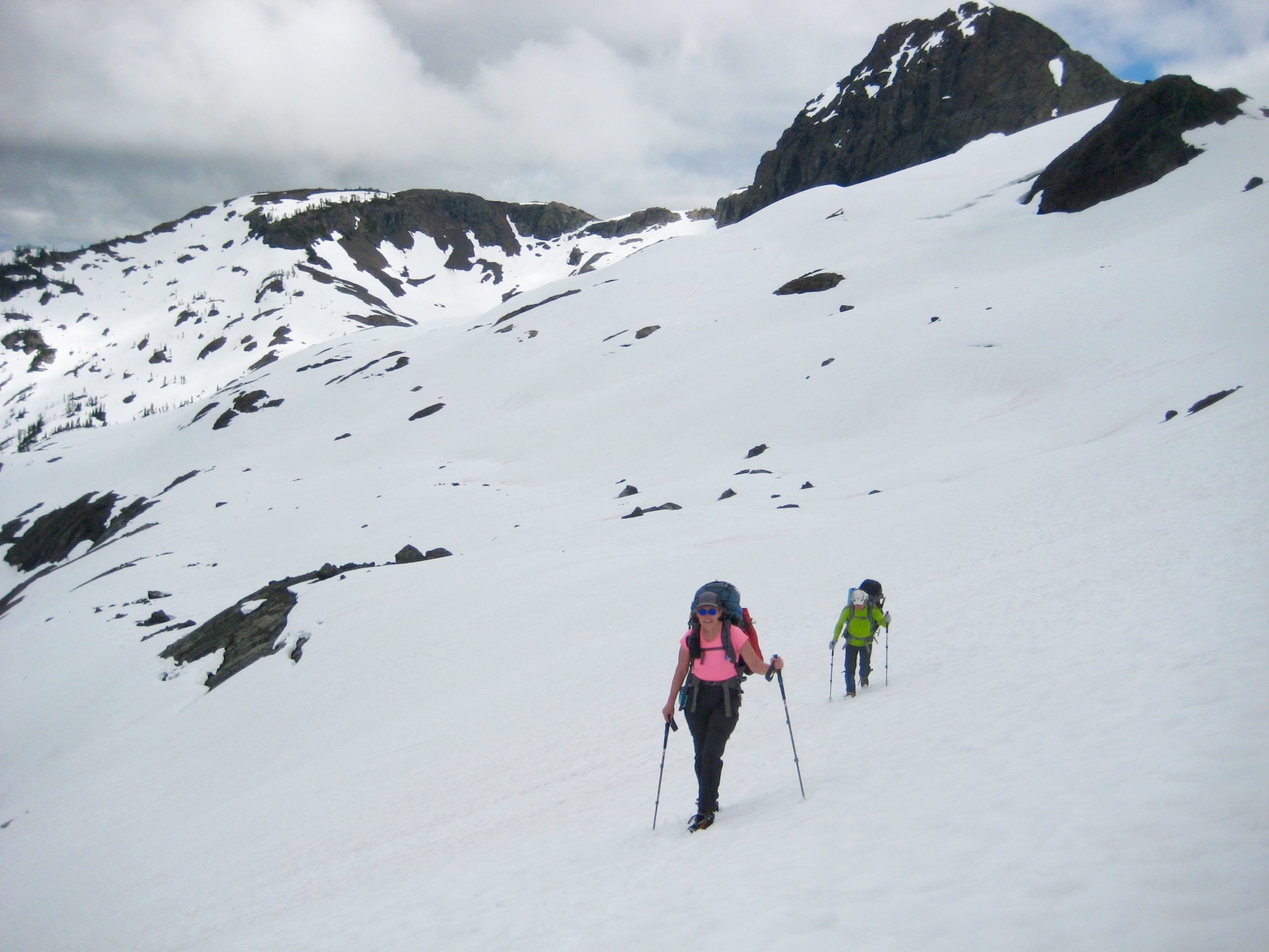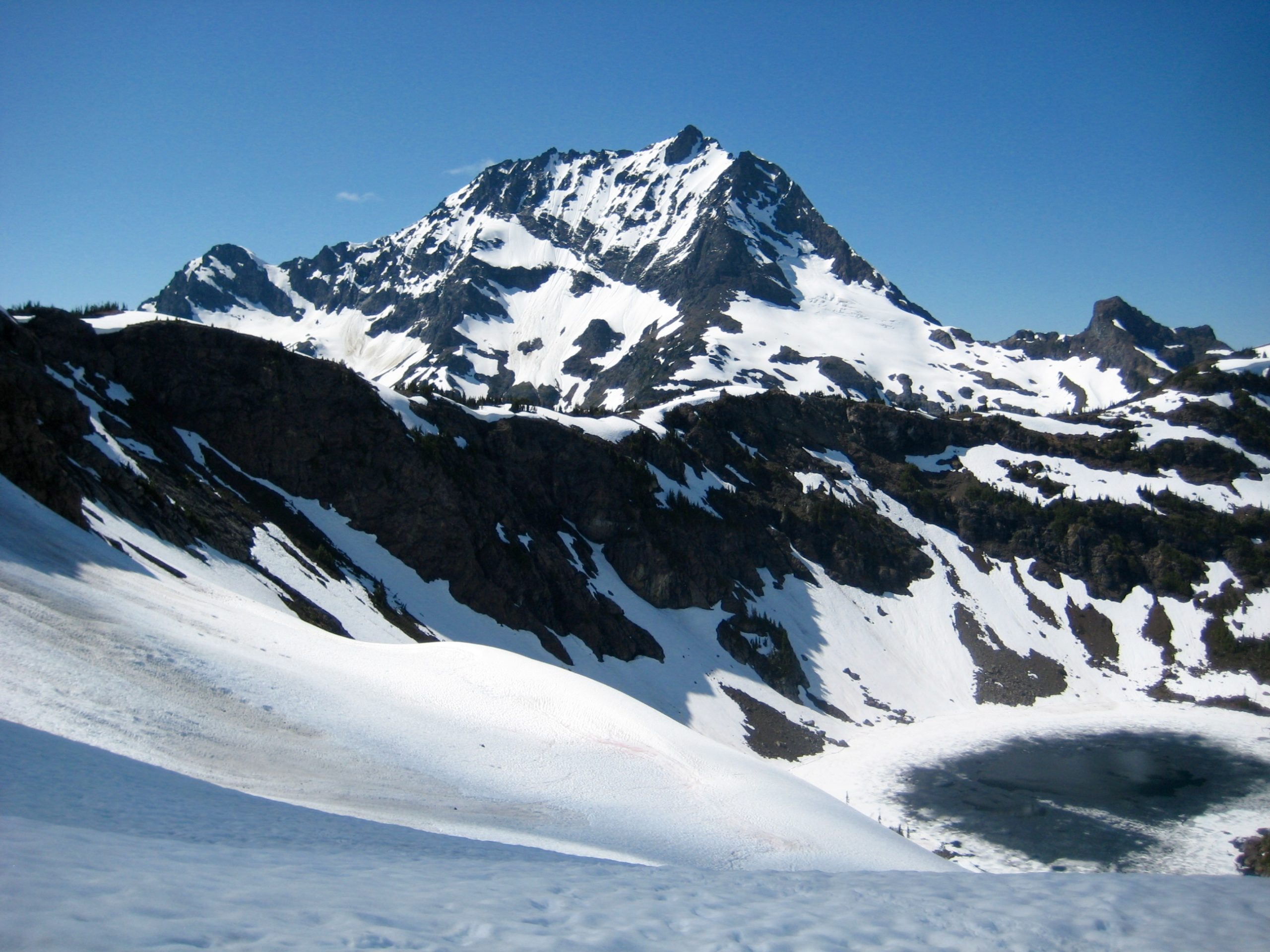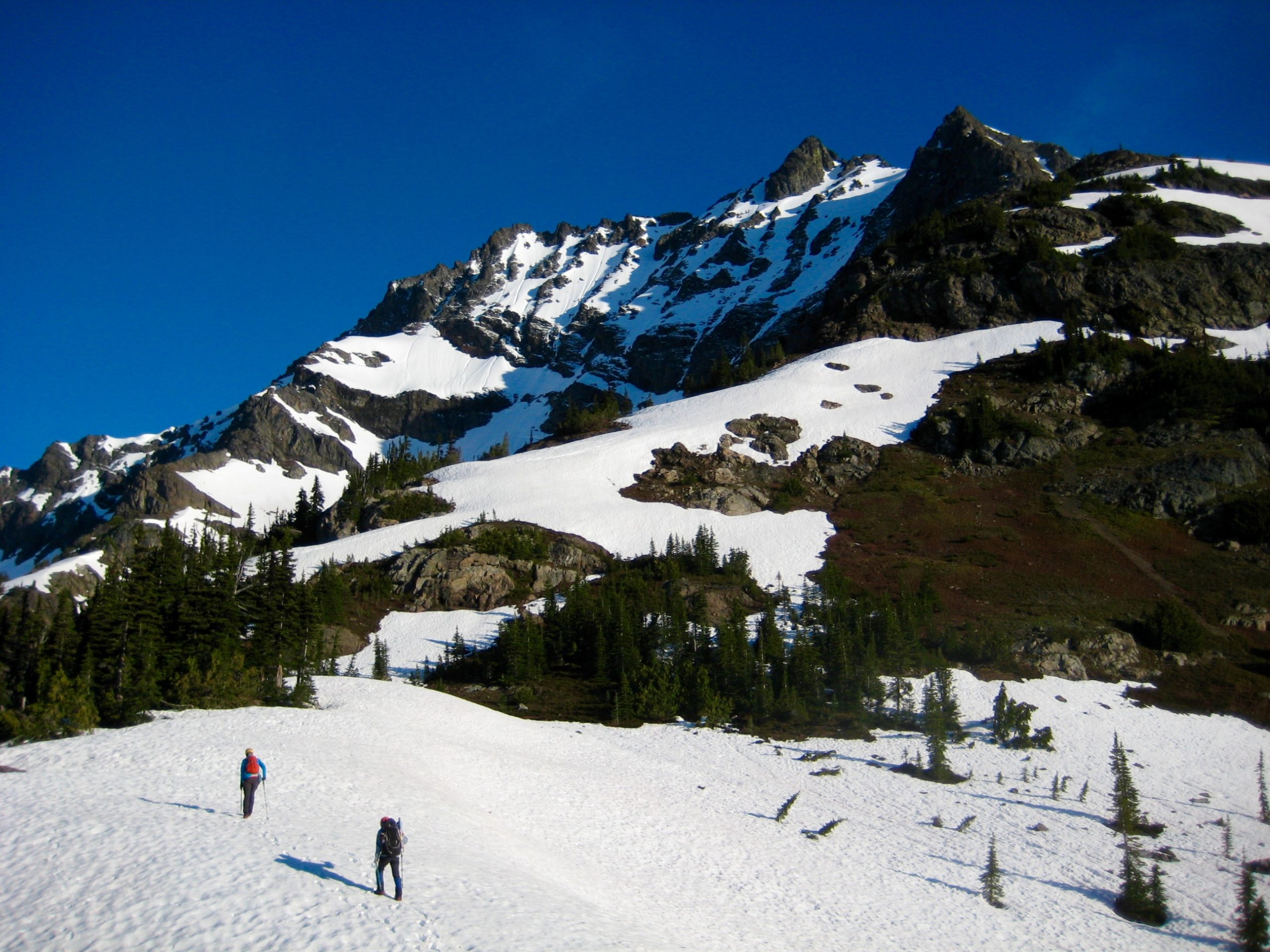 George and Eileen and I spent Independence Day Weekend in the Jerry Lakes area between Crater Mountain and Jack Mountain. What we encountered was, in short, really bad trail conditions and really good snow conditions—but not what we needed for a climb of the Skagit King.