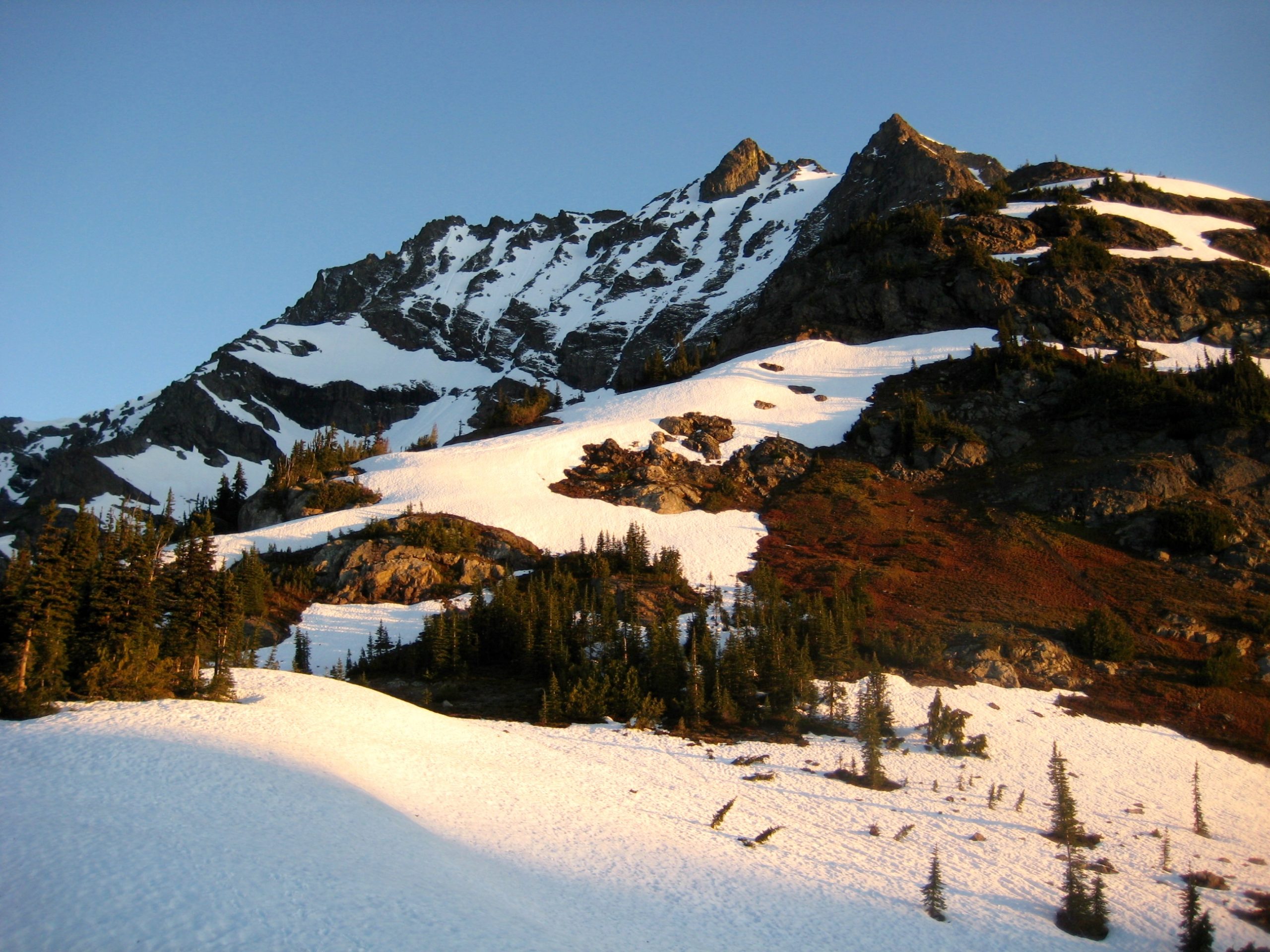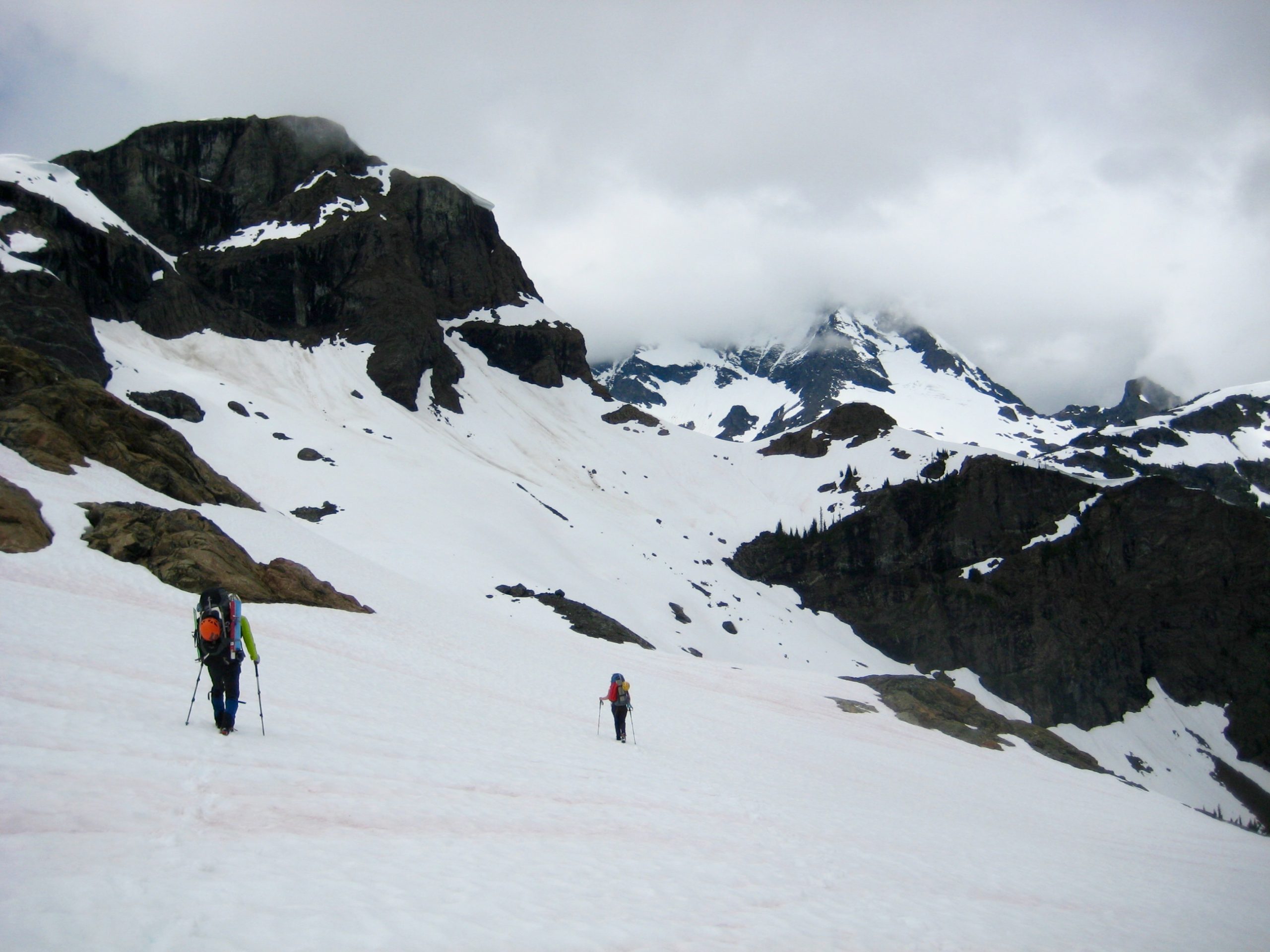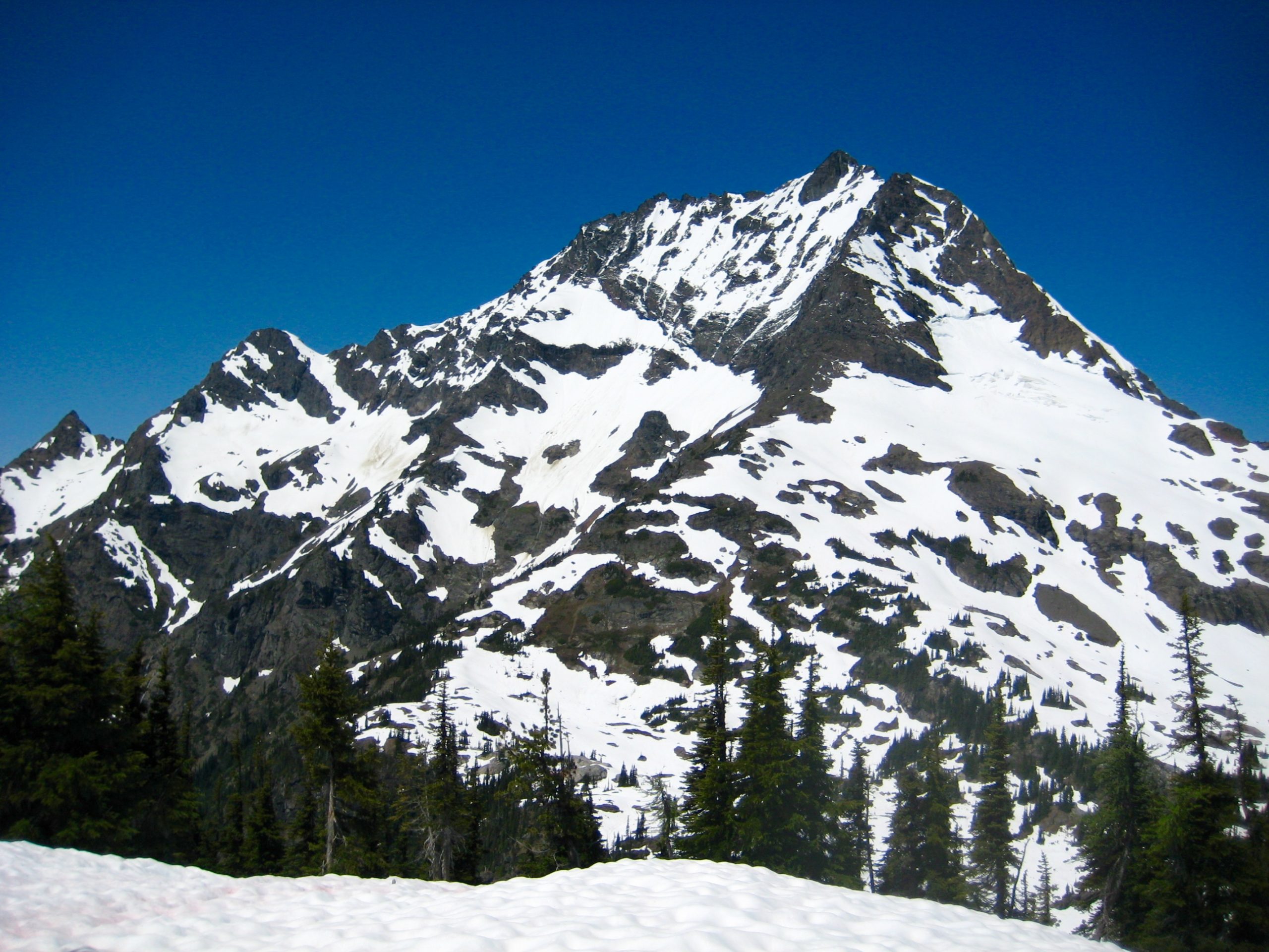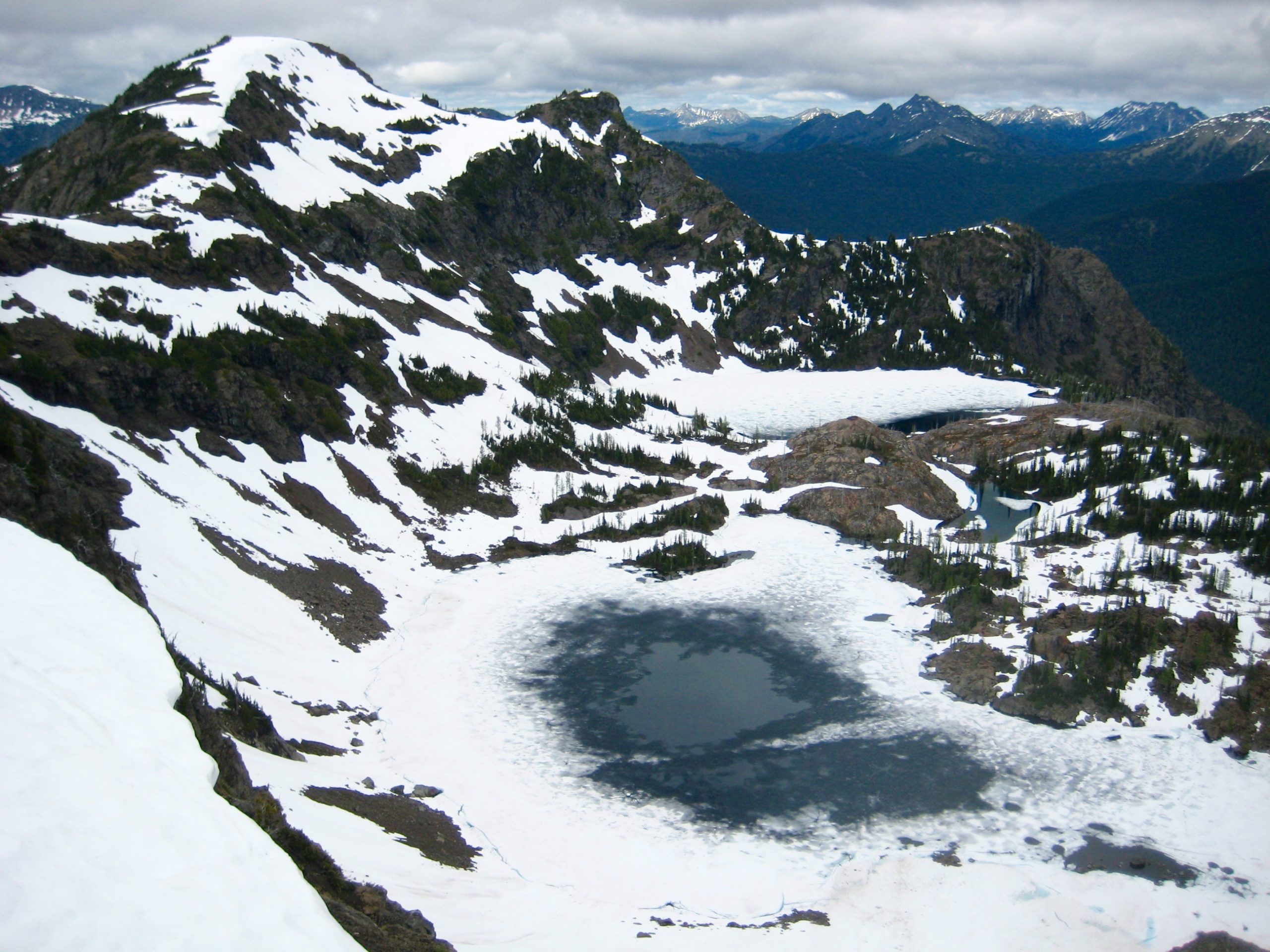 George and Eileen and I spent Independence Day Weekend in the Jerry Lakes area between Crater Mountain and Jack Mountain. What we encountered was, in short, really bad trail conditions and really good snow conditions—but not what we needed for a climb of the Skagit King.