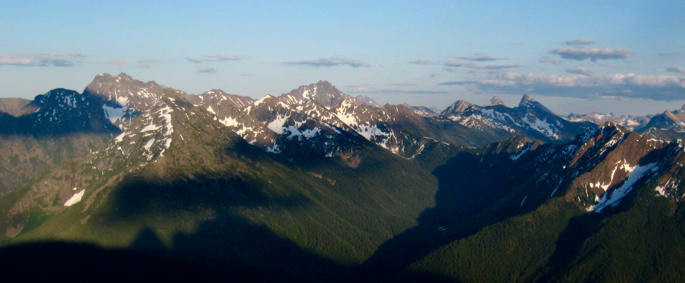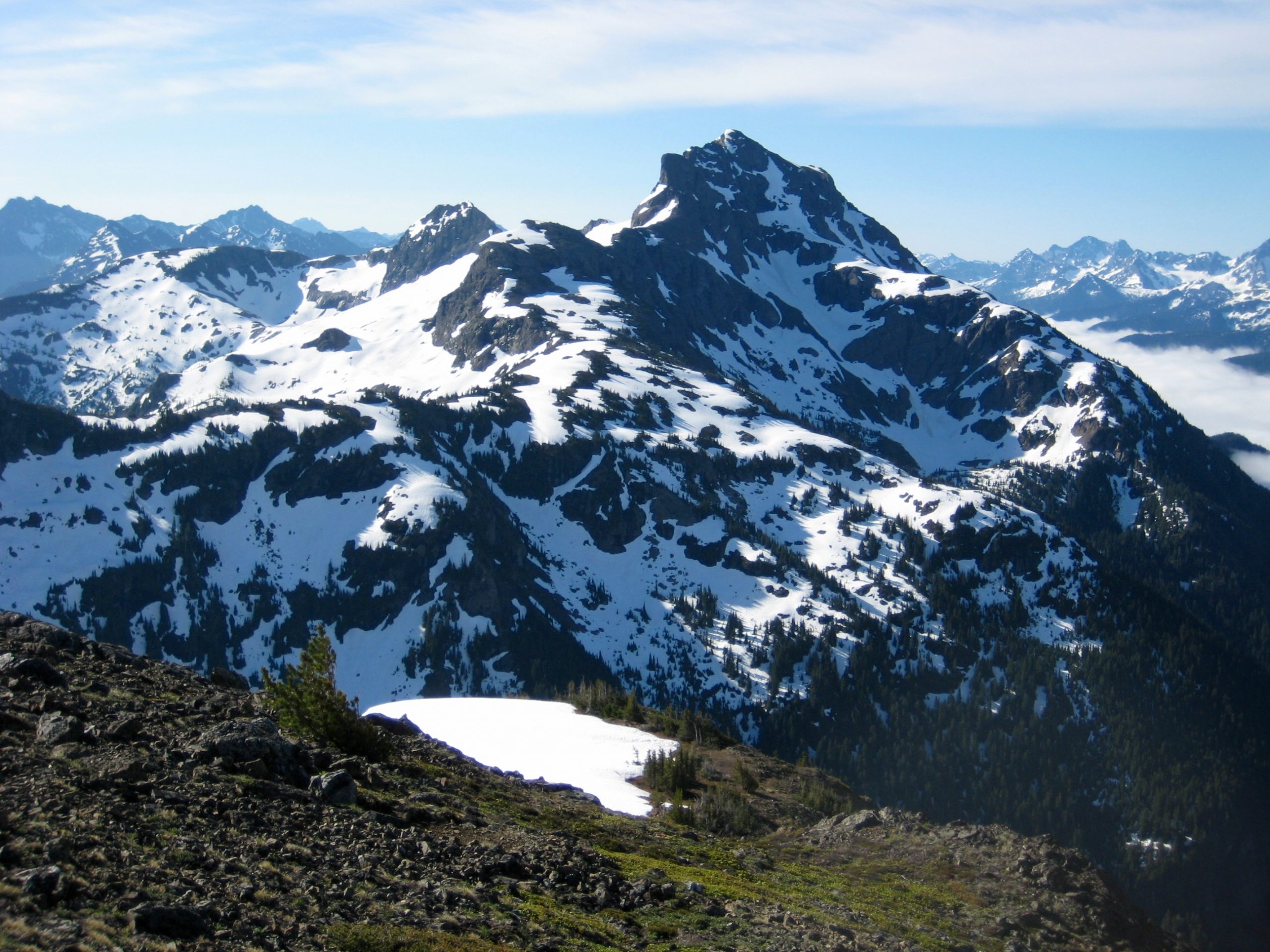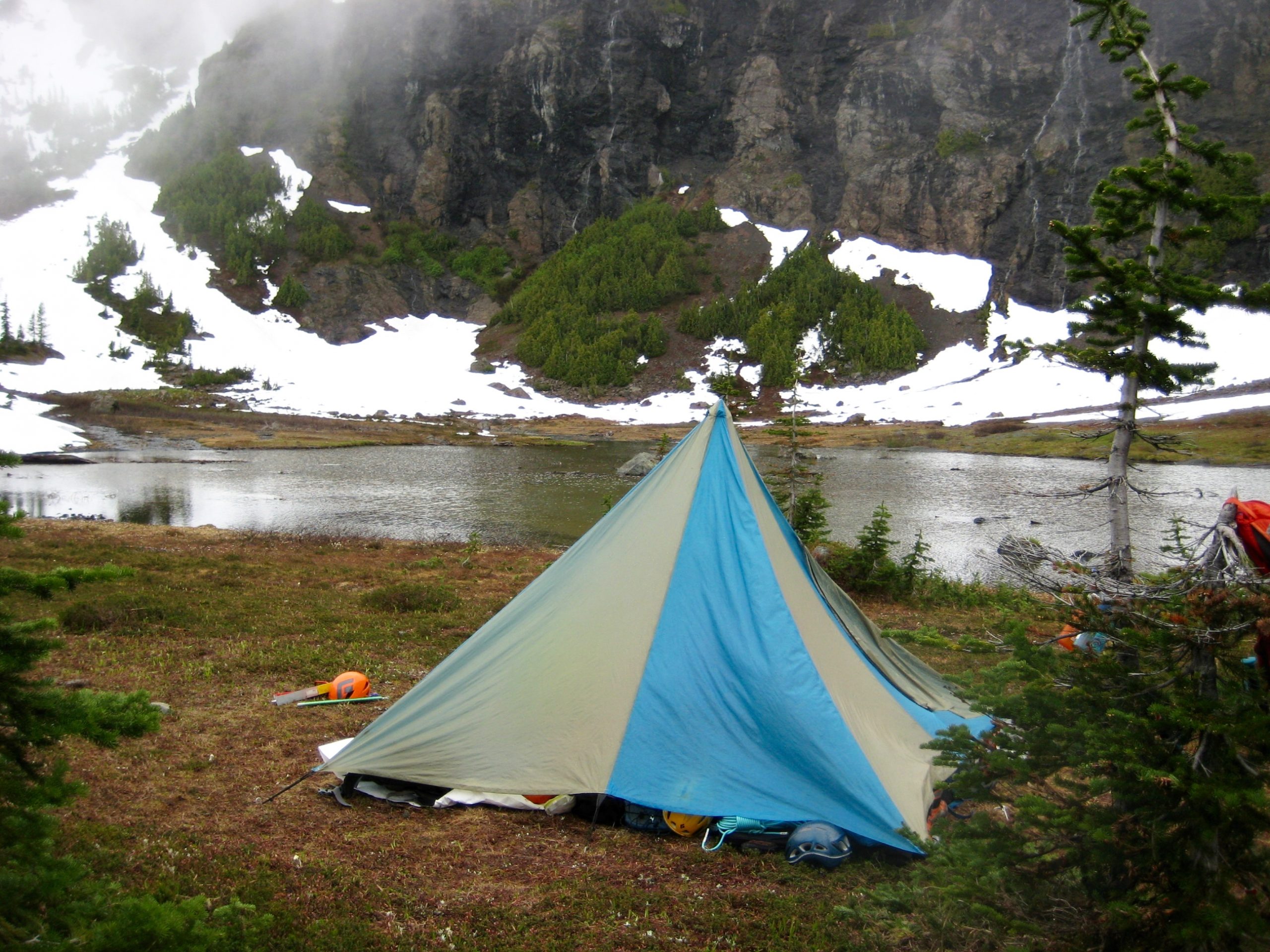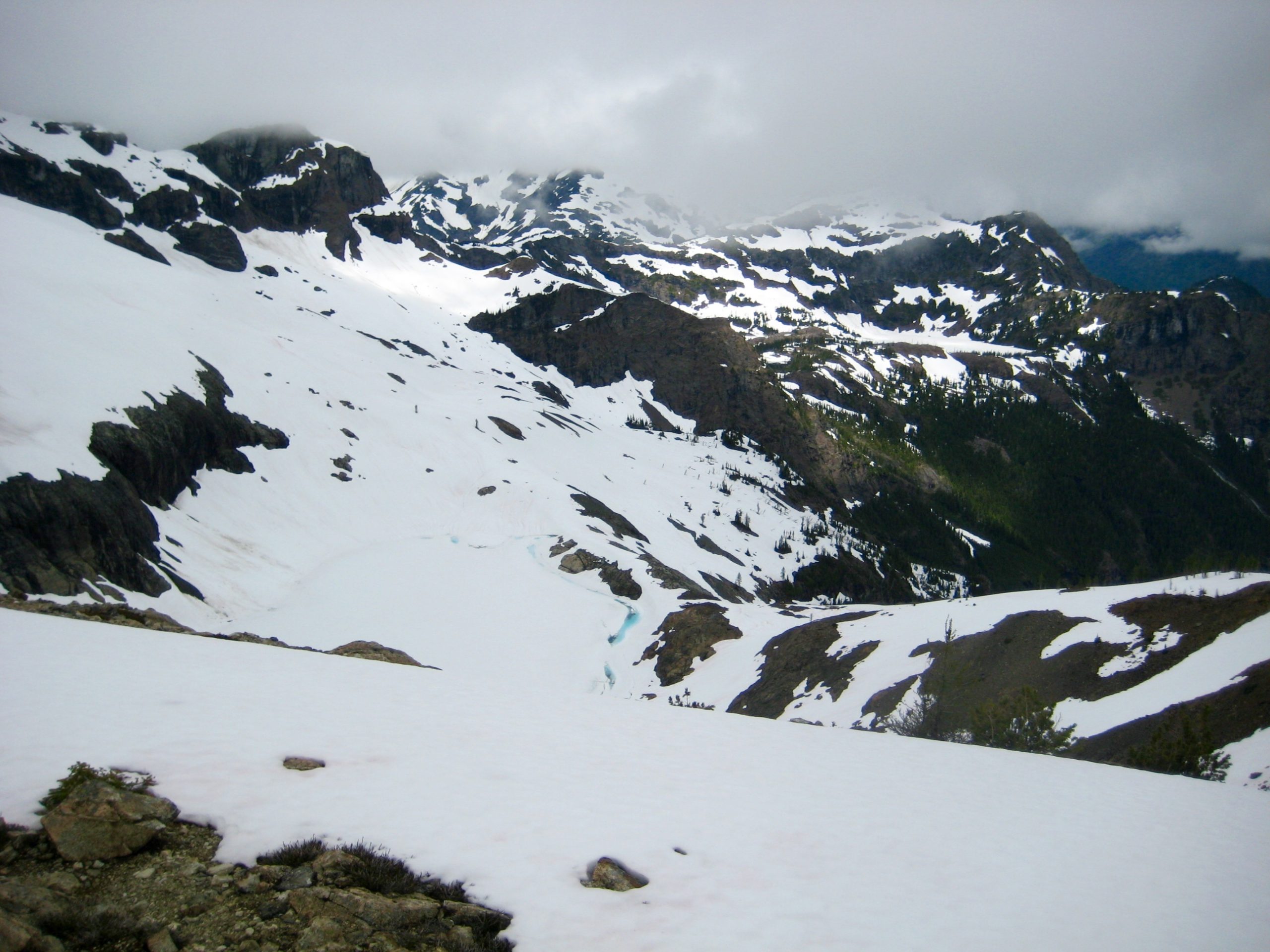 George and Eileen and I spent Independence Day Weekend in the Jerry Lakes area between Crater Mountain and Jack Mountain. What we encountered was, in short, really bad trail conditions and really good snow conditions—but not what we needed for a climb of the Skagit King.