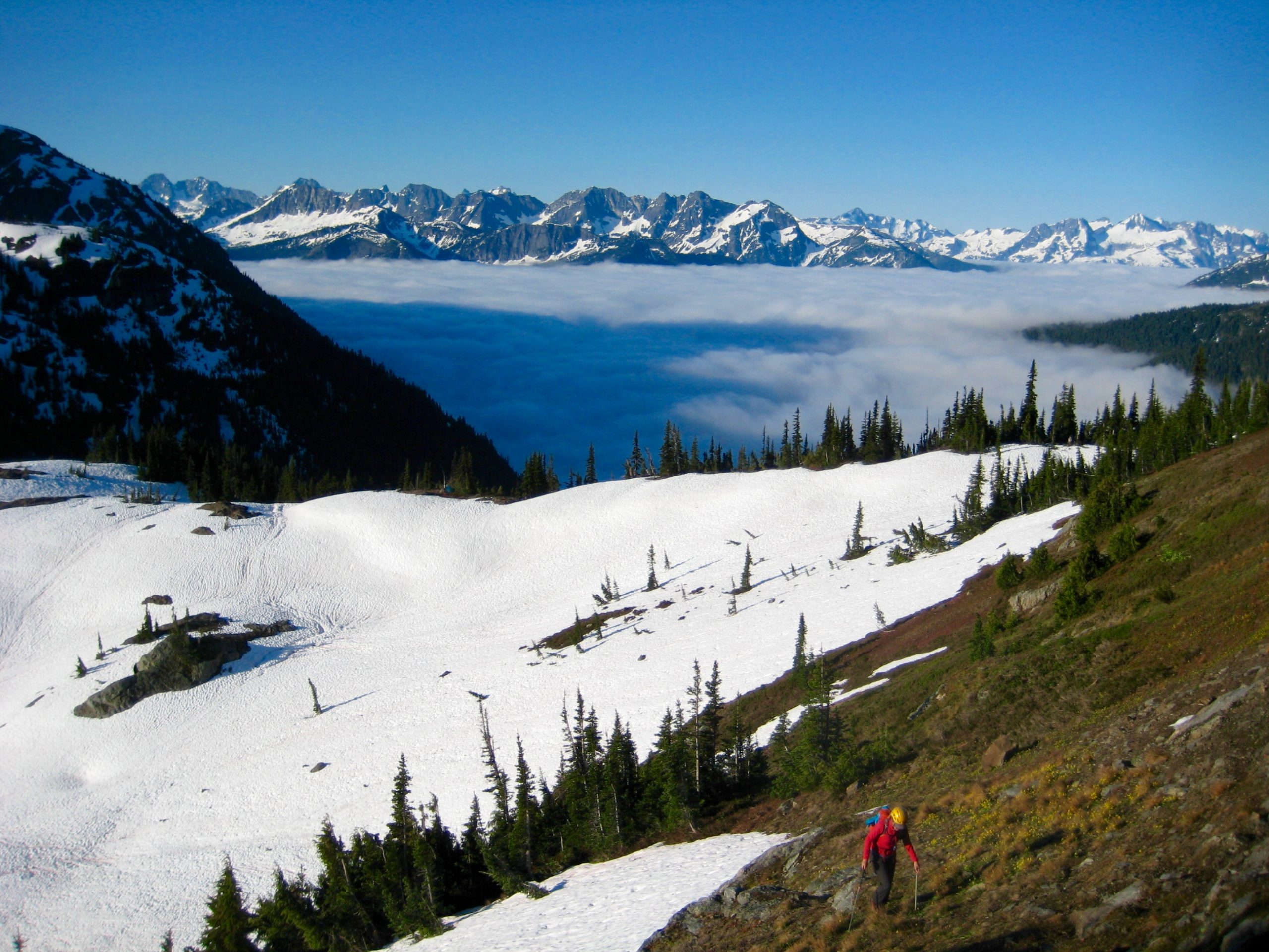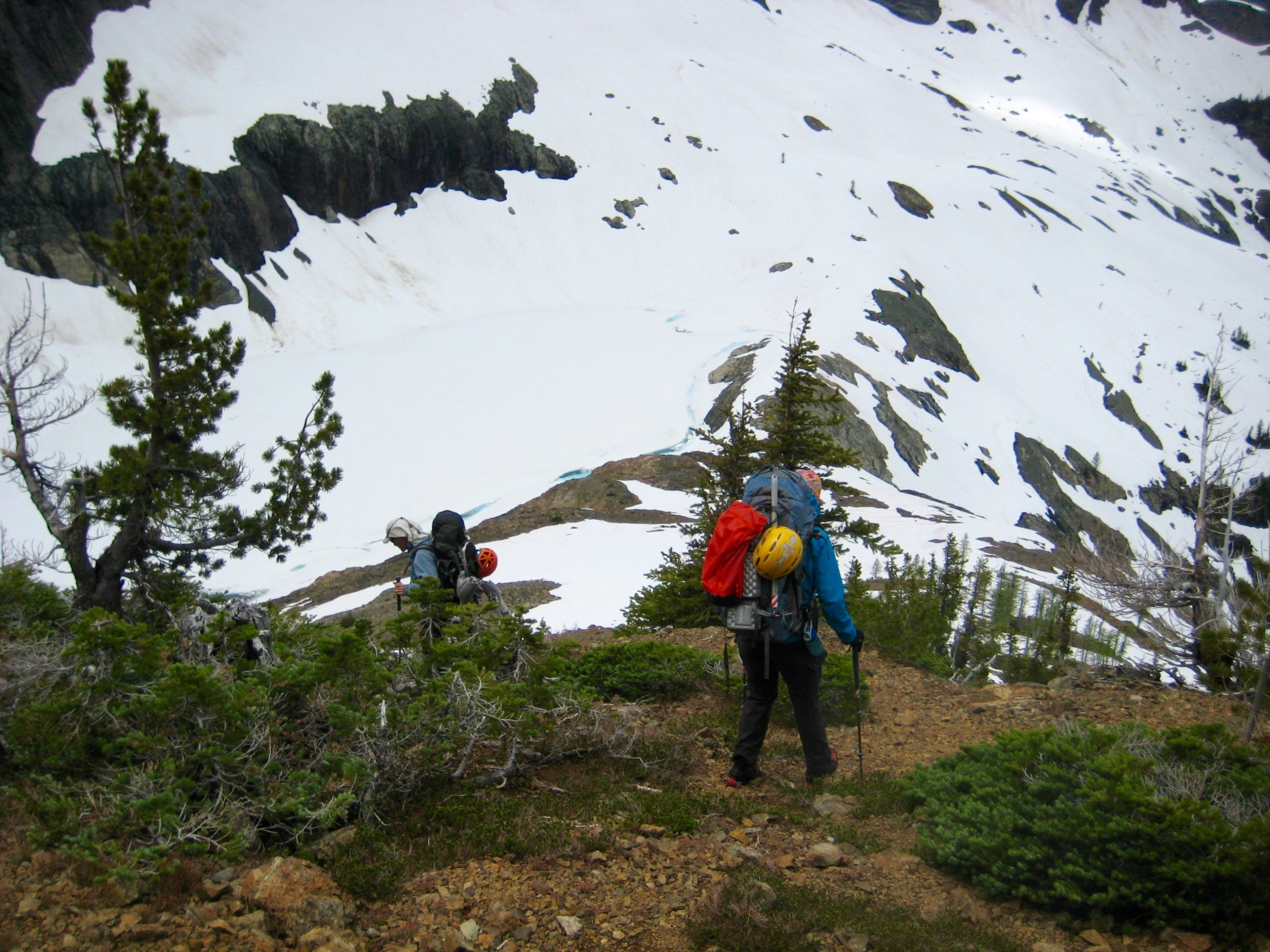 Ascending the ridge above Devil’s Lake turned into a slightly comical episode when we encountered sketchy Class 3 rock immediately below the top. George scrambled up without his pack to establish a fixed line for us. It seemed as though nothing was going to be simple and easy on this trip!