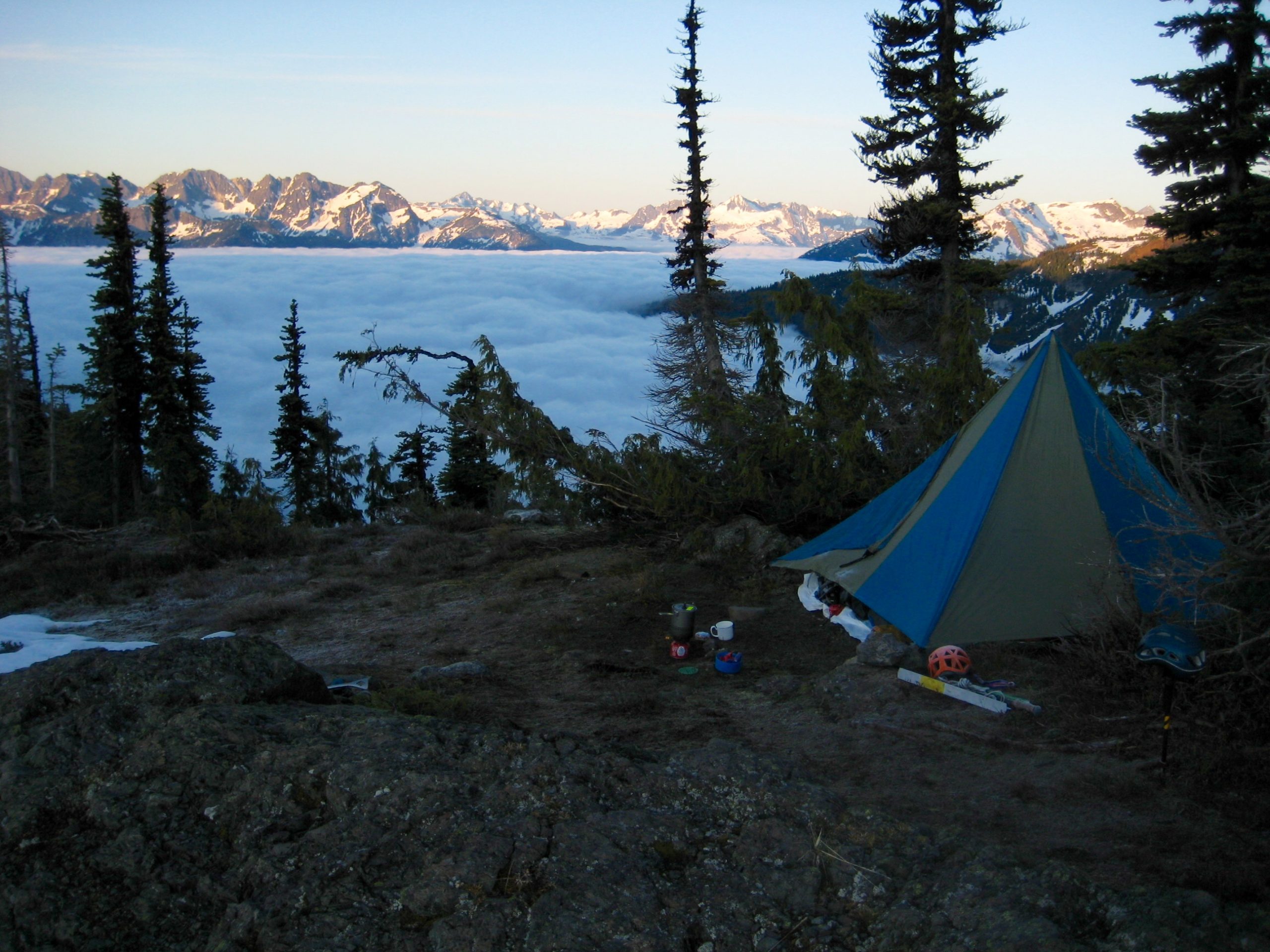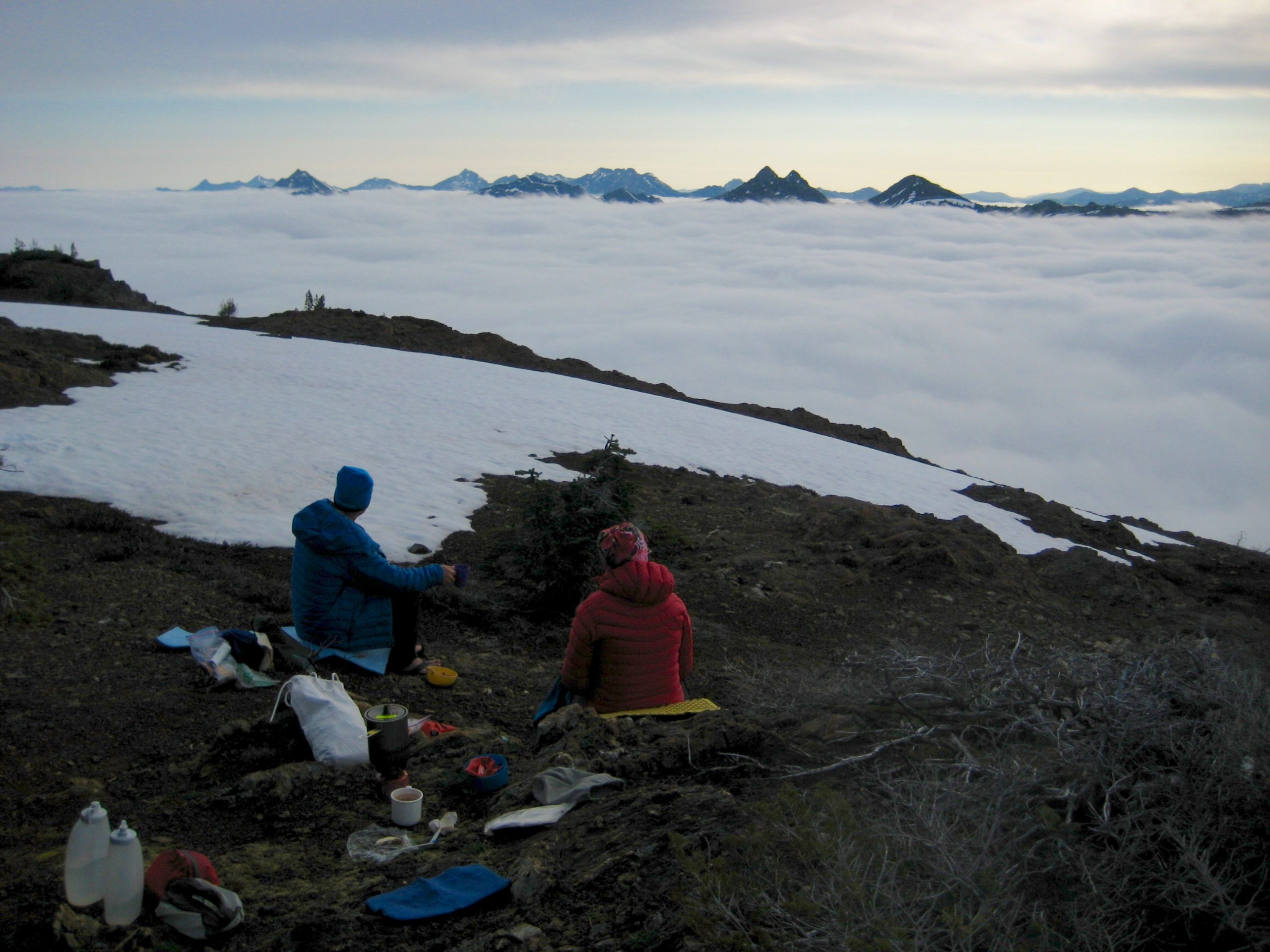 It had been a perfectly calm night on the summit, and we awoke to fog filling the valley just a few hundred feet below our camp.
