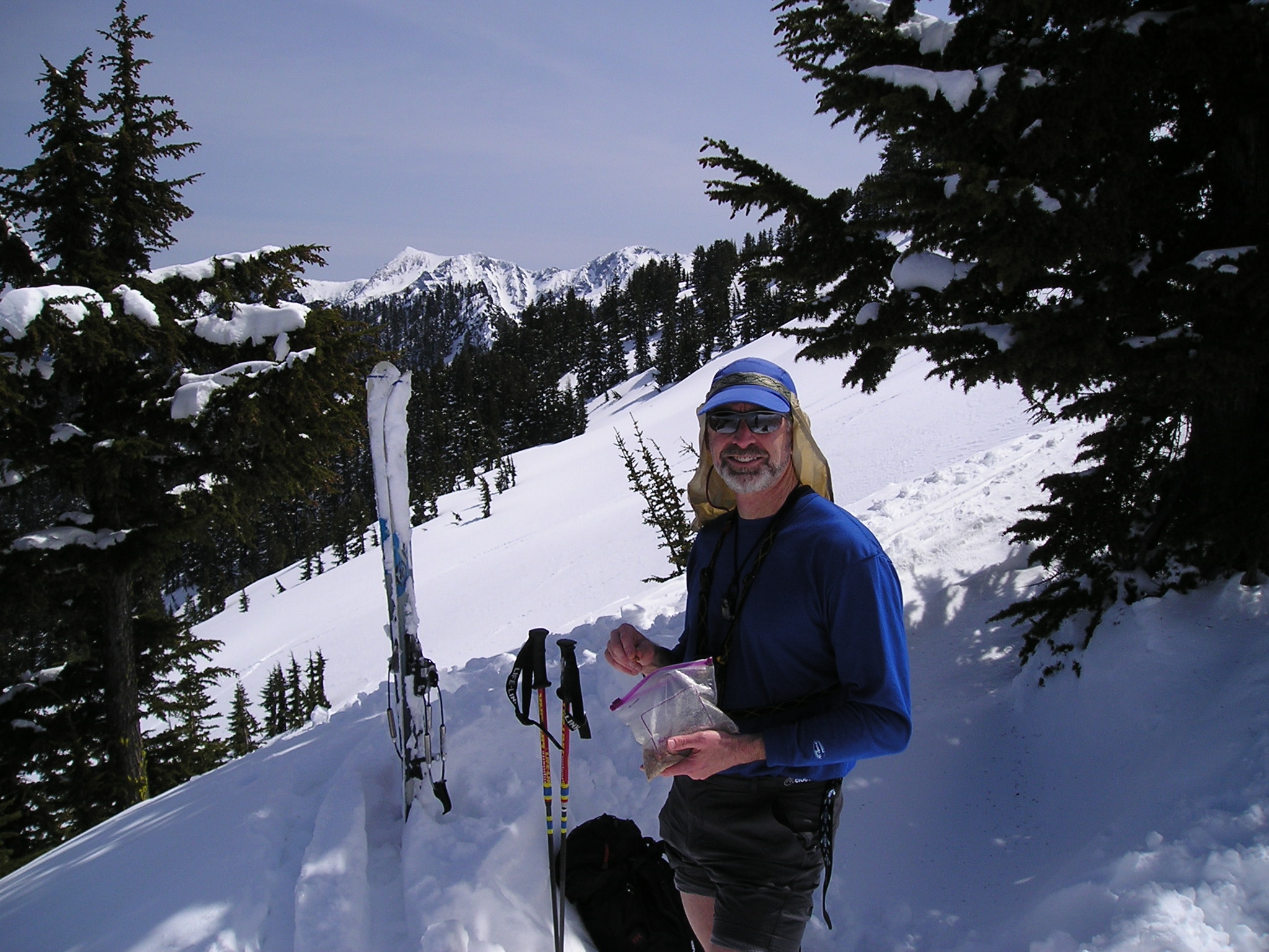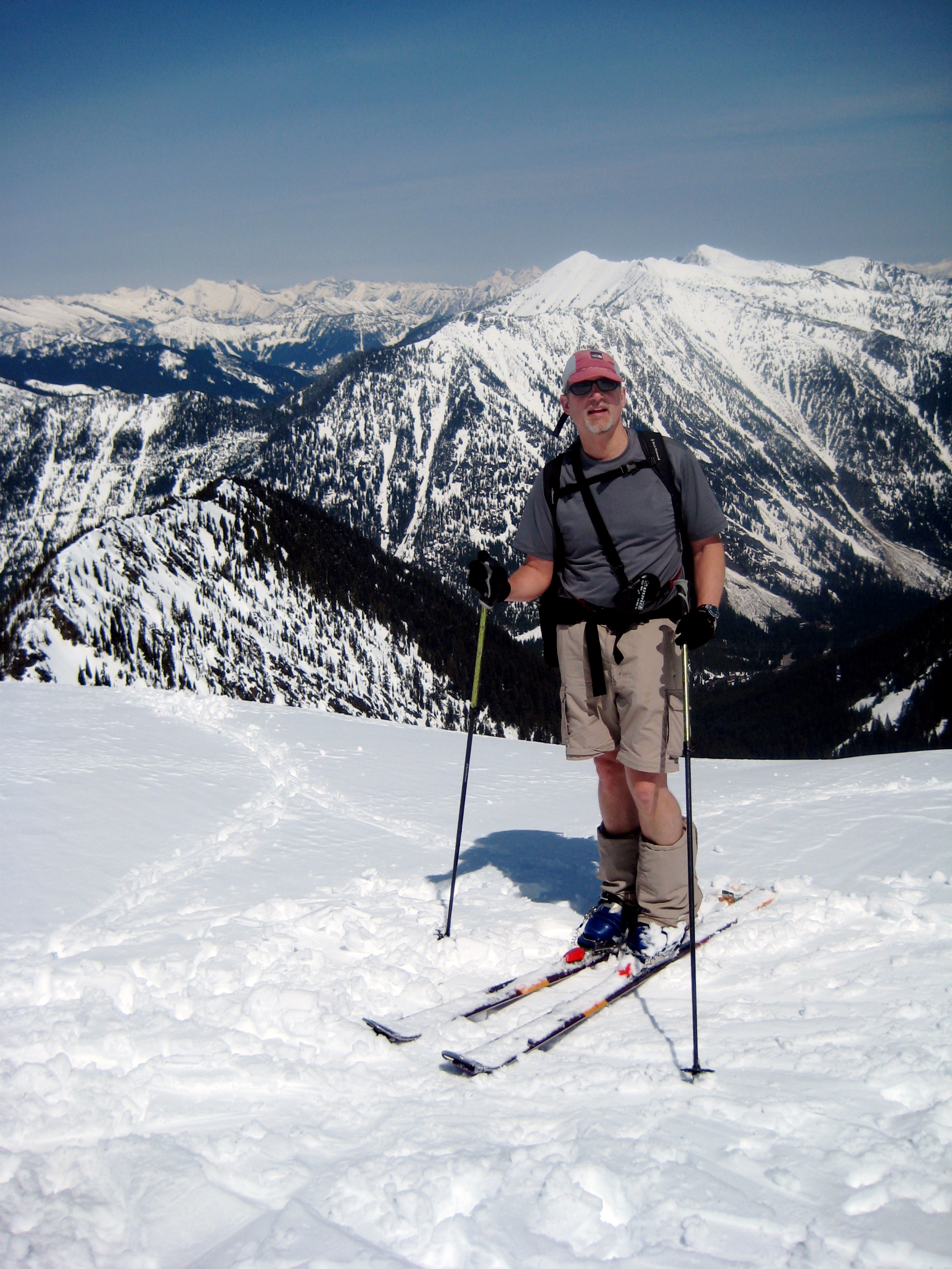 Ski conditions looked marginal above the ridge crest, so we didn’t bother going up to the false summit (let alone to the true summit, which is a pretty exposed climb).