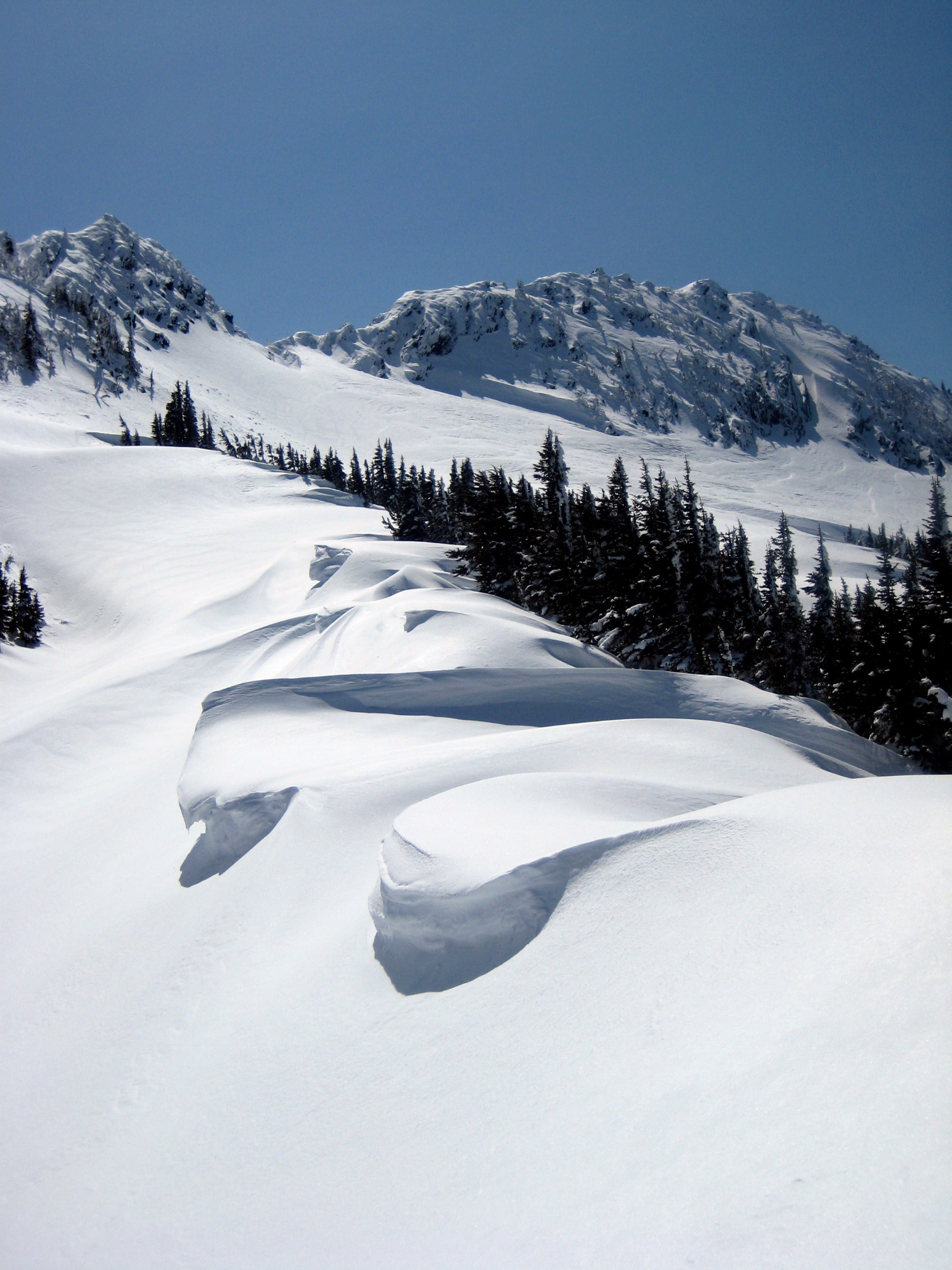 Conditions did look pretty good on the big north slopes: 8 inches of fresh (albeit heavy) snow over a firm base. However, we quickly discovered that conditions were in fact EXCELLENT.
