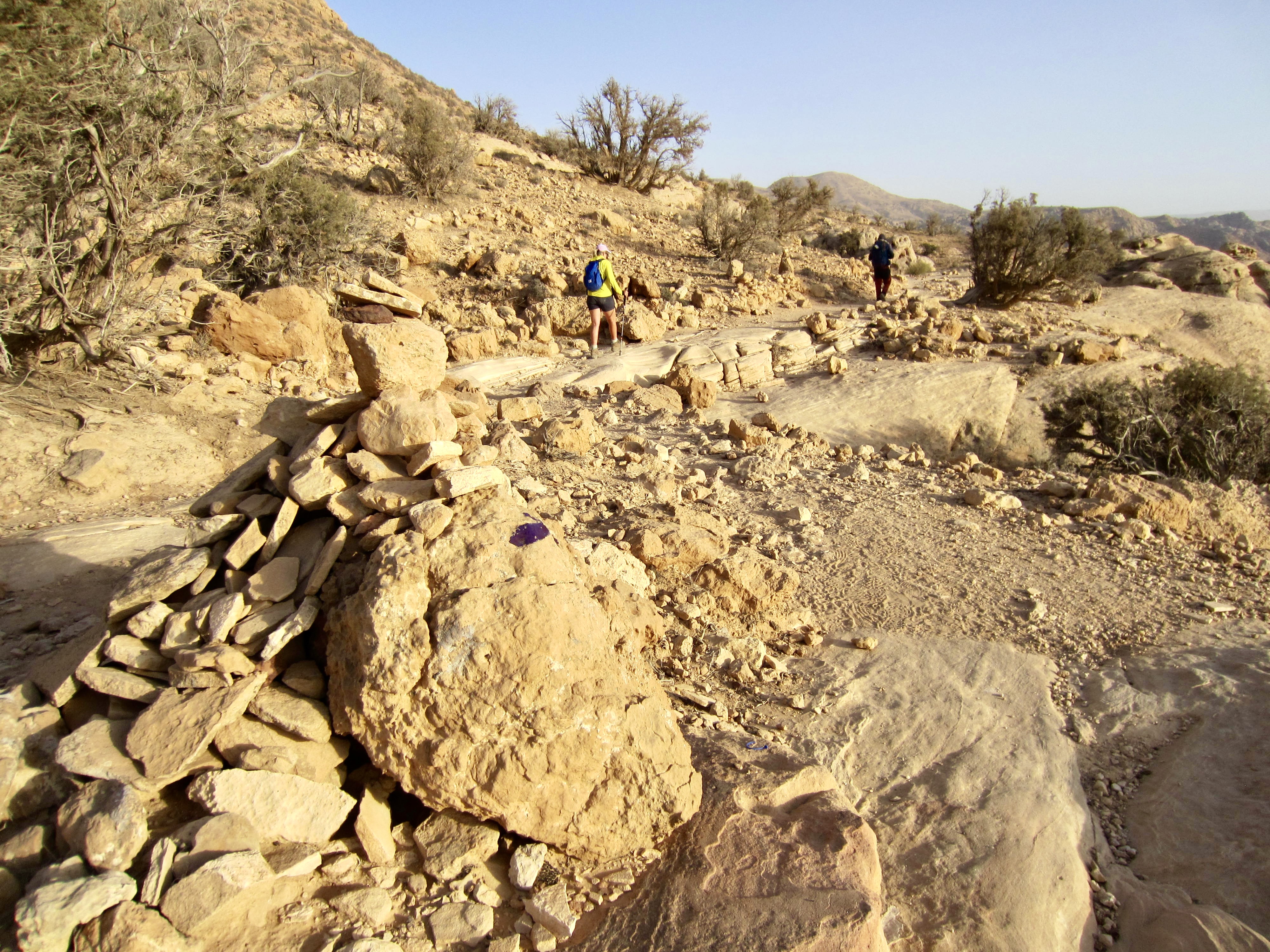 Future trekkers should be aware that the Jordan Trail is not a well-defined and straight-forward hiking route. It actually comprises numerous trail and road segments that have been cartographically joined to create a continuous route. The prevalence of confusing side trails and the scarcity of directional signs make navigation very difficult. Employing a qualified regional guide, such as Mahmoud, is highly recommended for anyone attempting a multi-day trek on the Jordan Trail.