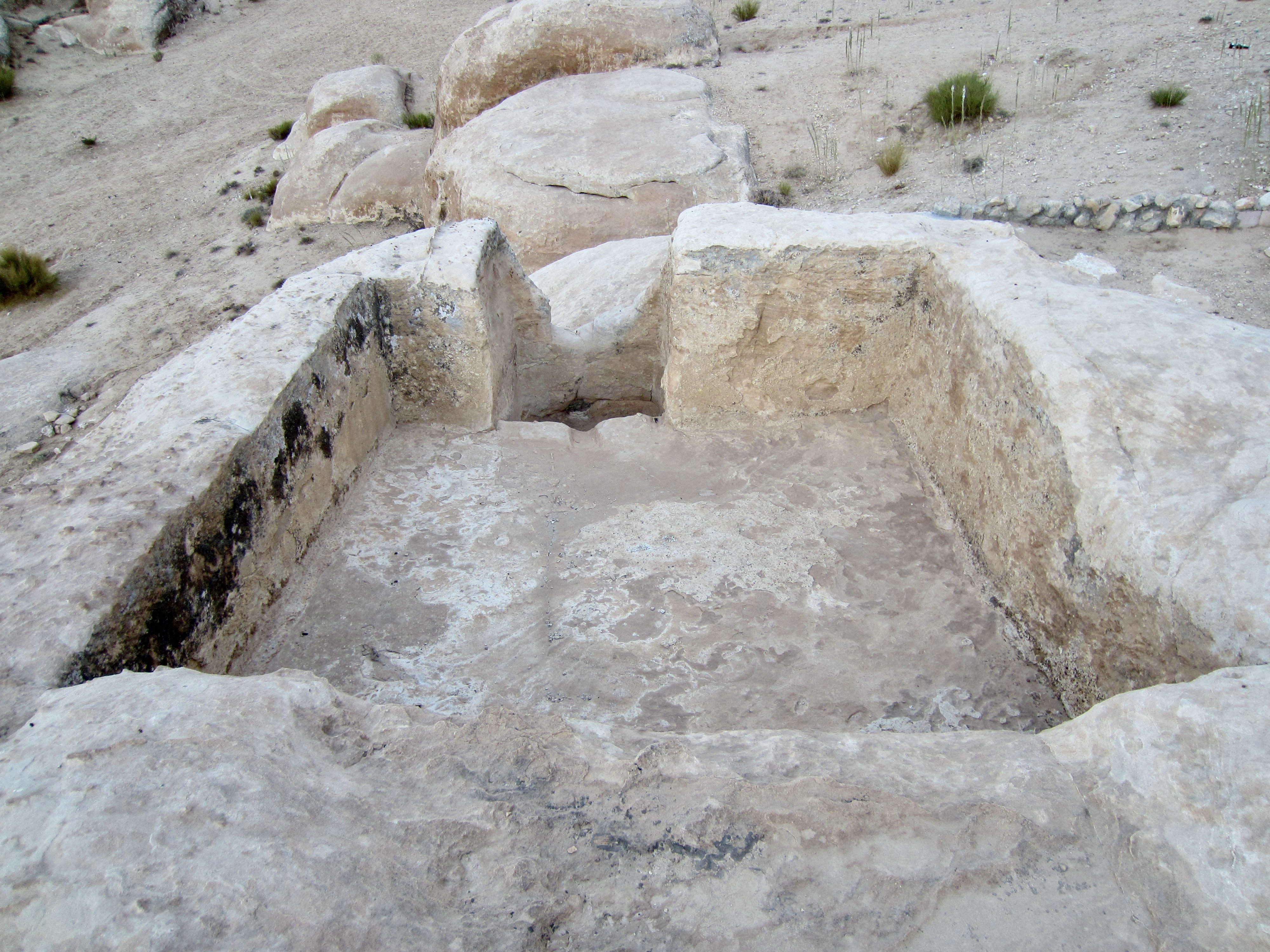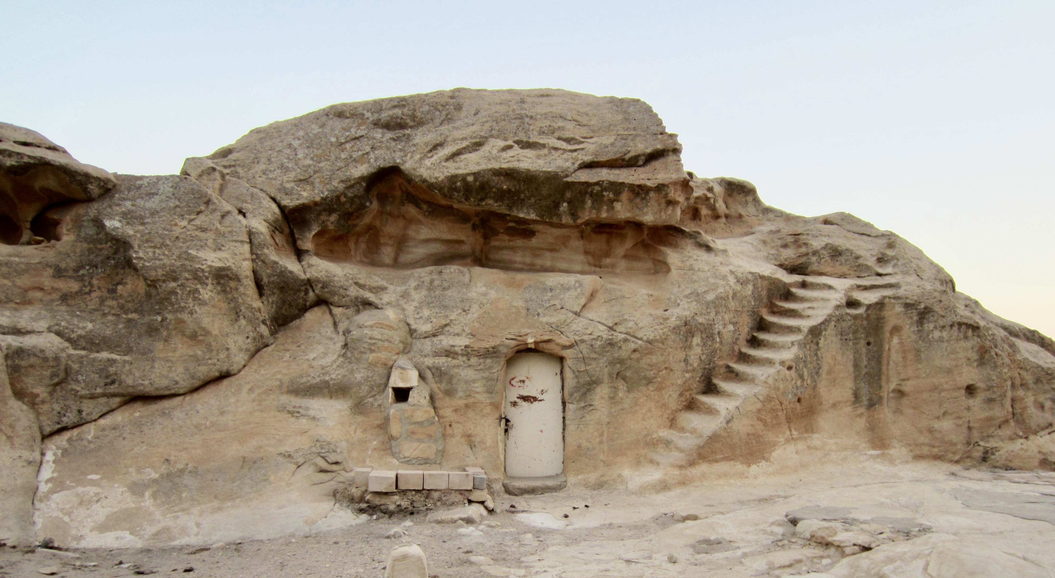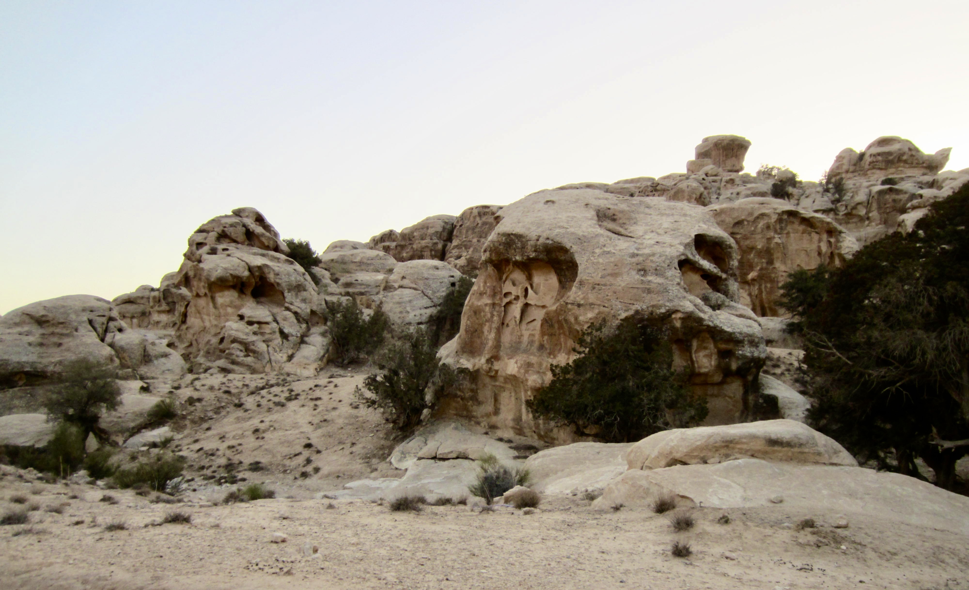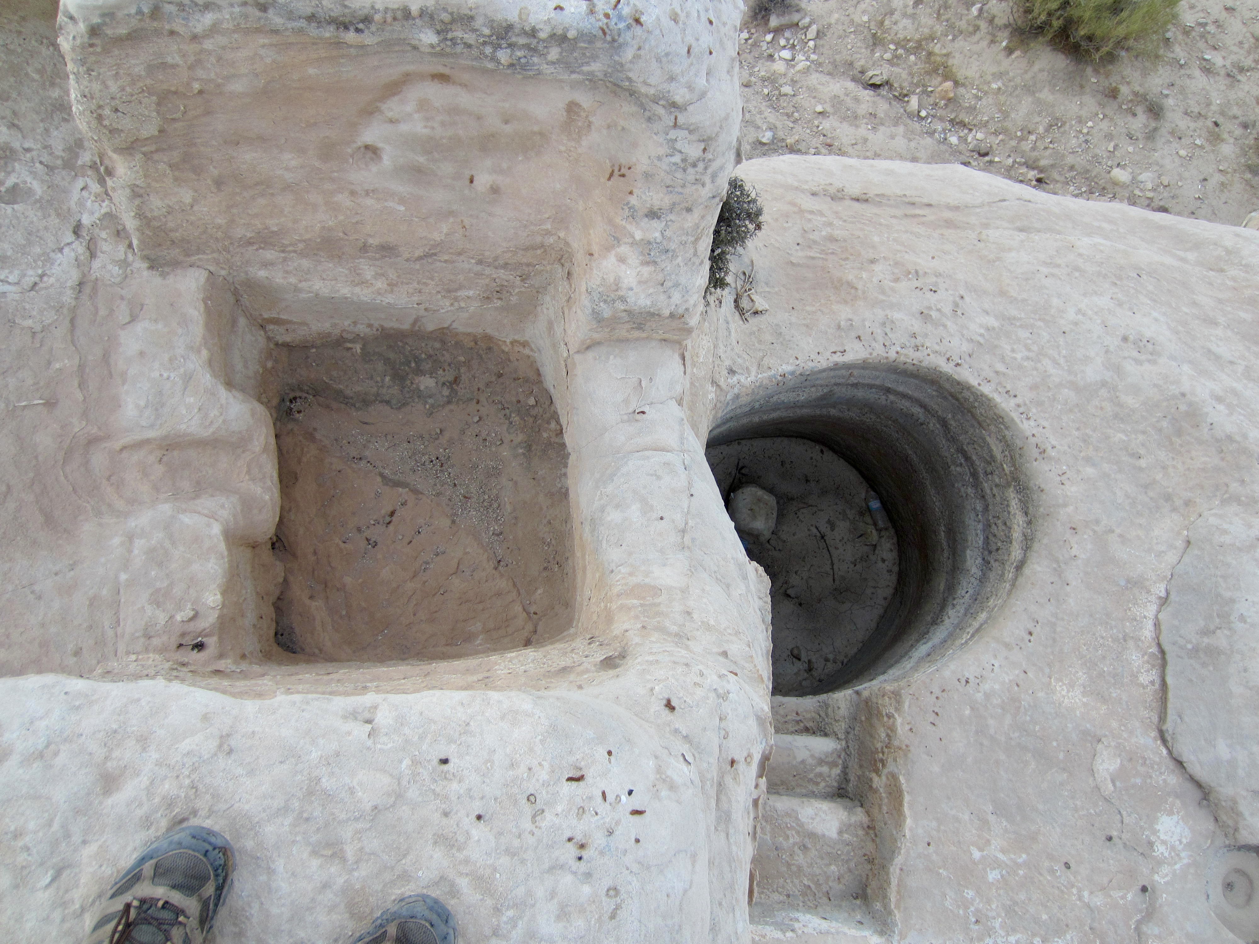 Nearby were several ancient Nabatean caves that have been hollowed out of sandstone outcrops to serve as abodes or storage rooms. Carved into one outcrop is a series of pits that were apparently used for pressing grapes. The early inhabitants were not to be denied their daily vino!