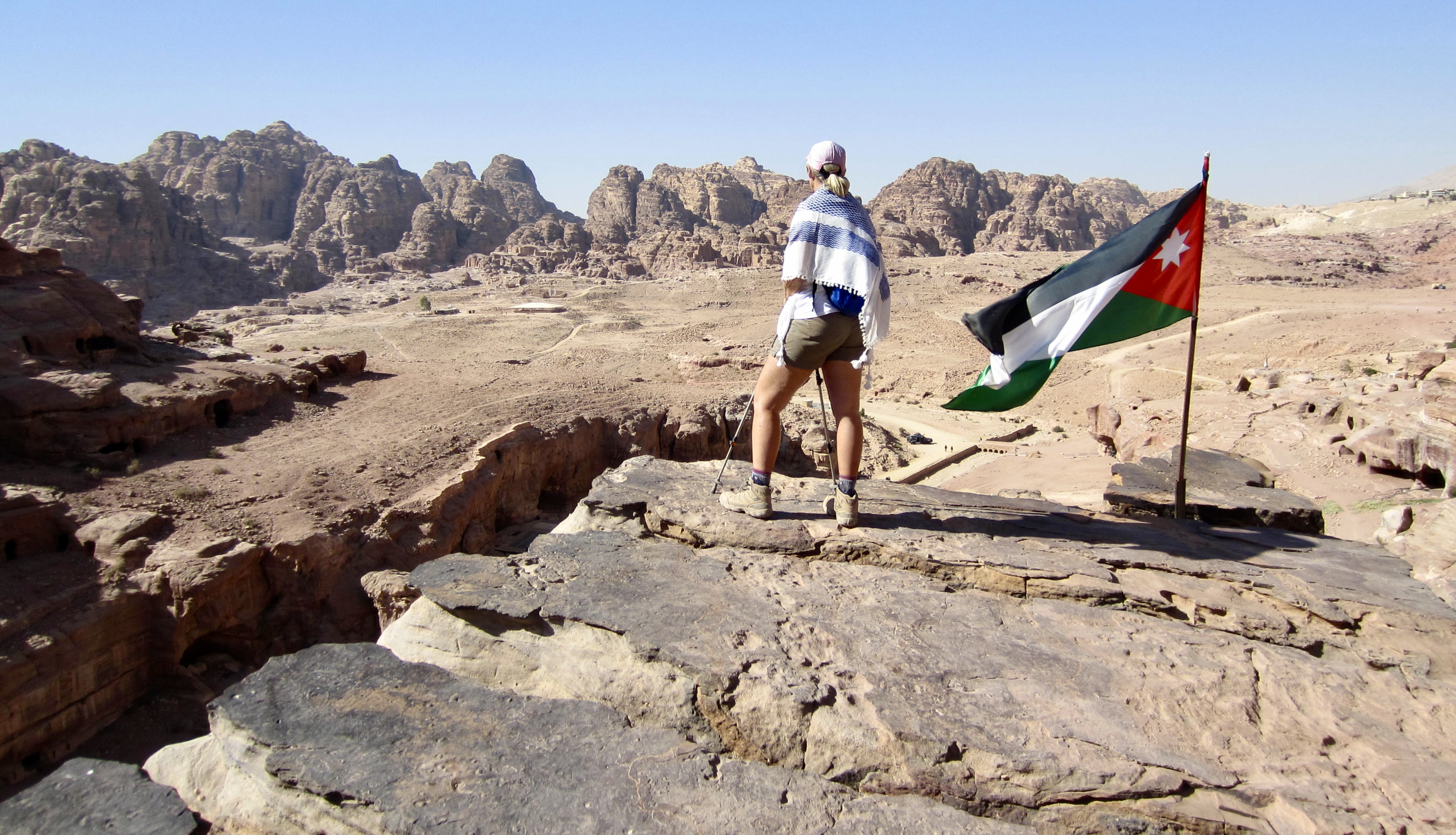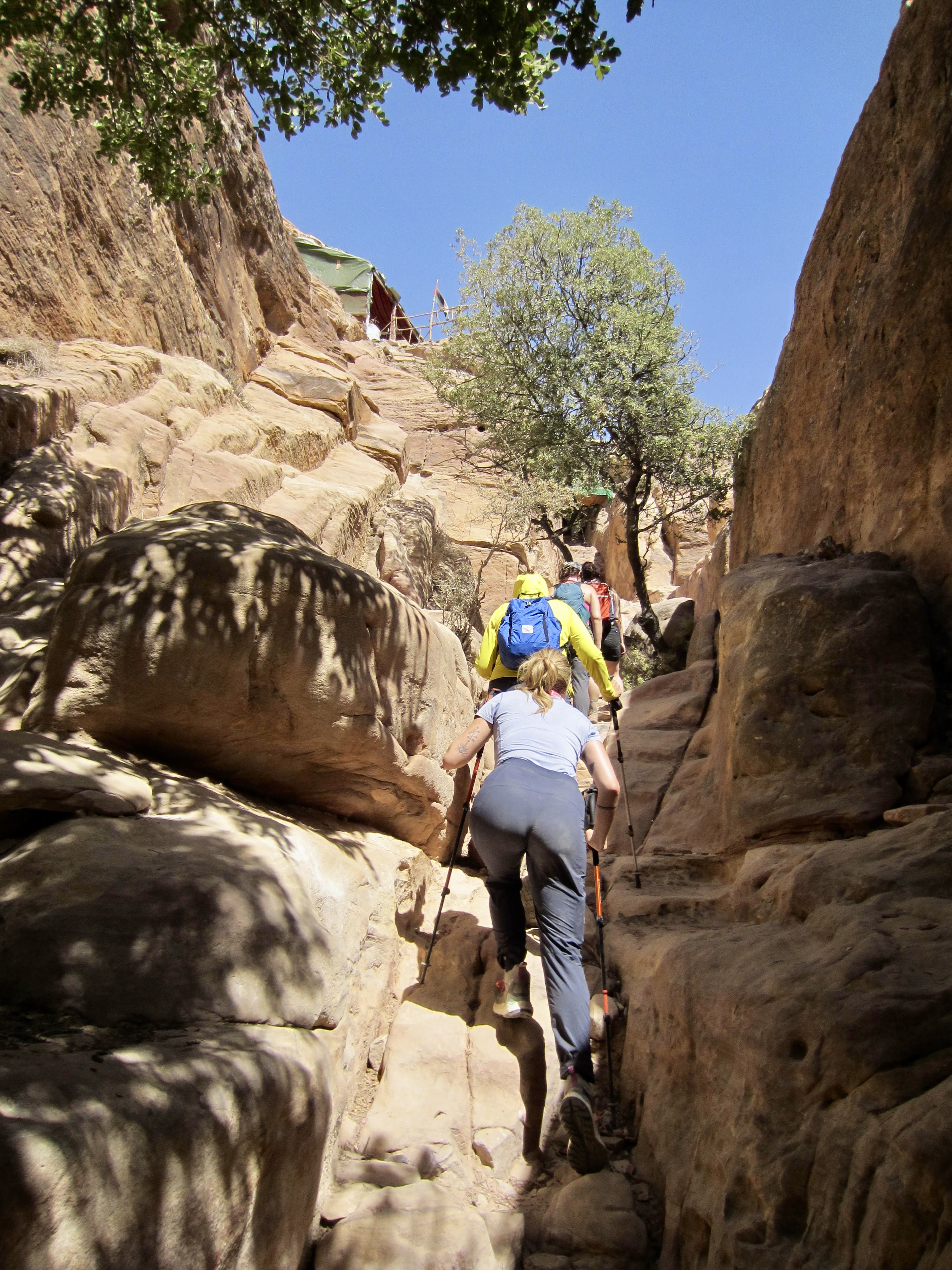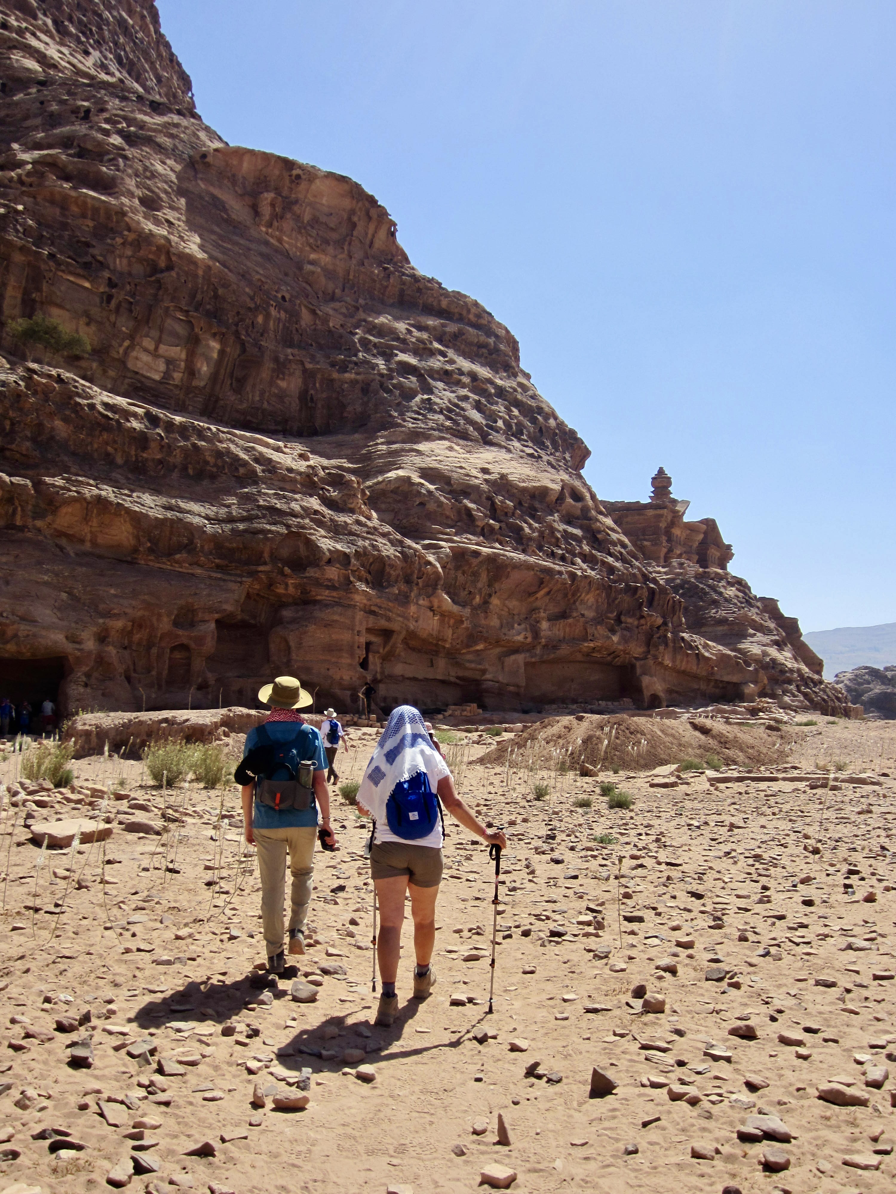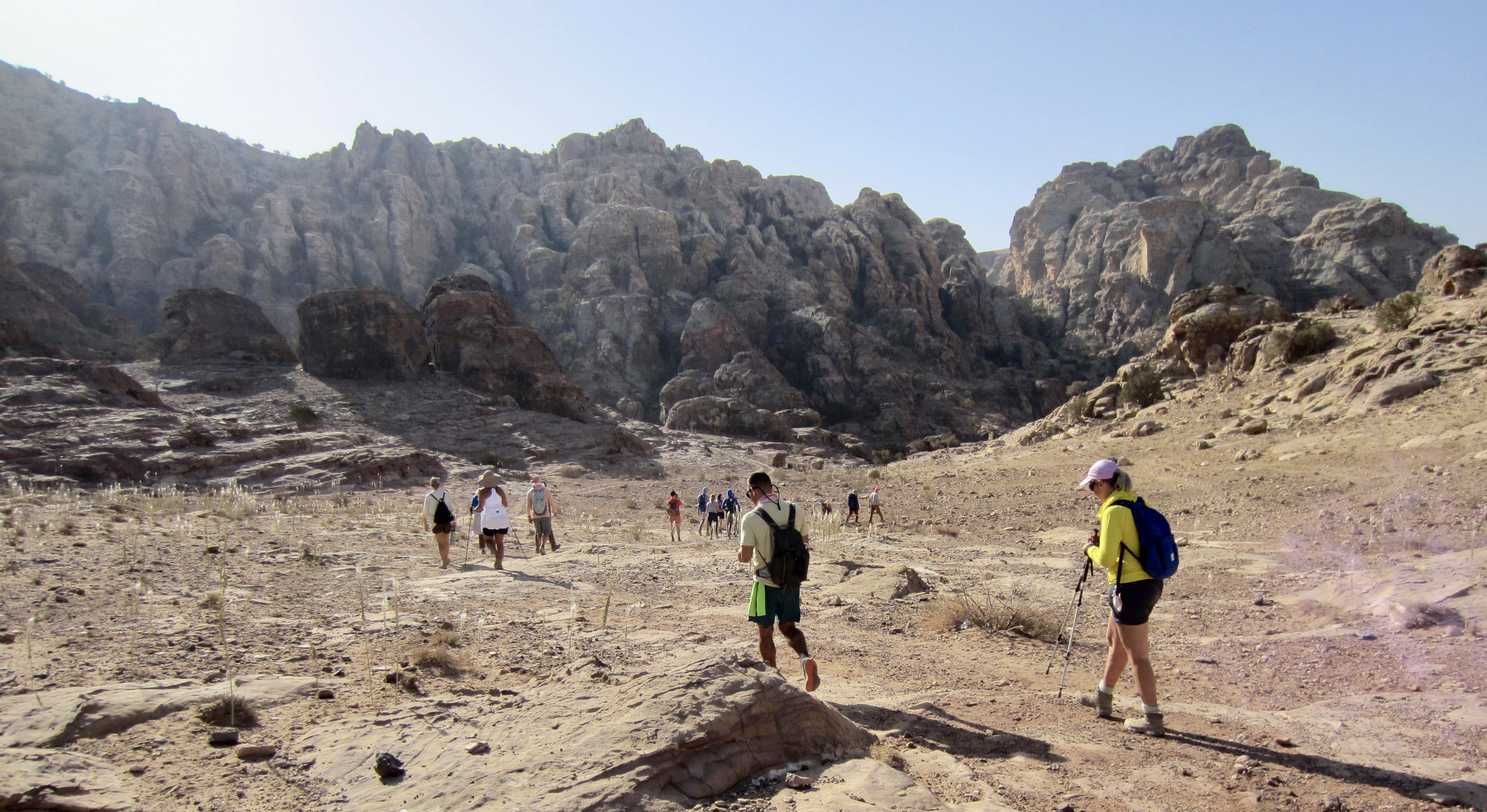 When Brooke and James advertised their three-day guided traverse along a short segment of the Jordan Trail, Eileen and I were surprisingly quick to sign up. I say “surprisingly“ because we knew little about the country other than that it was somewhere in the political and climatic hotbed of the Middle East. However, Brooke assured us that Jordan has remained a politically neutral and relatively safe place amidst the regional turmoil. In regard to the climate, she admitted that it would indeed be hot and arid—in great contrast to our typical alpine purlieu. Over the past decade, though, Eileen and I have gained an appreciation for desert hiking, thanks to annual trips to arid locations such as Arizona, Utah, Nevada, Mexico, and Tasmania So, we were all in!