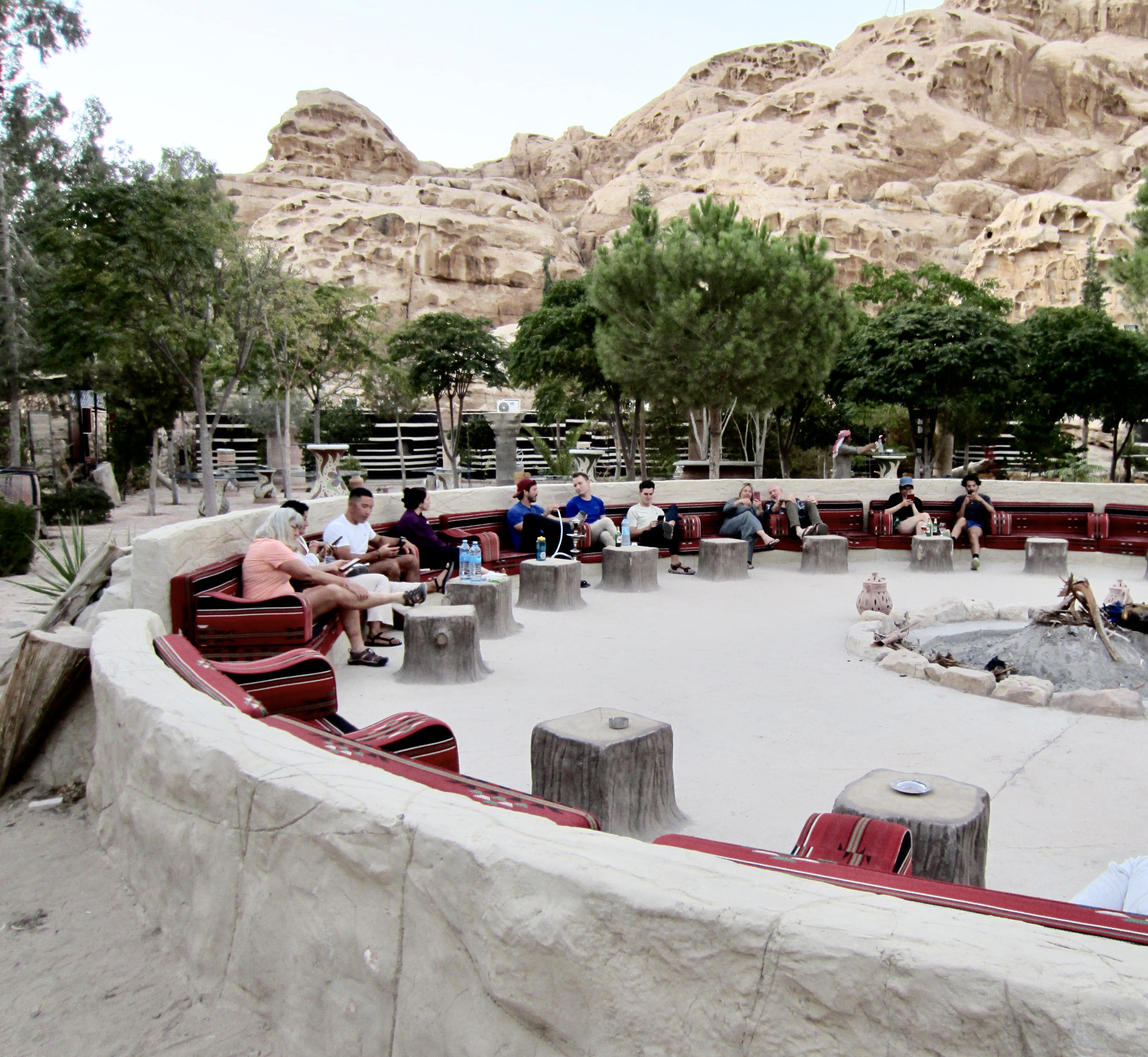 Because our assigned “basic” tents had no air conditioning, most of us elected to upgrade to a “luxury“ tent. Although quite modest-looking from the outside, these upgraded tents were truly luxurious on the inside—by far the nicest accommodations of our entire Jordan vacation. Our group spent the rest of the afternoon sipping cold drinks and chatting in the large conversation ring. Later in the evening, a delicious dinner was served in the dining hall.